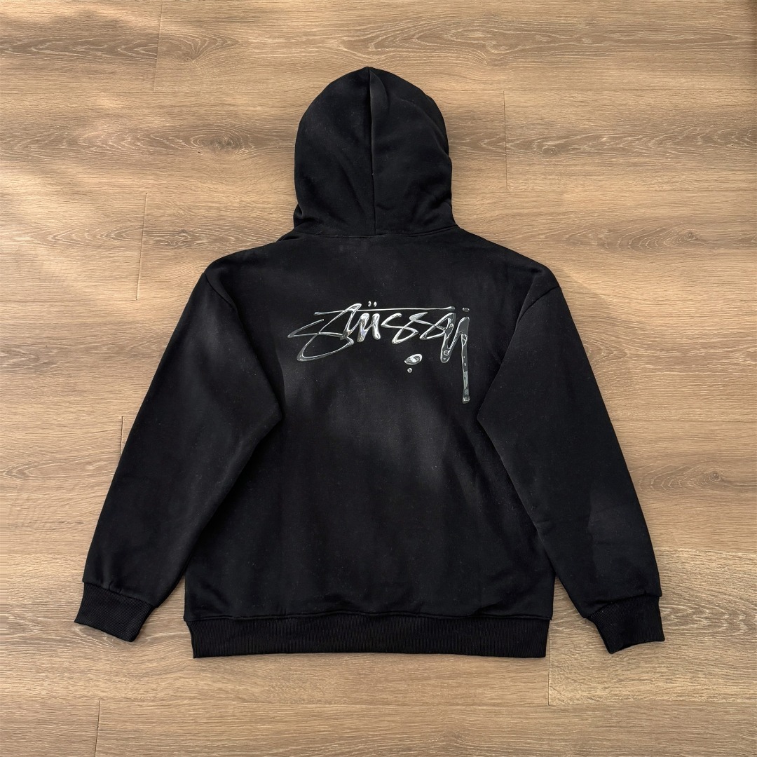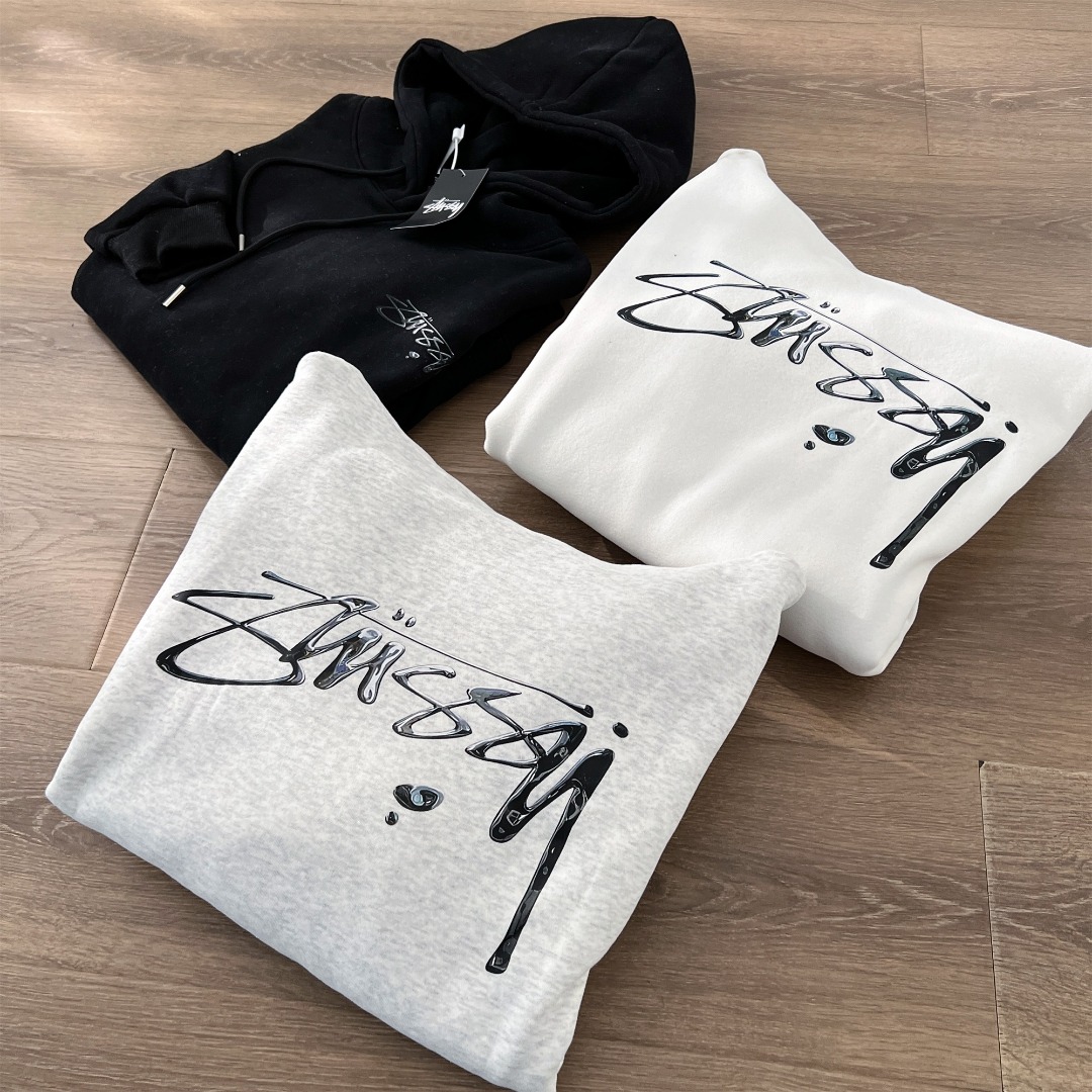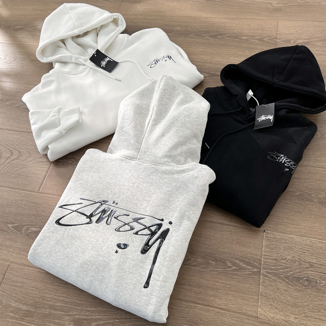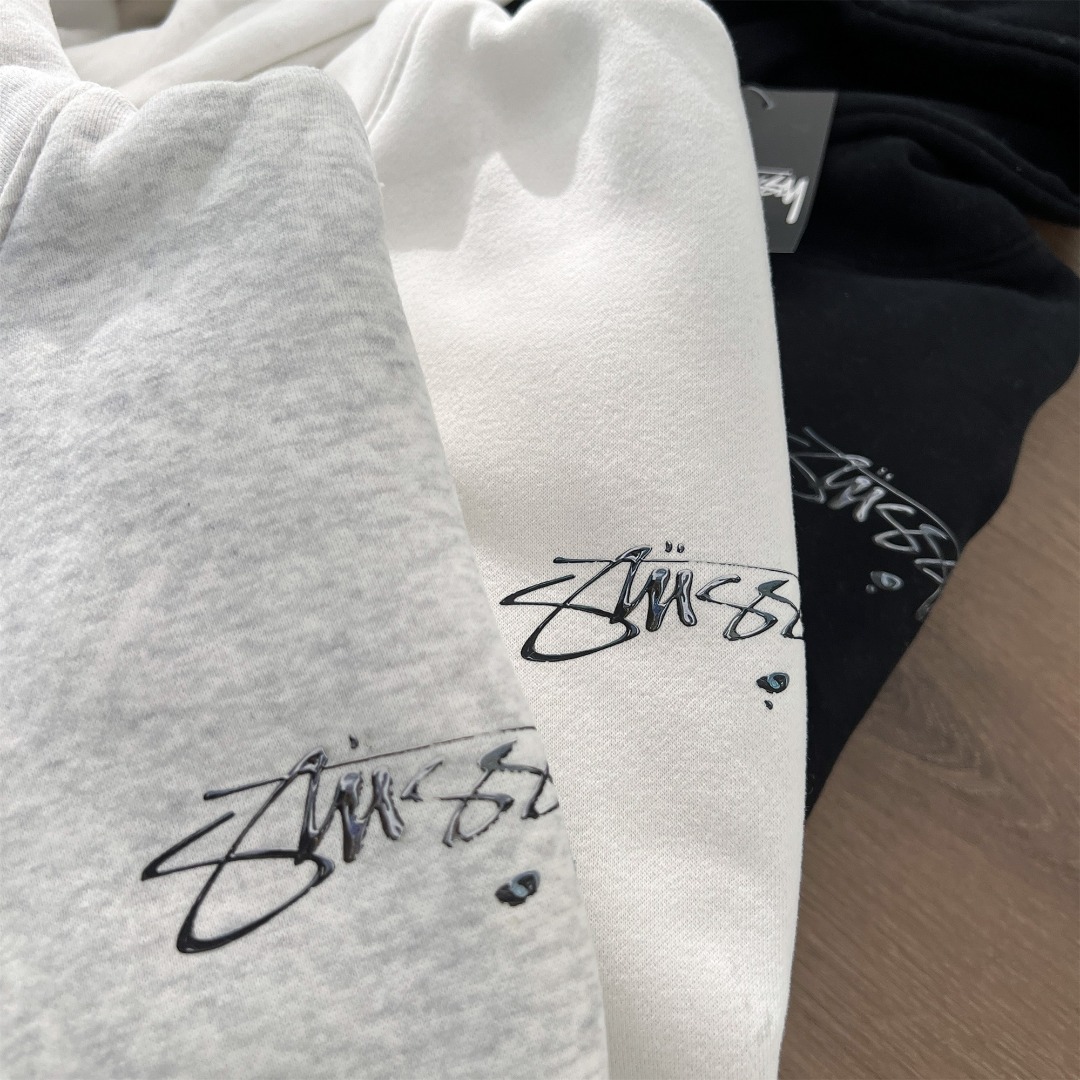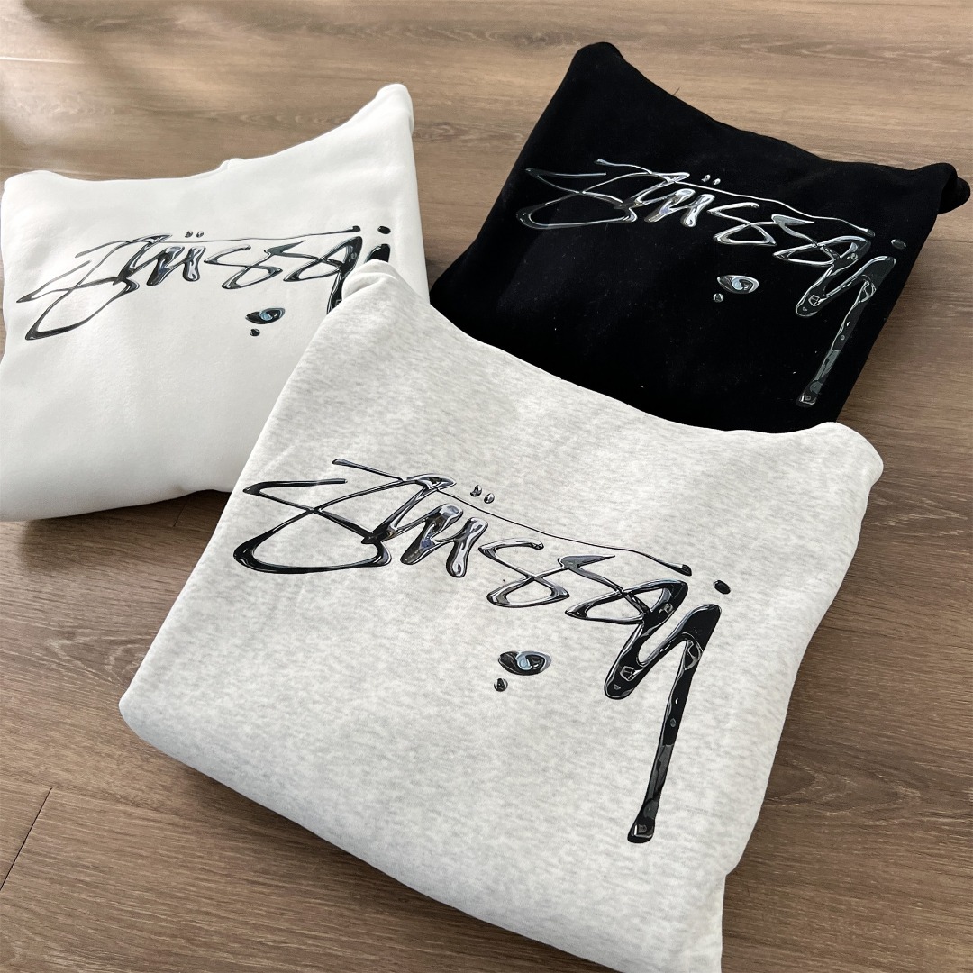 Stussy 斯图西秋冬款水银效果系列 字母logo印花连帽卫衣 男女同款
