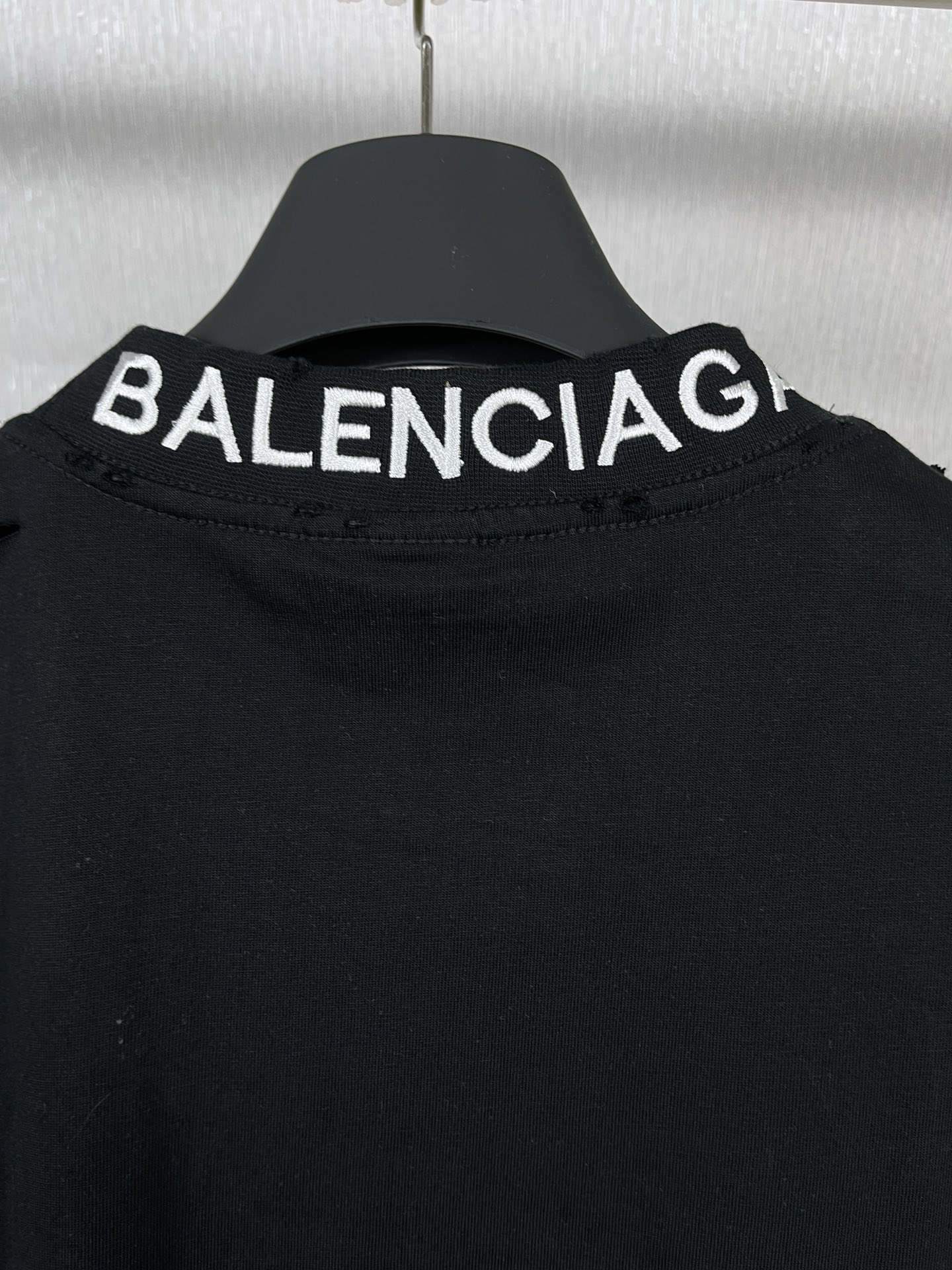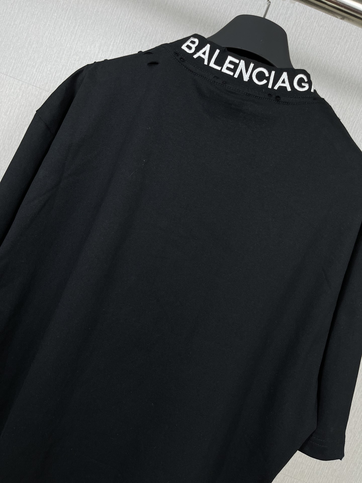 实拍图 顶级版本 官网品质 BALENCI GA 巴黎 后领罗纹刺绣字母 成衣复古磨烂做旧短袖T恤 砖柜同步