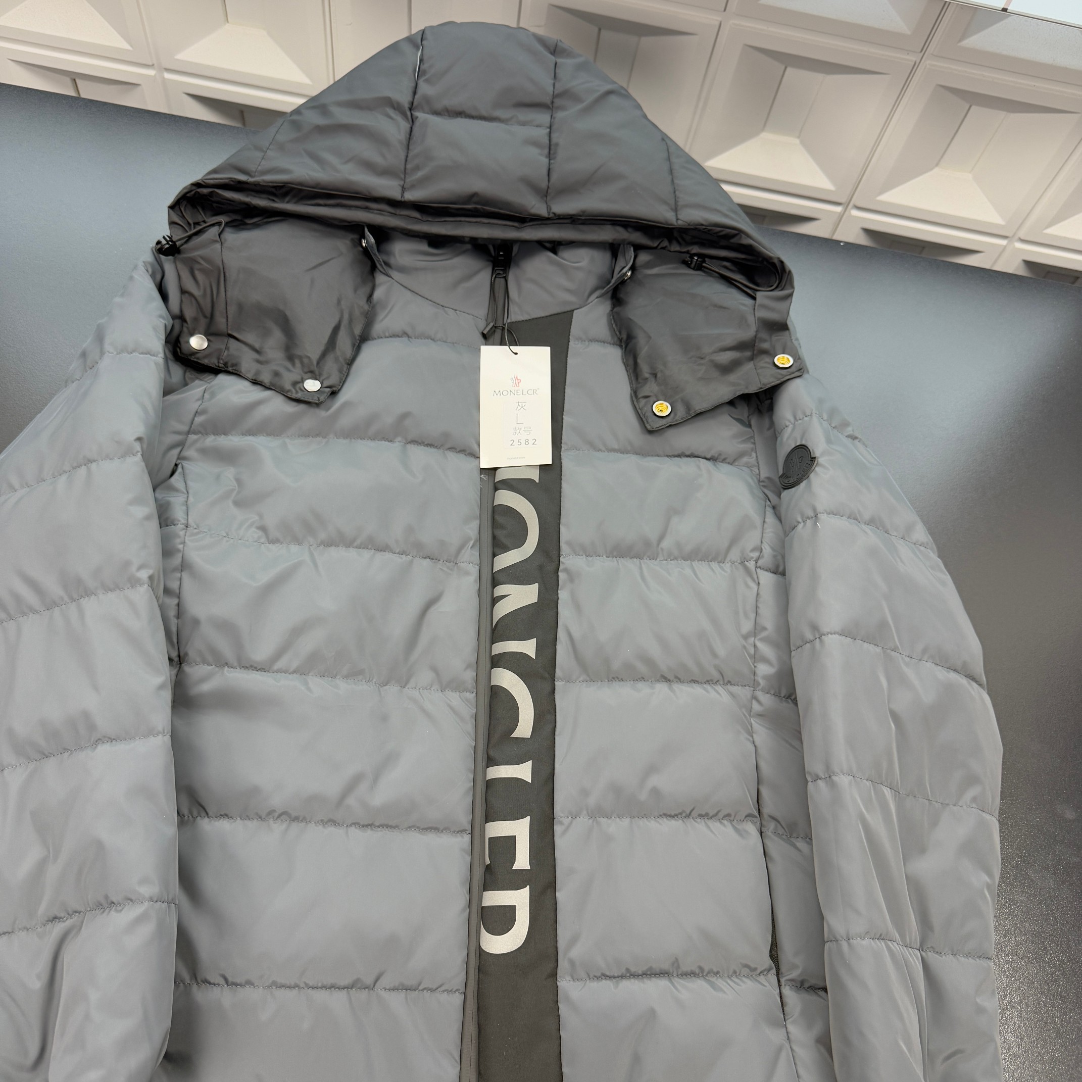 冬季热销爆款网红博主推荐款蒙口连帽羽绒棉服 拉链门禁满印字母 袖子刺绣徽标黑标 拆卸帽 三标齐全官网一致 放大看细节原相机实物拍摄 颜色 灰色 尺码 L 4xl L 80 105斤 XL 105 120斤 2XL 120 140斤 3XL 140 160斤 4XL 160 180斤