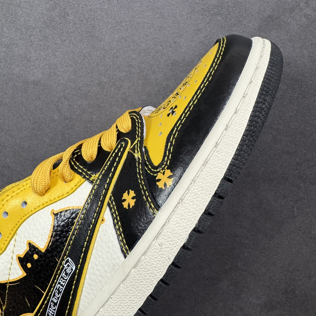 克罗心联名款 这款鞋以极具冲击力的黑黄配色为基底 经过特殊处理的中底与鞋侧 与醒目的十字标识形成鲜明对比 鞋身采用了精选的头层牛皮与耐磨织物拼接 确保了良好的透气性与支撑性