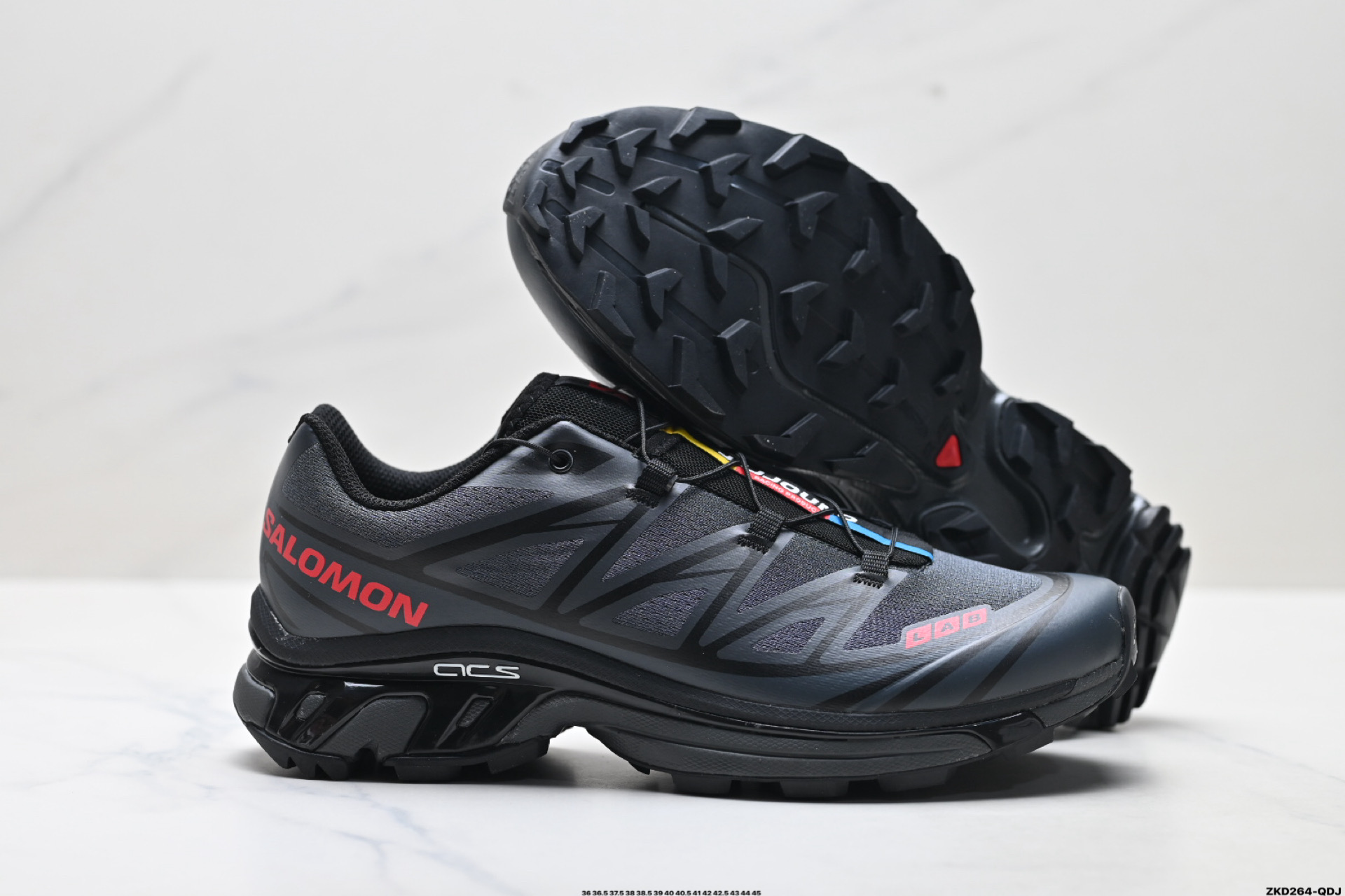 公司级Salomon萨洛蒙 XT 6 户外越野跑鞋 鞋面采用SENSIFIT贴合技术 全方位贴合包裹脚型 鞋跟部鞋底牵引设计 提供强大的抓地性能 更适应野外崎岖不平的道路 其3D ADVANCED CHASSIS底盘 材料轻量大化 钉齿设计更具稳定性 防护性 鞋底易磨损区运用CONTAGRIP高耐磨材料 应对城市硬质路面长距离跑考验