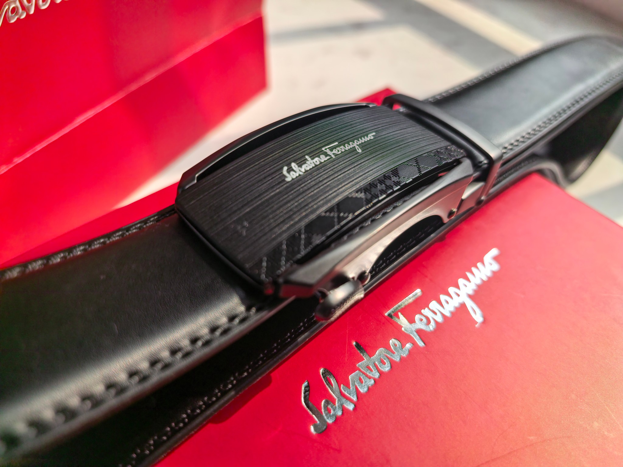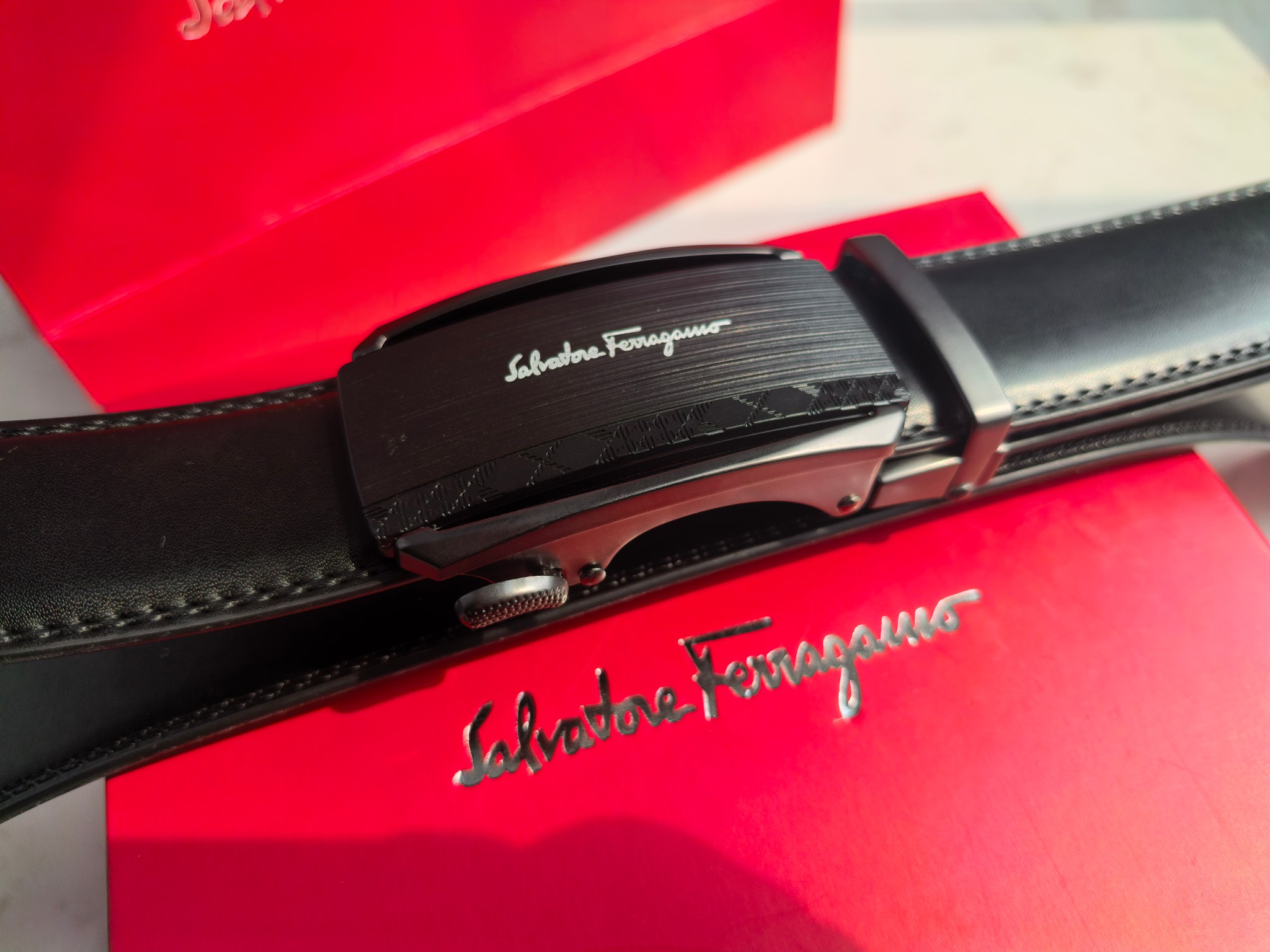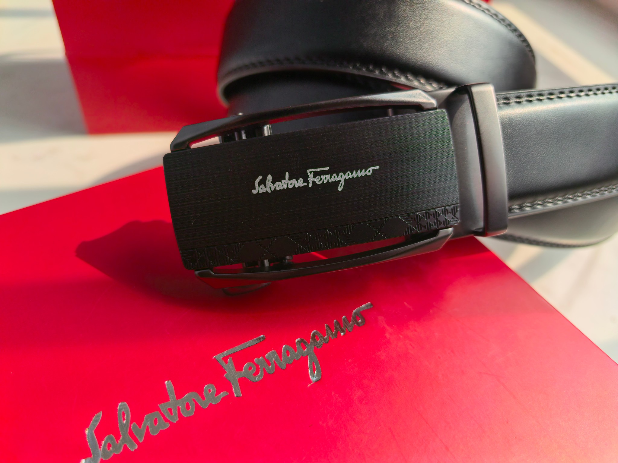 最新款 菲拉格慕Ferragamo磨砂镂空款扣头 真的超级好看 这款皮带一定要搞一条 今年专柜最新款 真的非常帅 超级百搭款 可商务 可休闲 皮带扣头全部是东莞代工厂出货 非常的有分量 克重足 皮带采用内外头层牛皮制成 非常的耐用 两年内绝不会有问题 放心使用 配全套专柜包装盒手提袋 无论送礼还是自用都非常的有档次 尺码 120cm x3 5cm 最大可用到220斤 长短可调节