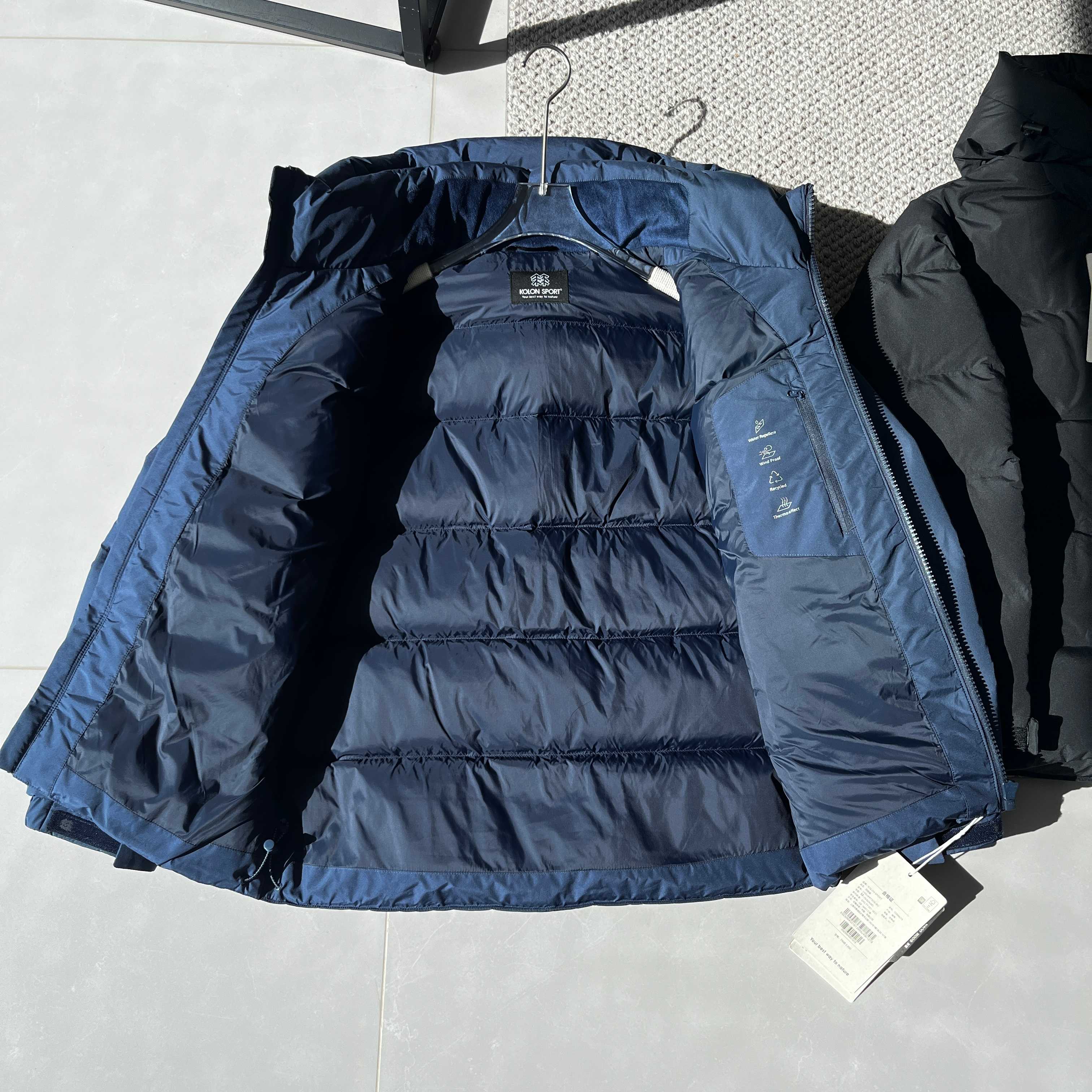 羽绒填充 作为羽绒服 其核心保暖材料是羽绒 KOLONSPORT通常使用高品质的鹅绒或鸭绒 具有高蓬松度和优异的保暖重量比 能有效锁住空气 隔绝寒冷