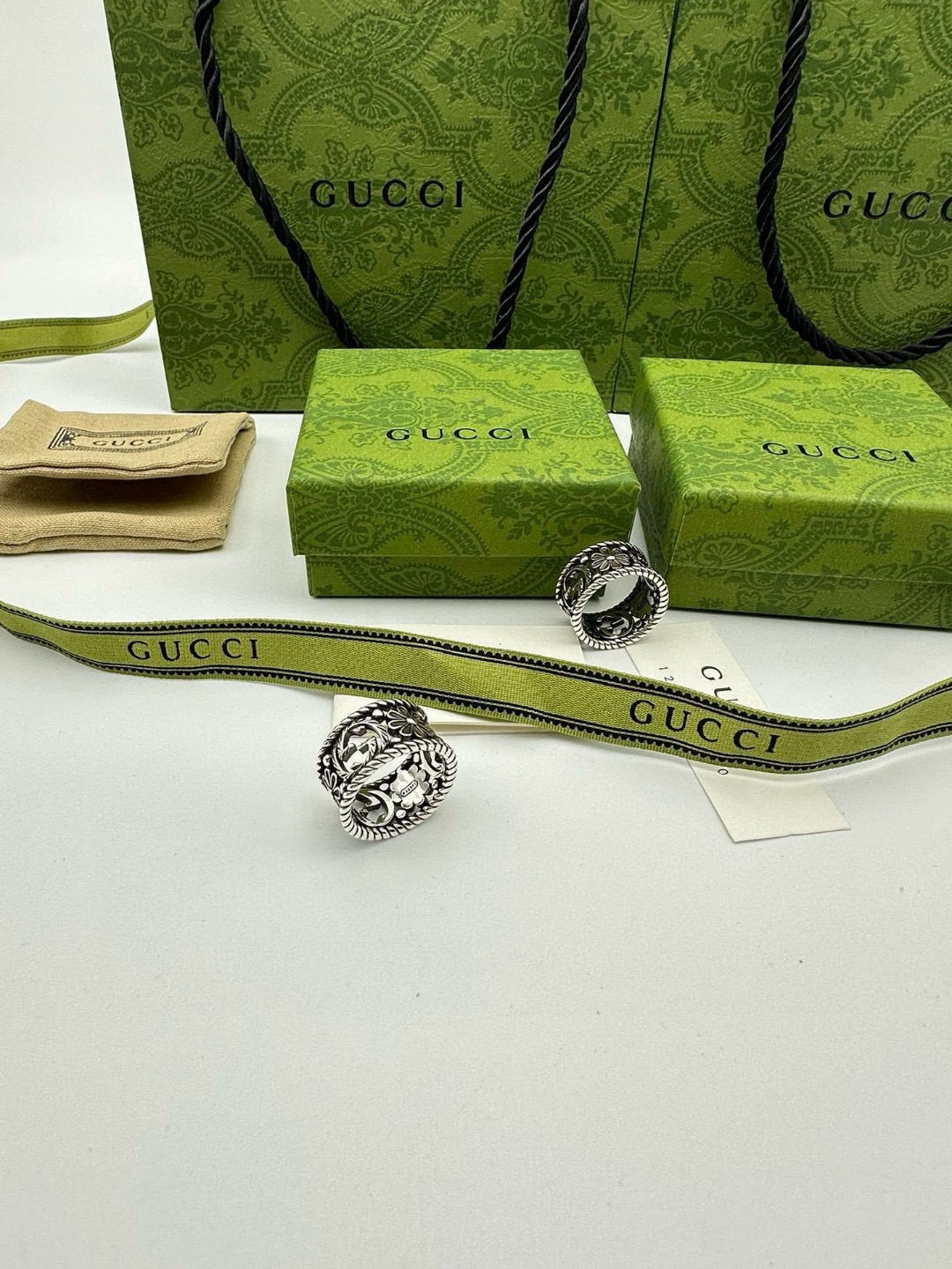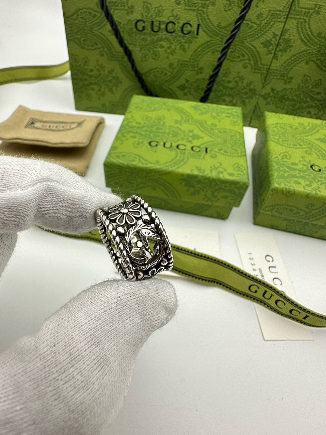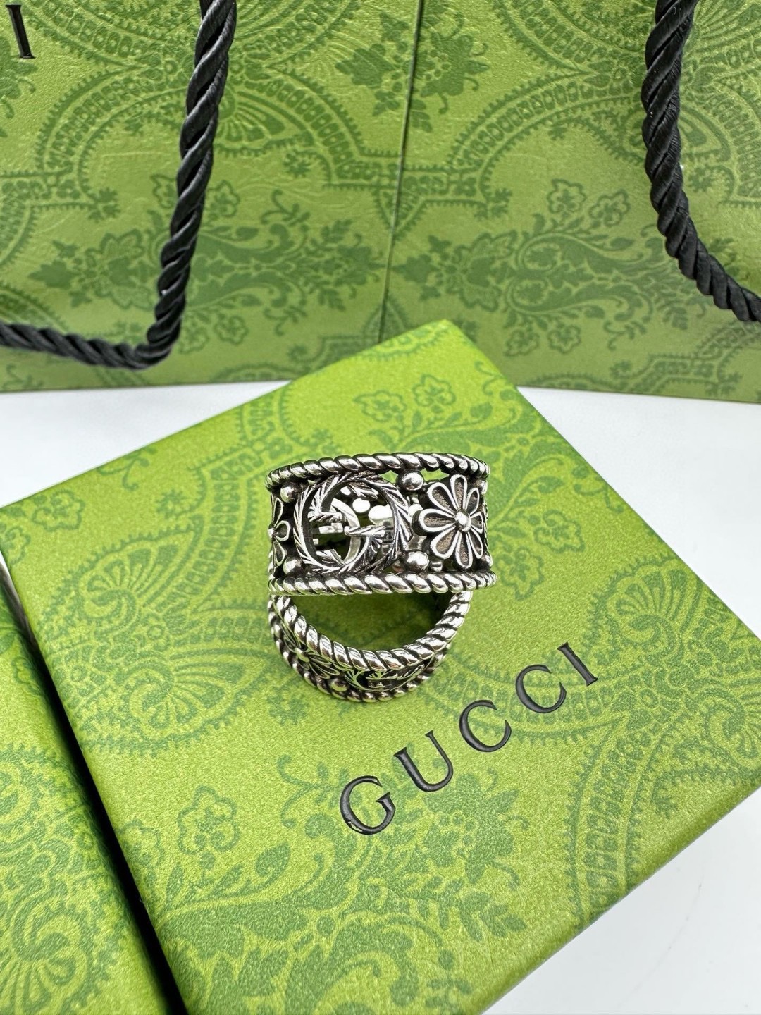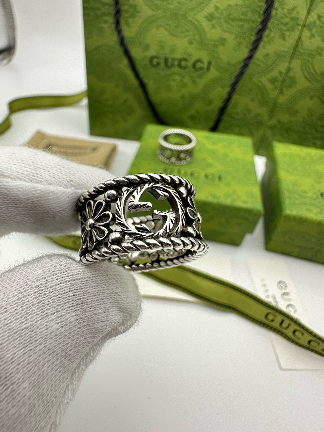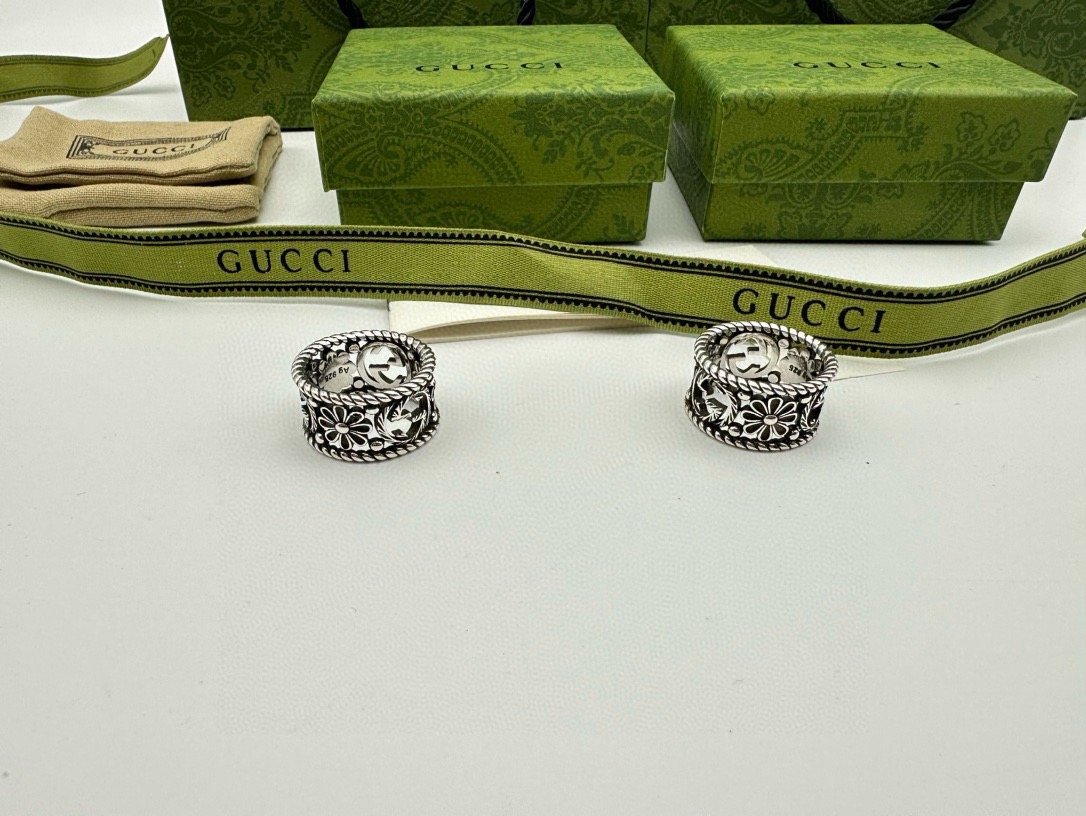 60244359 - Gucci古驰宽版菊花戒指 泰银版本 戒指上镌刻品牌标志性图 447107