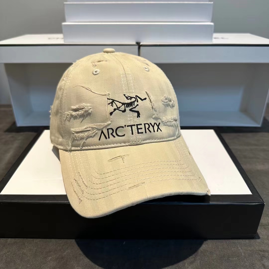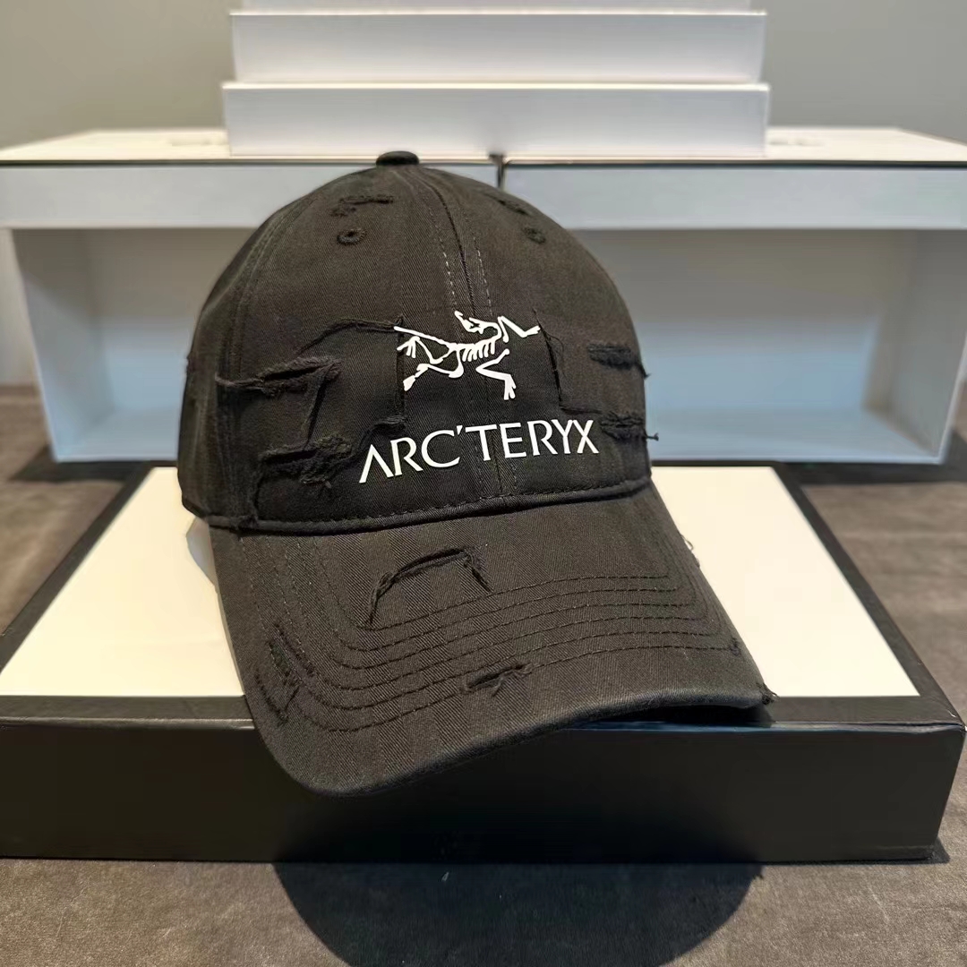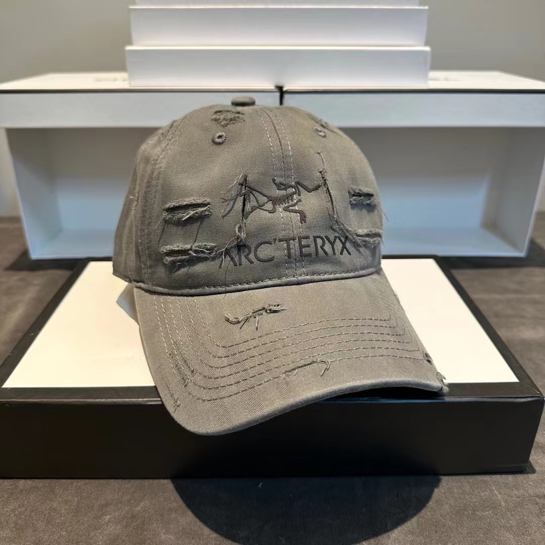 割破洞始祖鸟印花鸭舌帽做旧帽子棒球帽