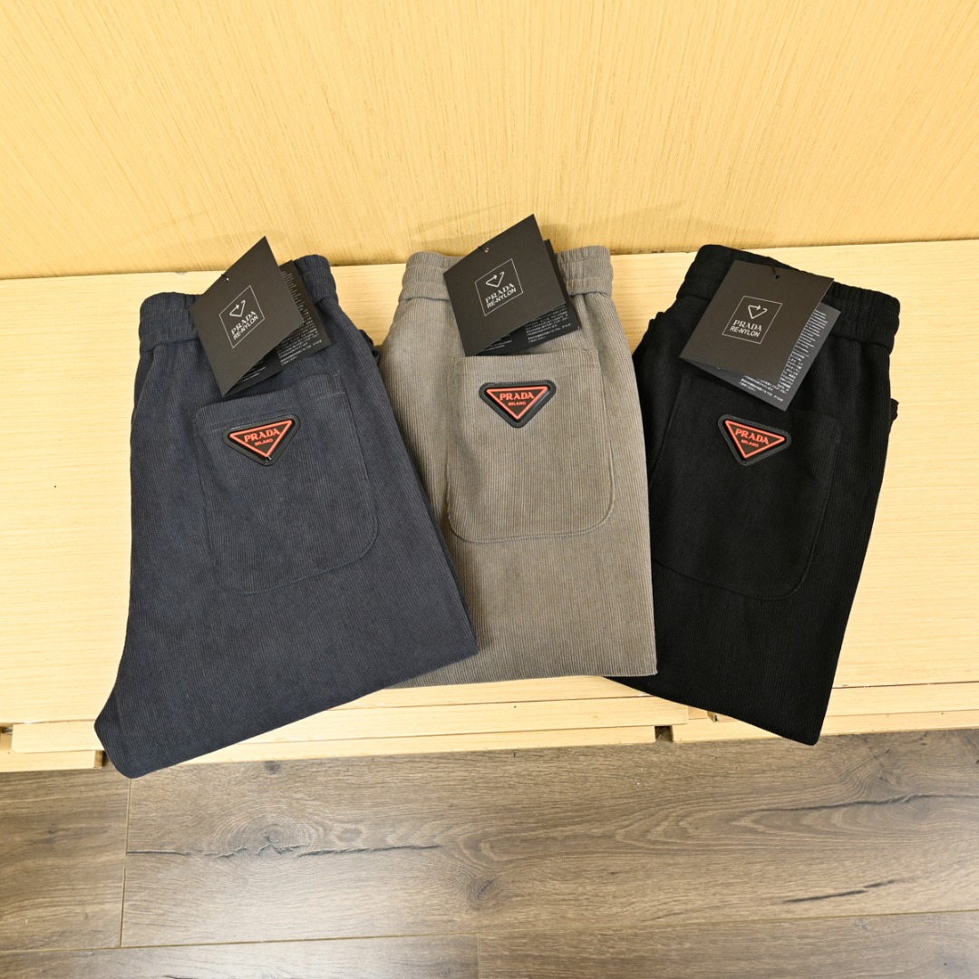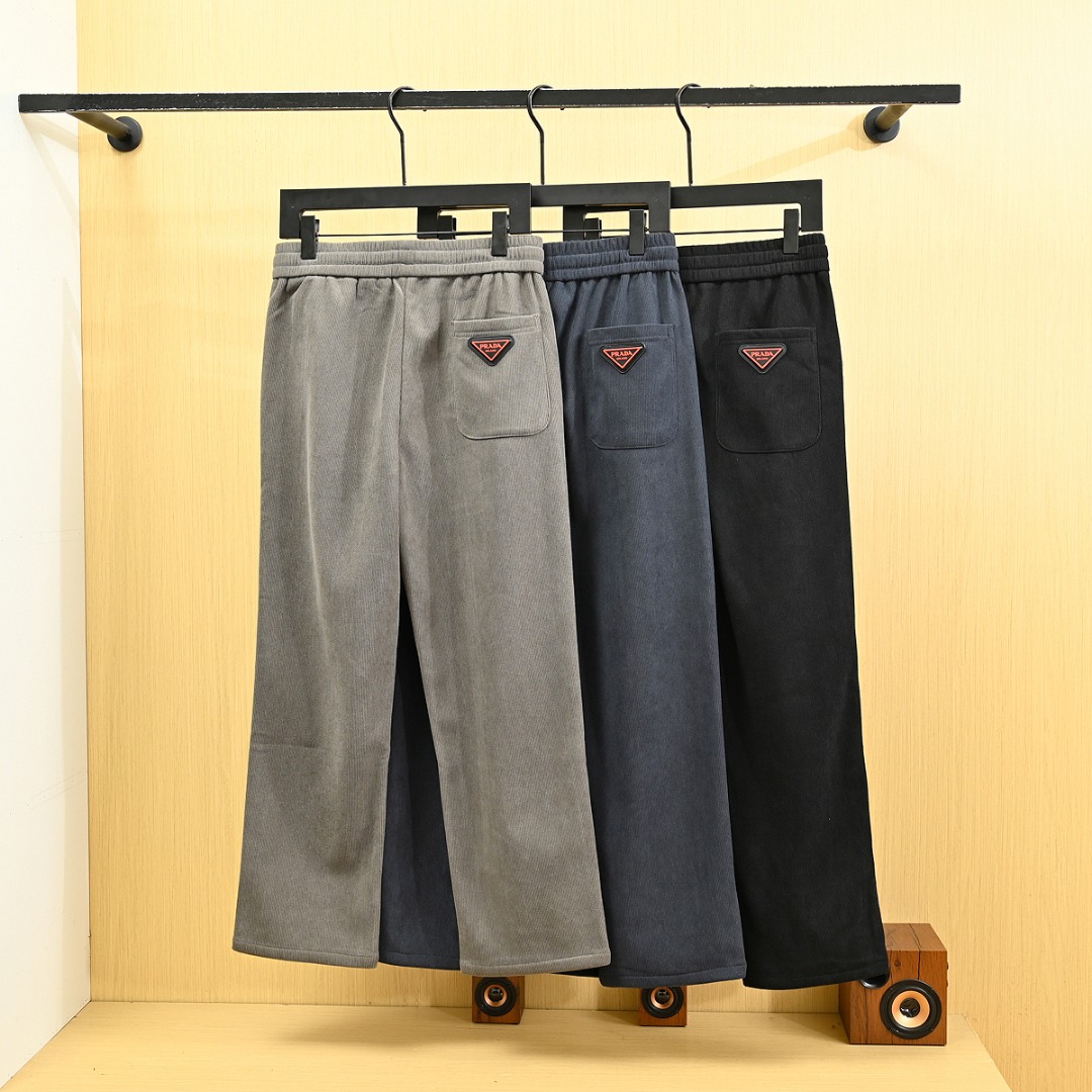 PRADA普拉达25s秋冬款男士阔腿直筒休闲裤