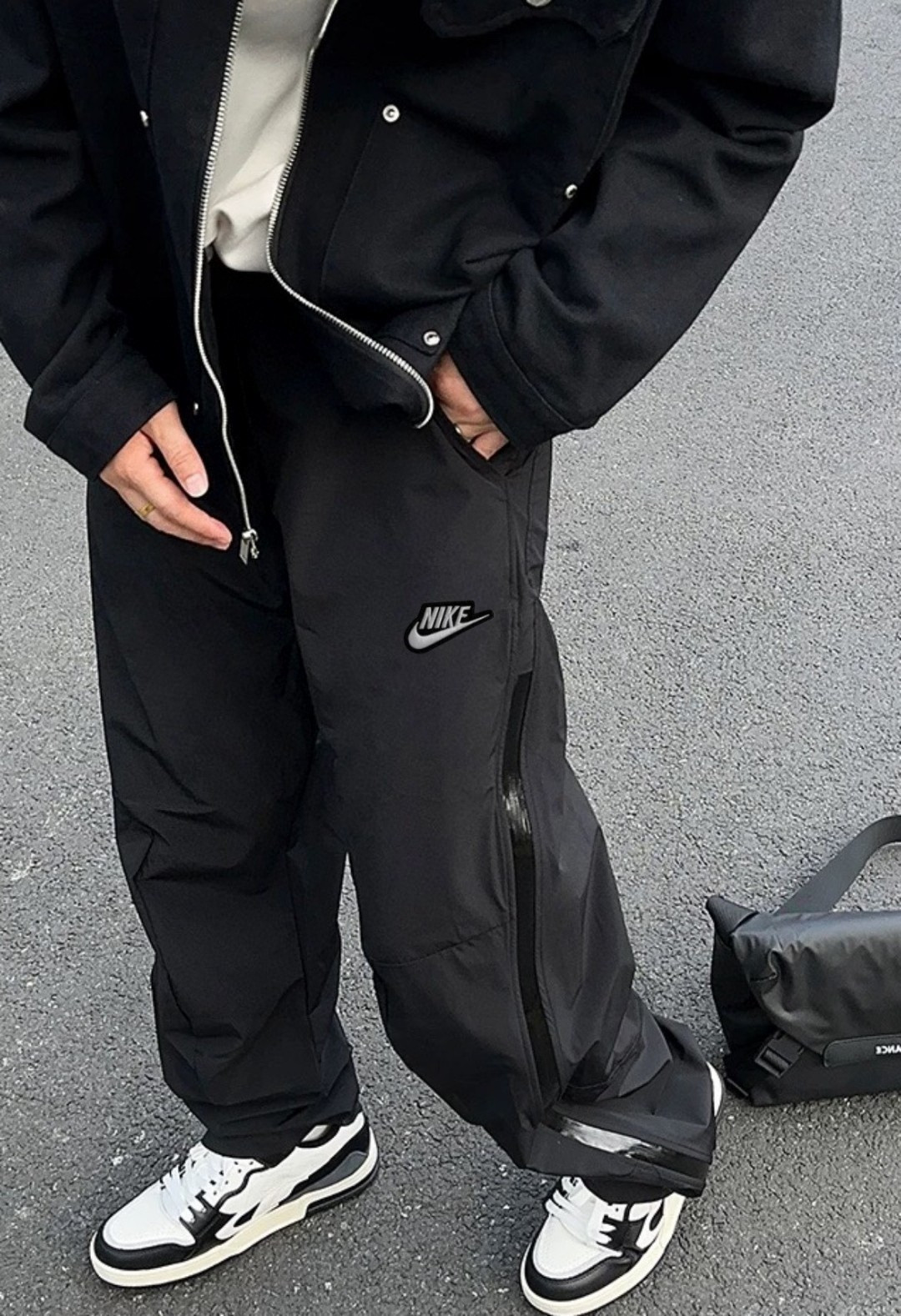 原版质量 秋季耐克Nike刺绣工装裤男女同款防水拉链裤秋季直筒阔腿休闲裤户外机能冲锋裤情侣百搭男女同款