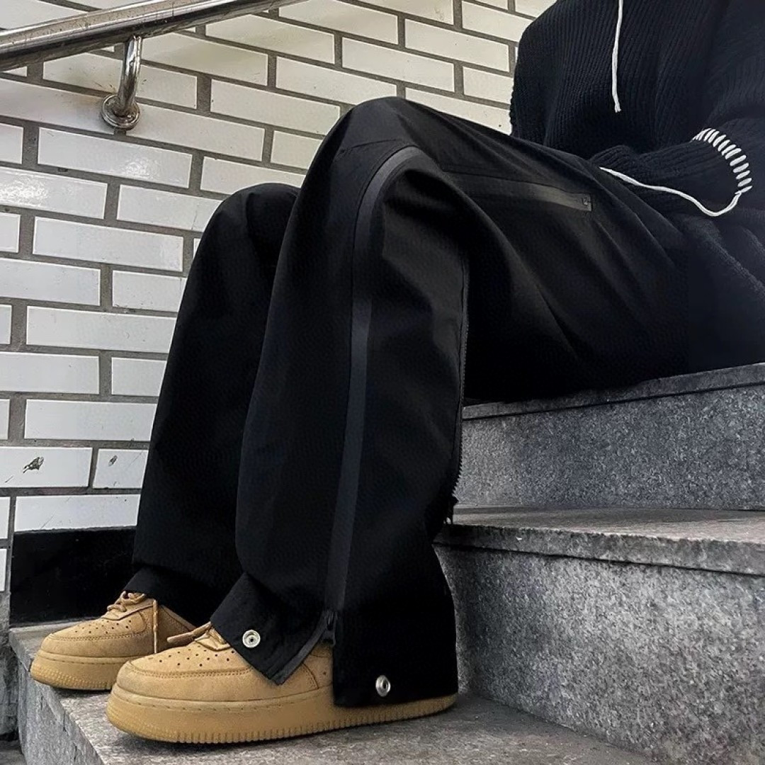 面料采用防水工装面料 拉链裤全封合技术 版型非常好做工精美绝伦 垂感十足 放心入手品质保证不会差 版型男女皆可穿