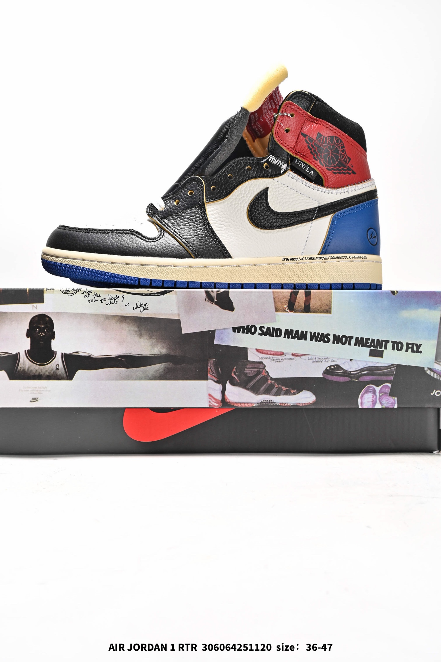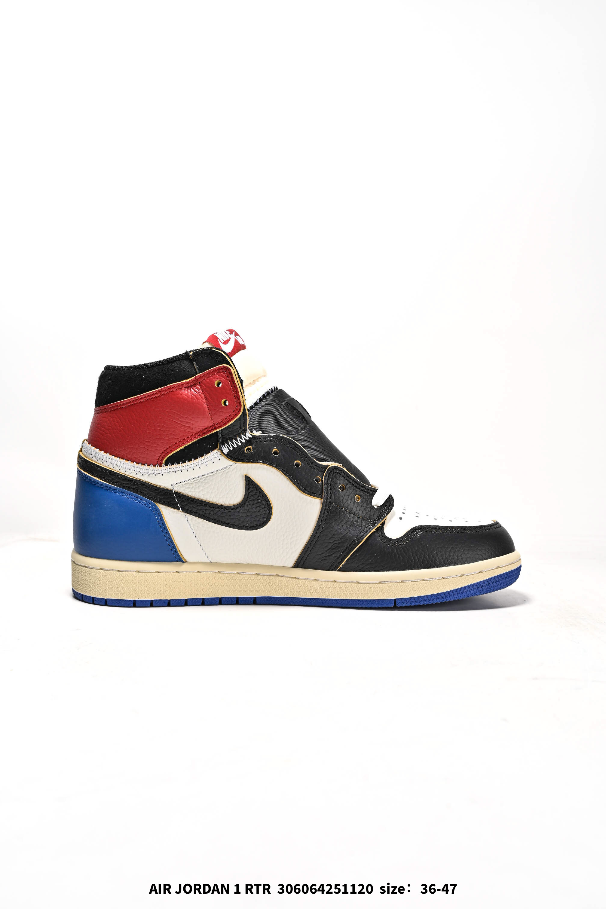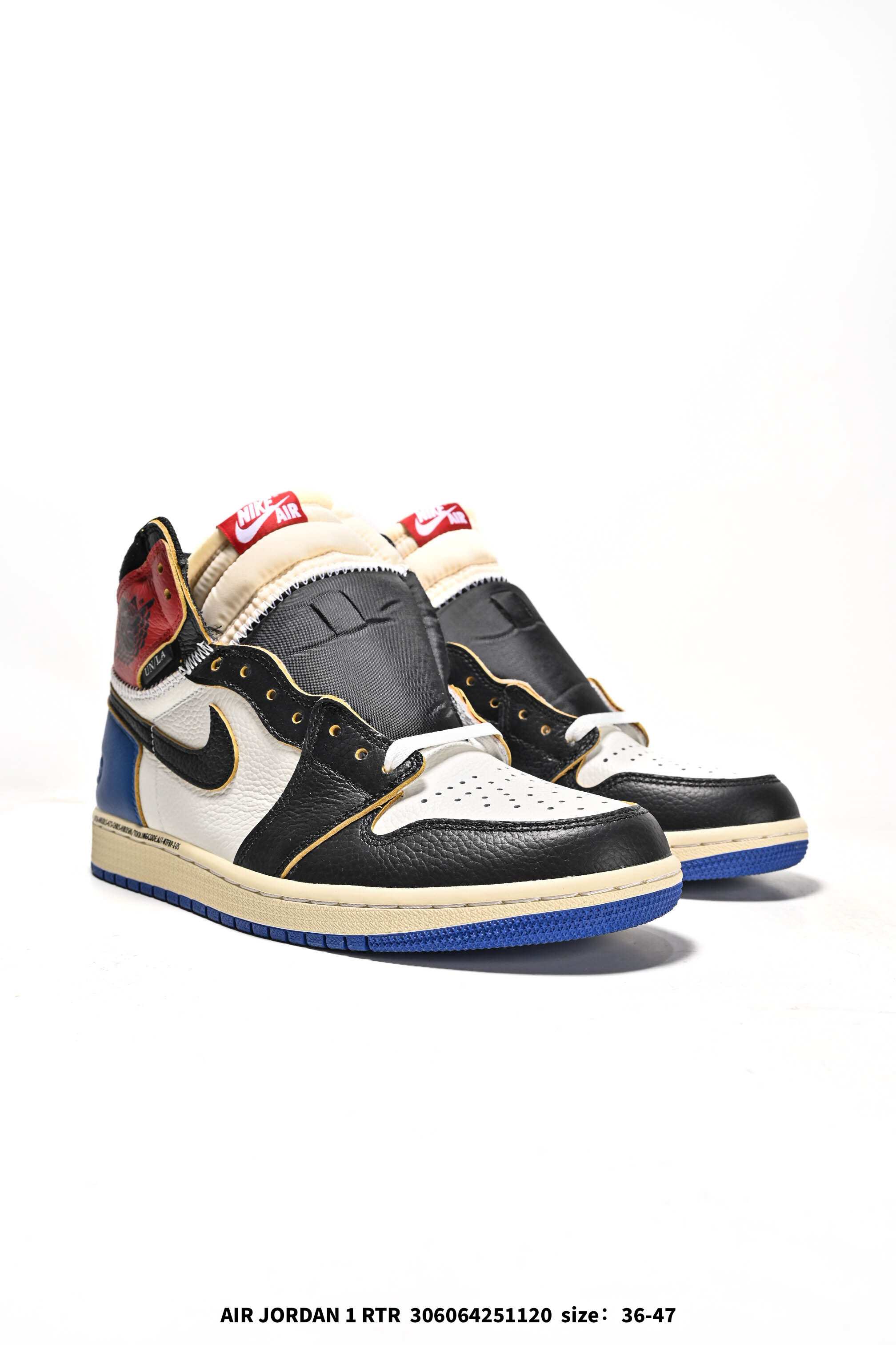 耐克 Union x Air Jordan 1 Retro High PK NRG 高帮aj1 乔丹一代经典复古运动篮球板鞋 洛杉矶品牌Union与Jordan合作推出的AJ1联名版本 近日洛杉矶时尚名所UNION LA与Jordan Brand联手为我们带来了UNION LA x Air Jordan 1 High 鞋款 鞋款采用解构 撞色以和补丁图案点缀的设计 鞋面结合了 暴风蓝 配色与 禁穿 配色 黑色星期五PK