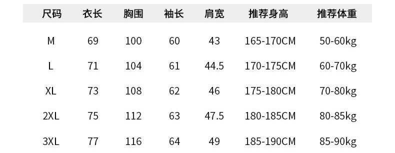 尺码 M 3XL