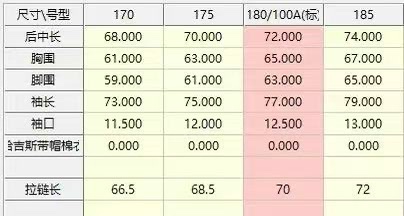 尺码 170 175 180 185