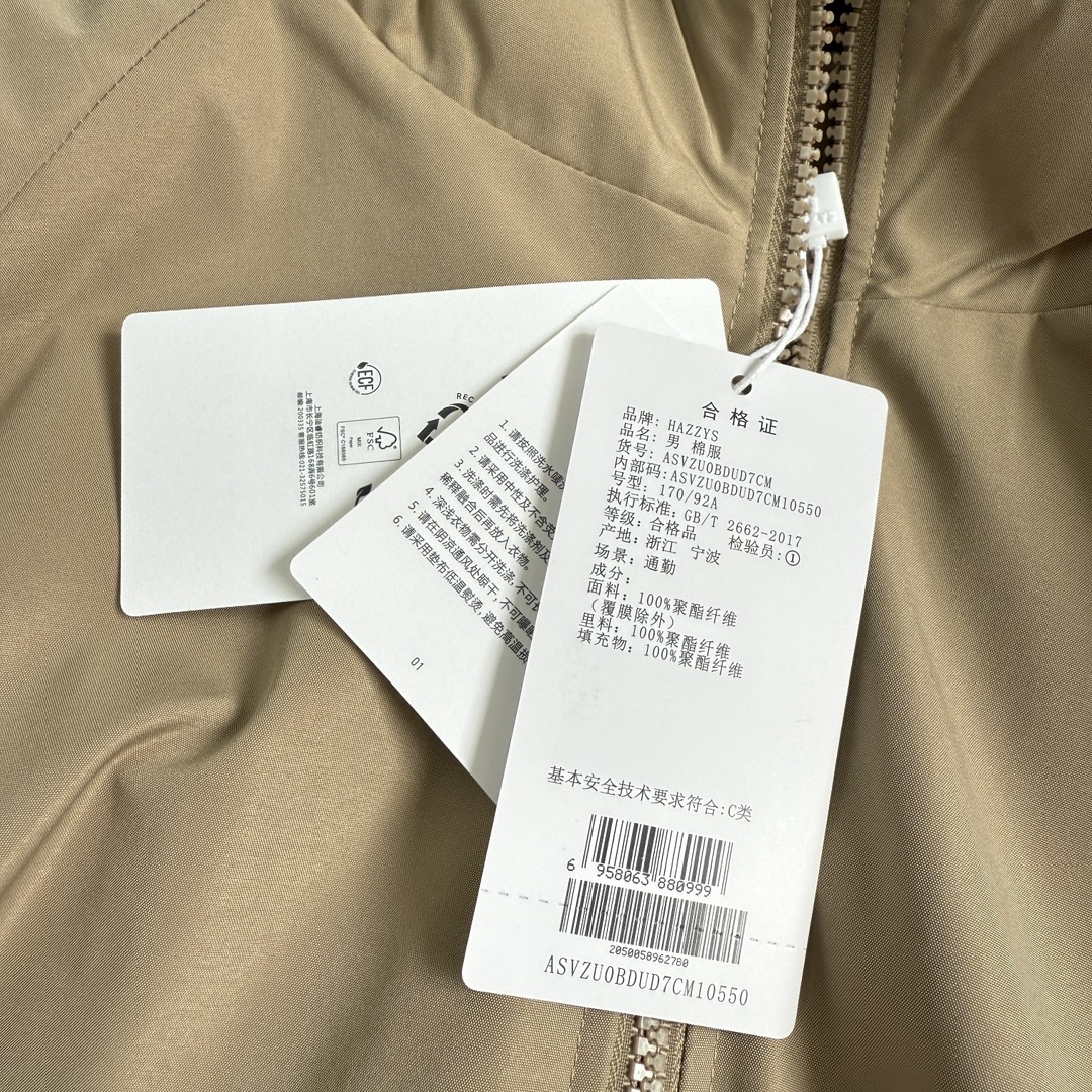 205137590 - Hazzys哈吉斯秋季男士连帽夹克休闲棉服时尚潮流舒适拉链外 351274