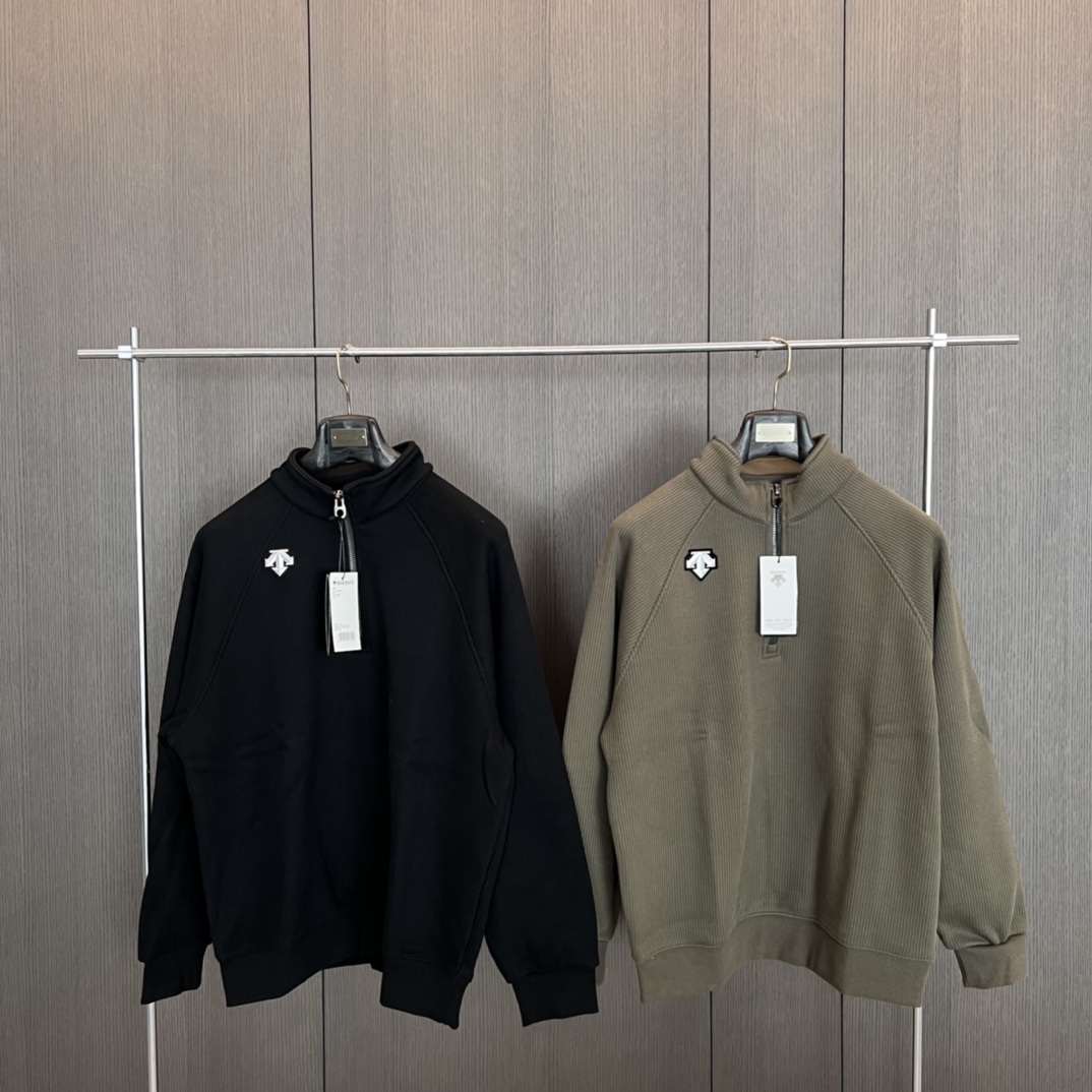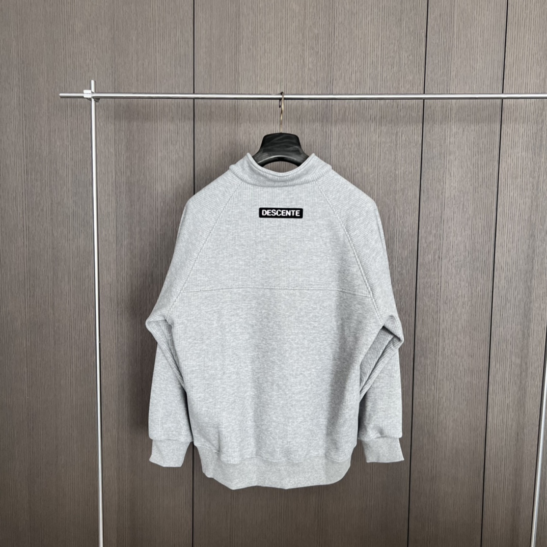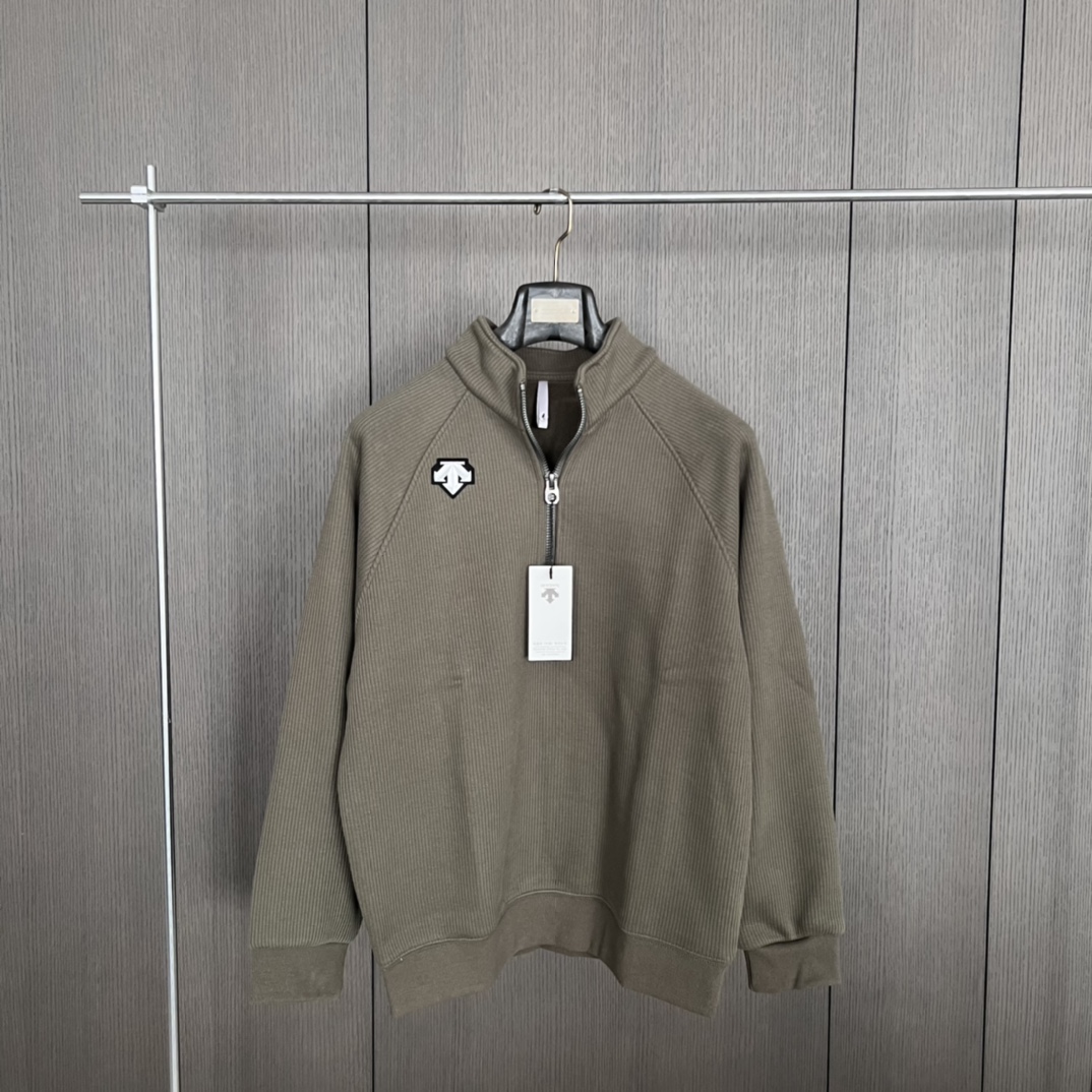 24秋冬DESCENTE迪桑特螺纹半拉链套头高领长袖加绒卫衣