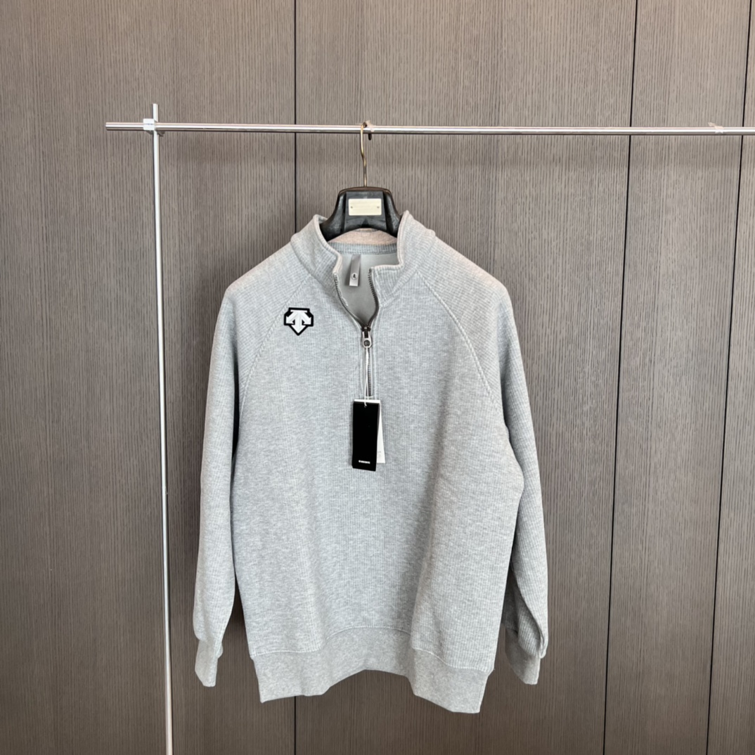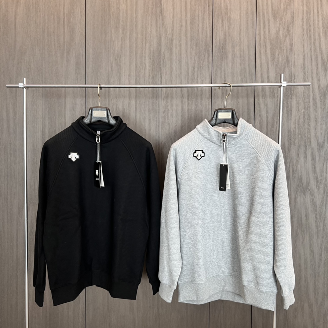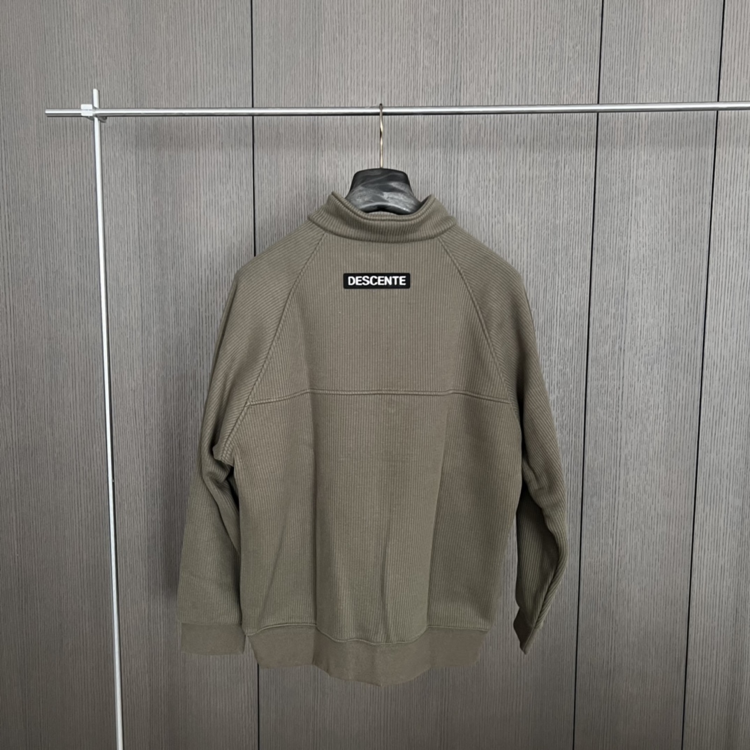 24秋冬DESCENTE迪桑特螺纹半拉链套头高领长袖加绒卫衣