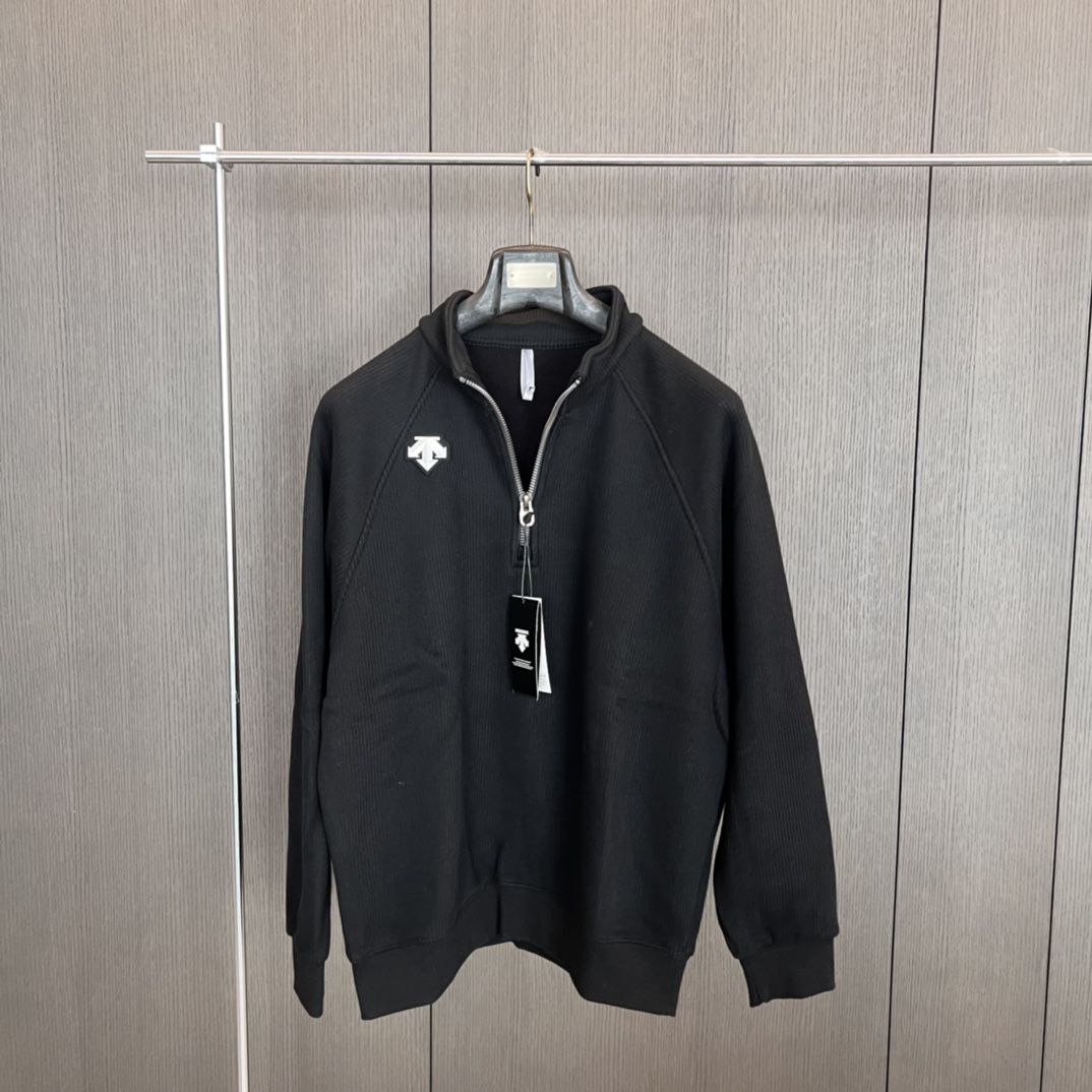 100376047 - 黑色2XL 24秋冬DESCENTE迪桑特螺纹半拉链套头 568424