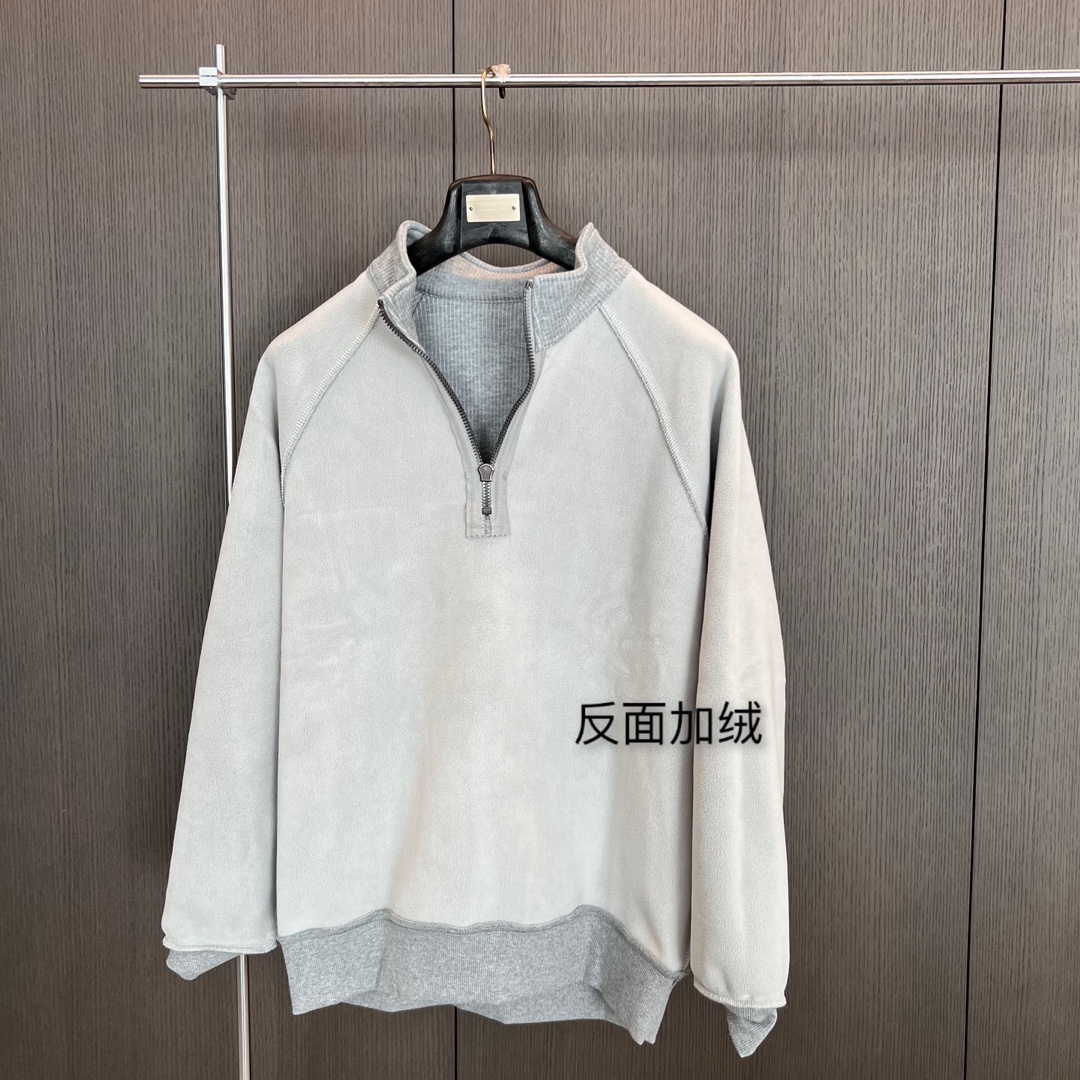 迪桑特新款半拉链加绒卫衣来喽 今年真的超流行这种卫衣 比连帽卫衣还要火 即商务又休闲的款式 拉开拉链可以当大翻领 时髦感up 面料是螺纹布料 内里宝宝绒 舒适柔软