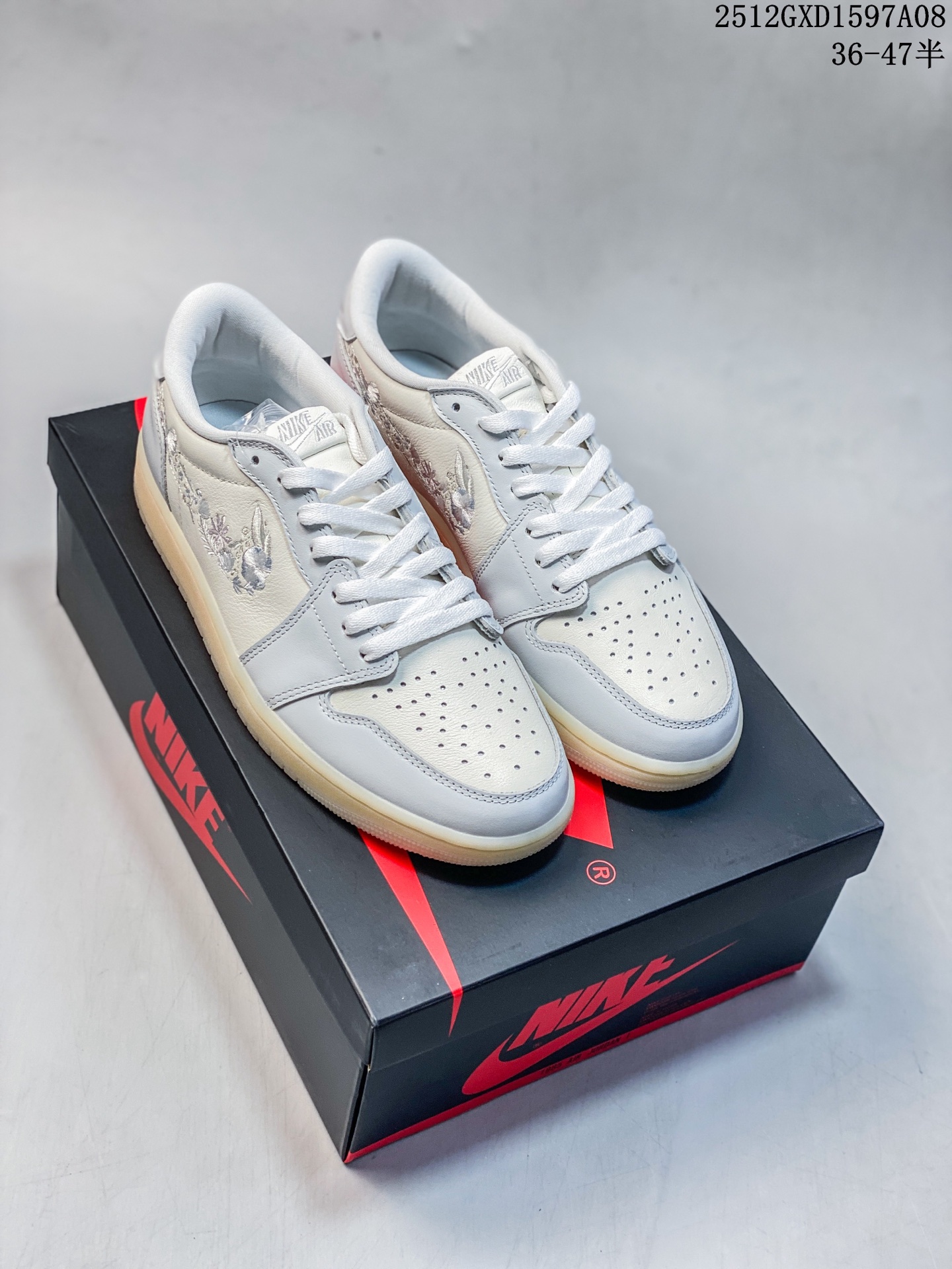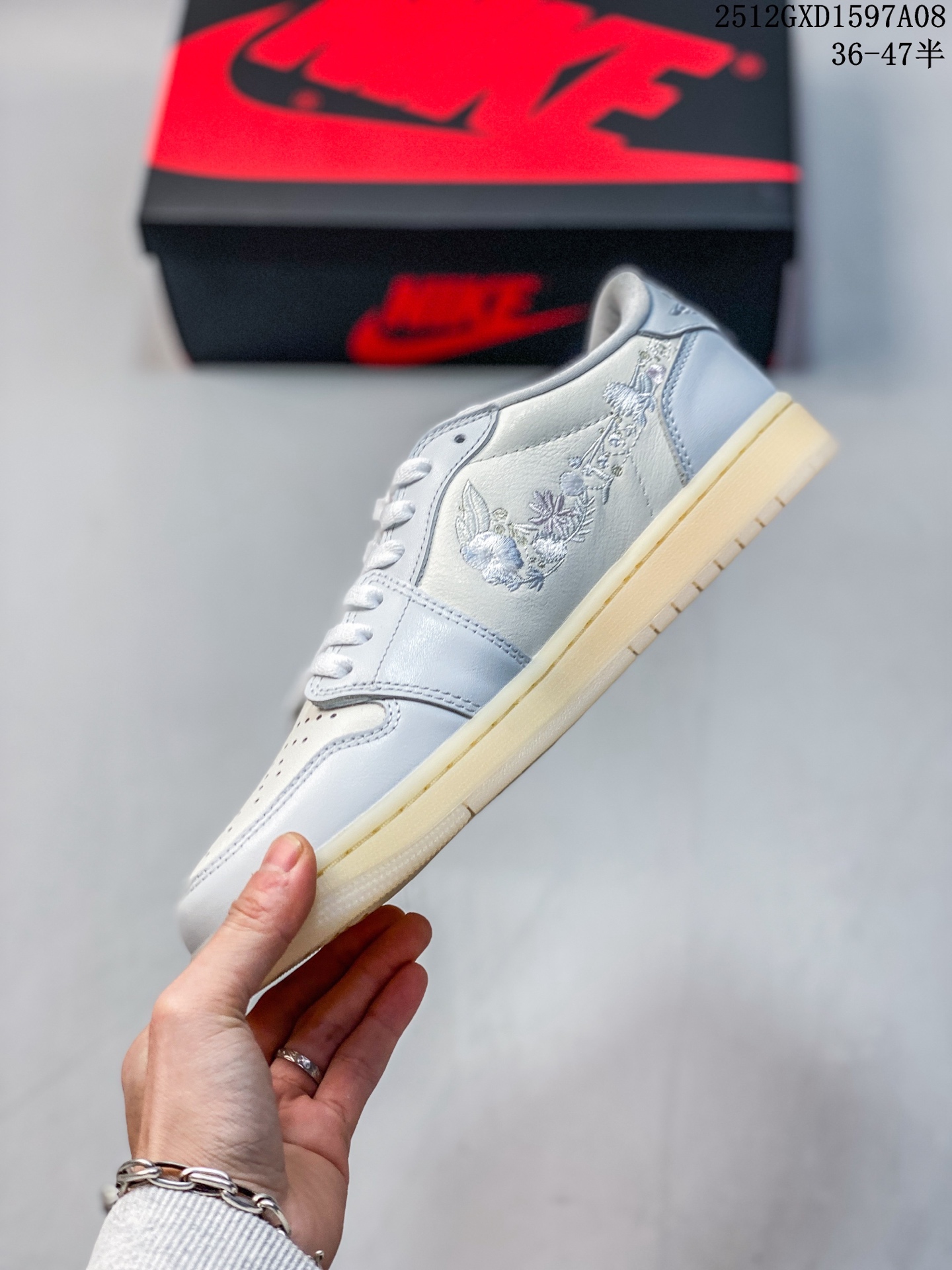 Nike Air Jordan Air Jordan 1 Retro Low OG 花朵刺绣钩子 米白灰 柔软舒适 防滑耐磨 低帮 复古篮球鞋 男女同款 同步官方配色