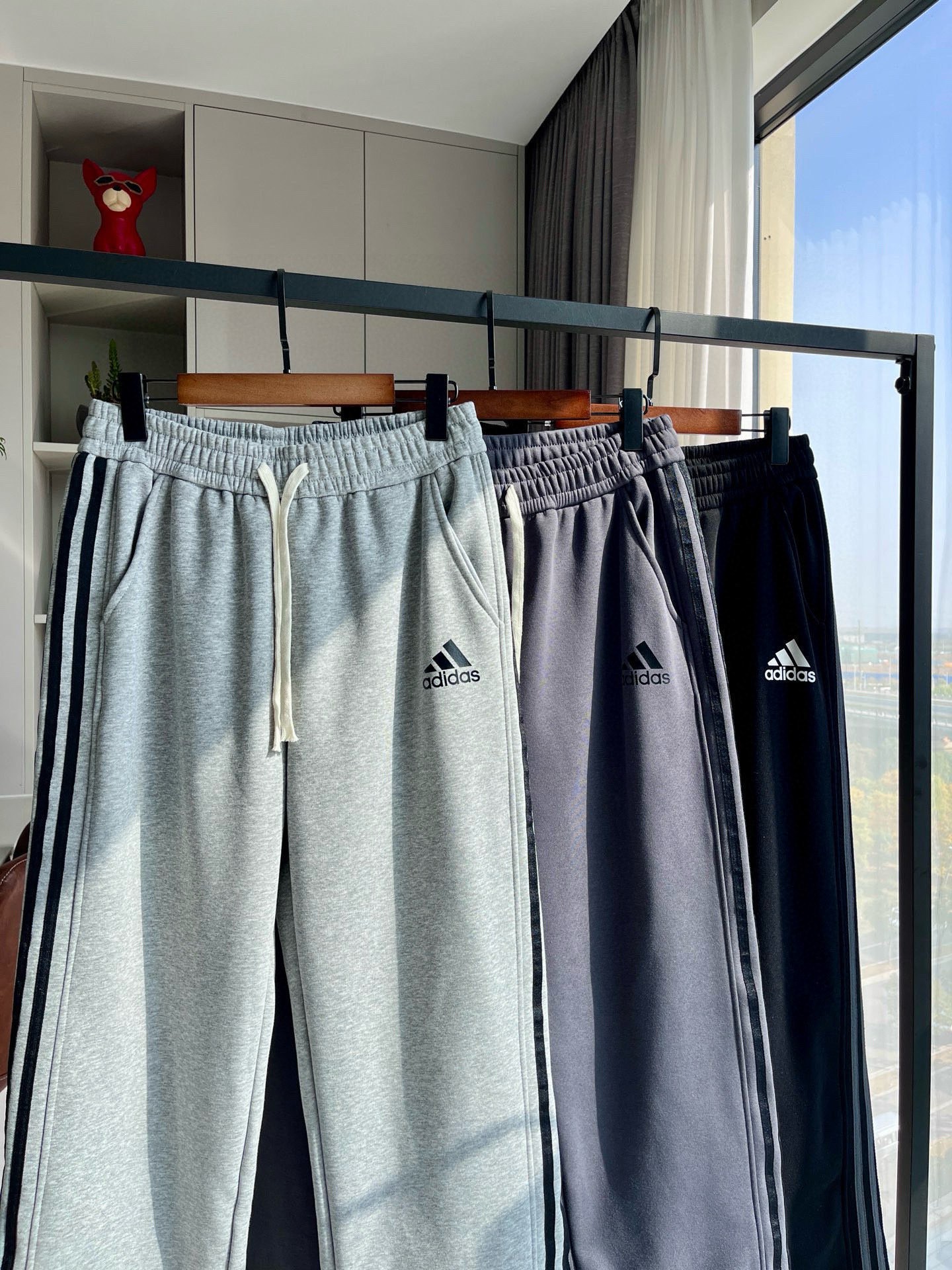 阿迪经典加绒三杠直筒裤