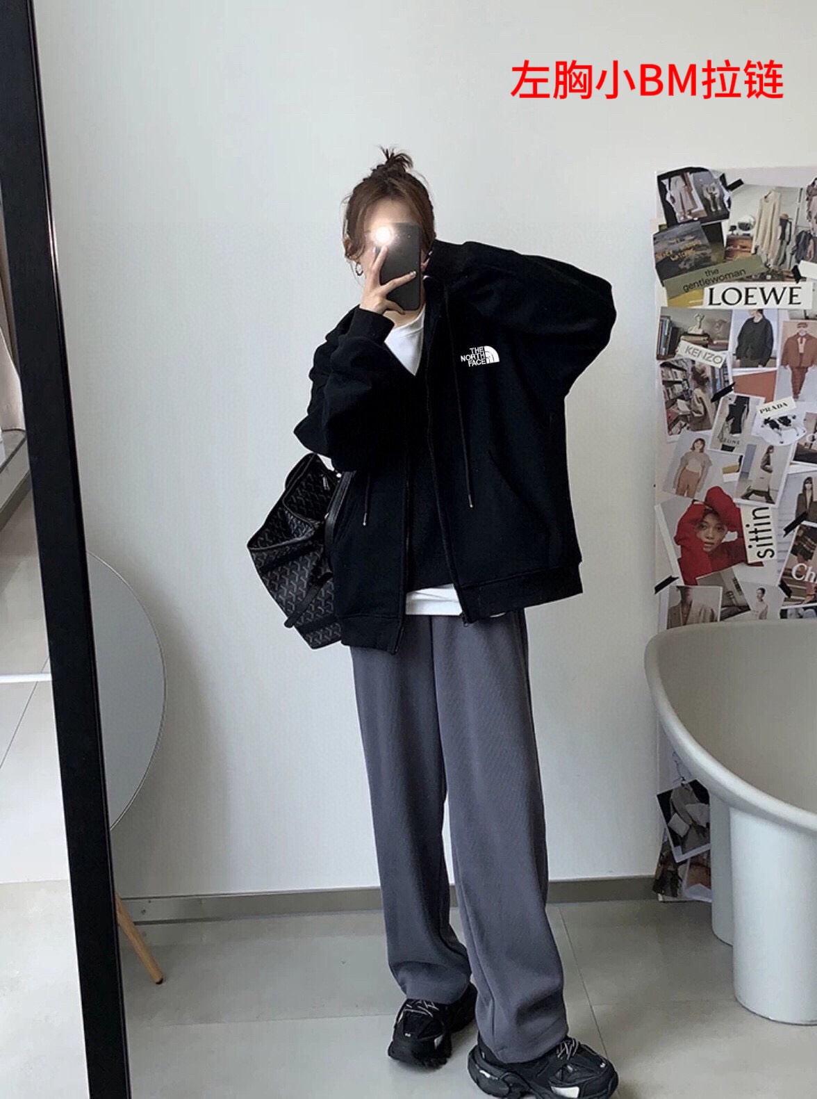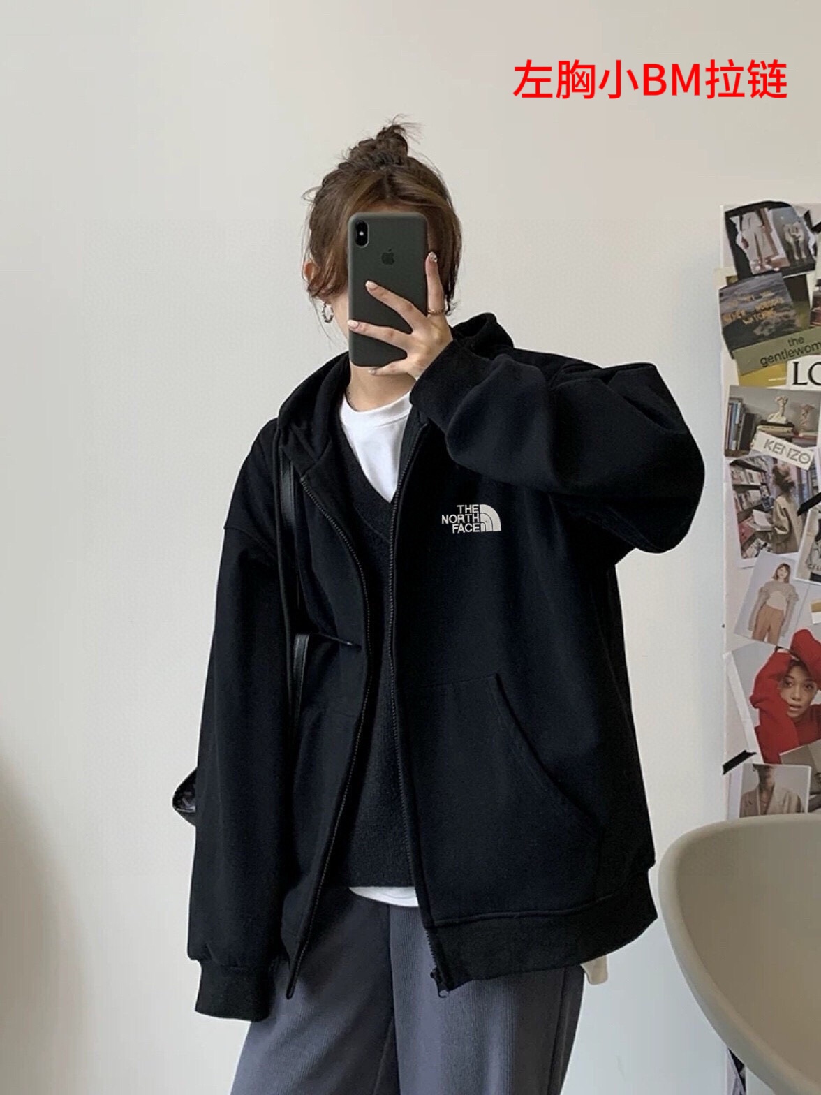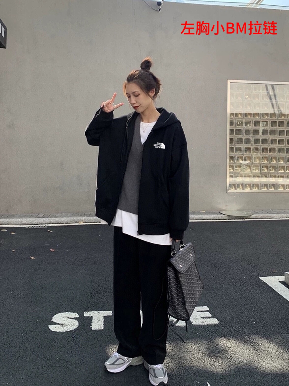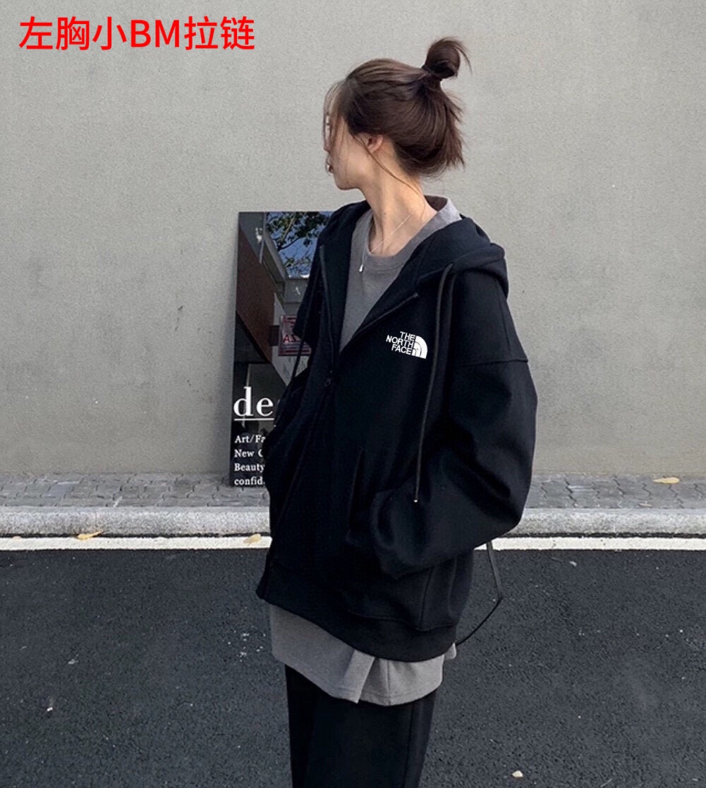 北面The North Face简约百搭落肩宽开衫卫衣连帽外套黑色情侣款