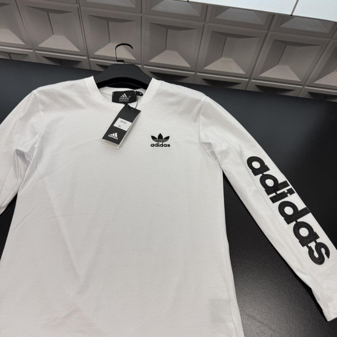 春季新款上新爆炸输出AD阿迪达斯长袖T恤打底衫 胸前刺绣Logo 麒麟臂袖子字母贴布刺绣 三标齐全官网一致 放大看细节原相机实物拍摄 颜色 白色 尺码 L 4xl L 80 105斤 XL 105 120斤 2XL 120 140斤 3XL 140 160斤 4XL 160 180斤