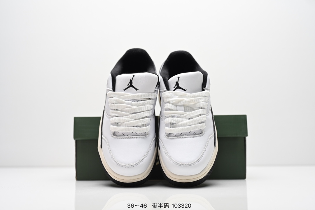 Quai54 x Air Jordan 4 Retro Flight Court 低帮 米黄色 AJ4 乔丹4代 aj4 乔4 低邦 米黄色 乔丹篮球鞋系列 鞋款整体以米白色皮革打造 搭配侧身白色皮革打造 鞋舌JJumpman Logo及后跟Quai54经典Logo均采用黑色刺绣点缀 后跟侧身Flight字样也辅以黑色刺绣呈现 秉承轻量化的速度型篮球鞋设计思想完成设计 降低重量的同时提升舒适度 中底延续前作使用了分离式后掌可视化Air Soles气垫 鞋带孔和后跟鞋提以籃网为造型灵感 将篮球运动巧妙融入到鞋款的设计之中 使鞋身整体富有流动性 节奏感和优雅气质