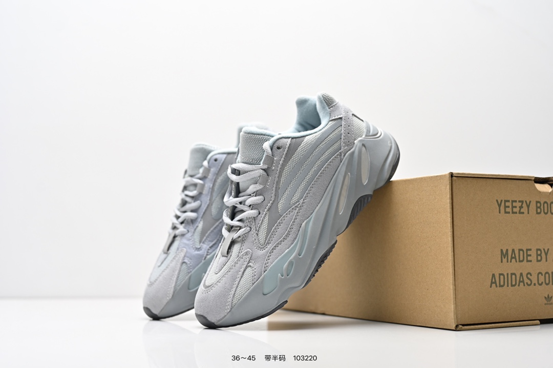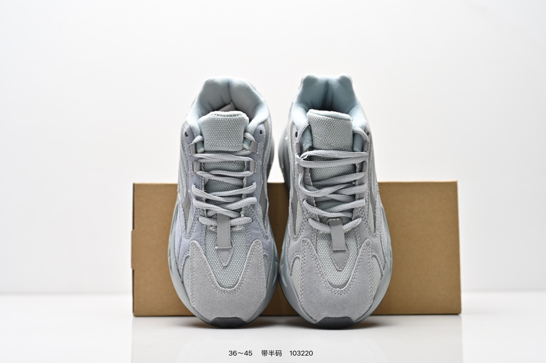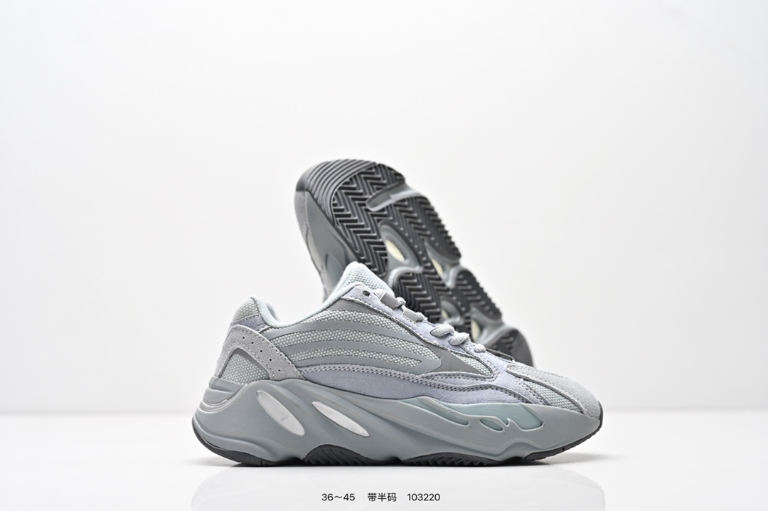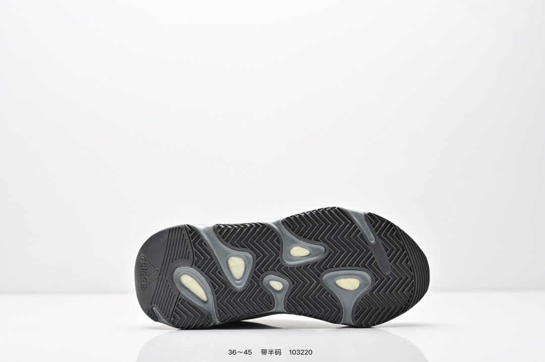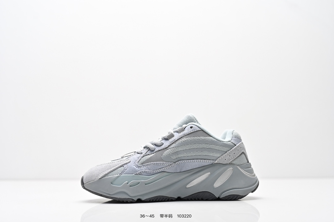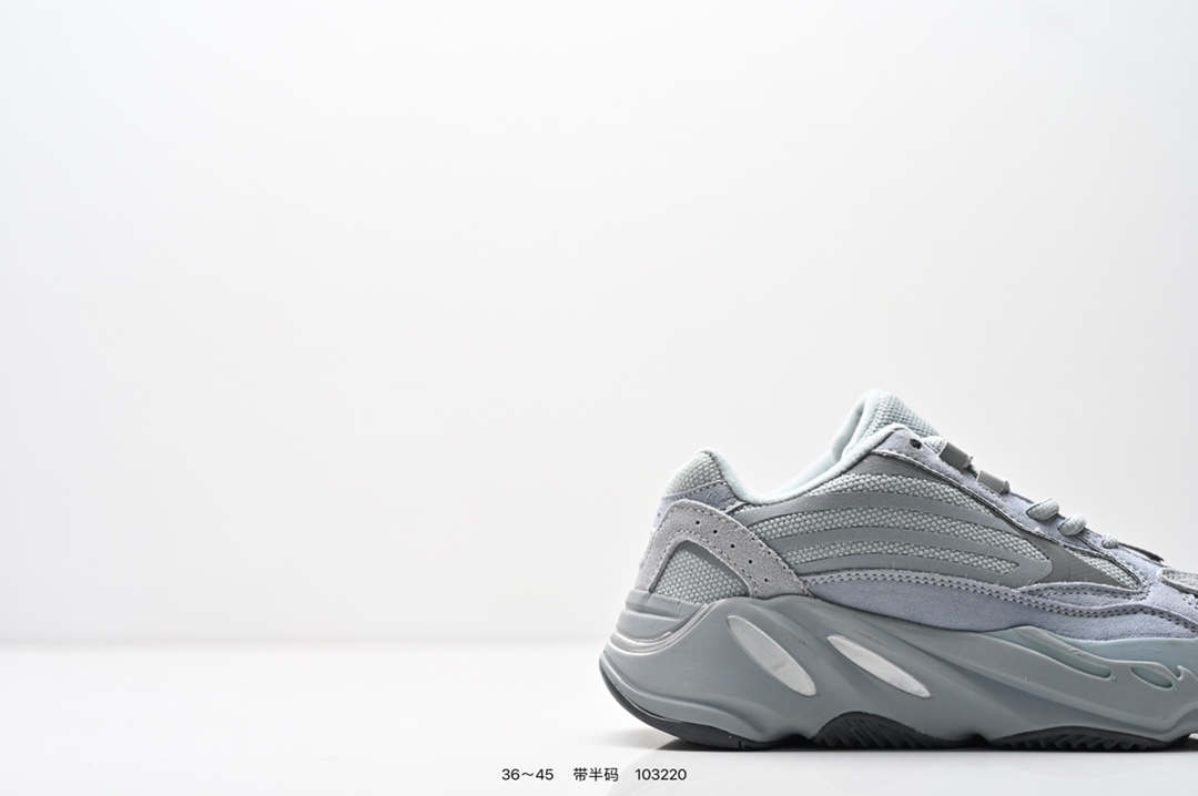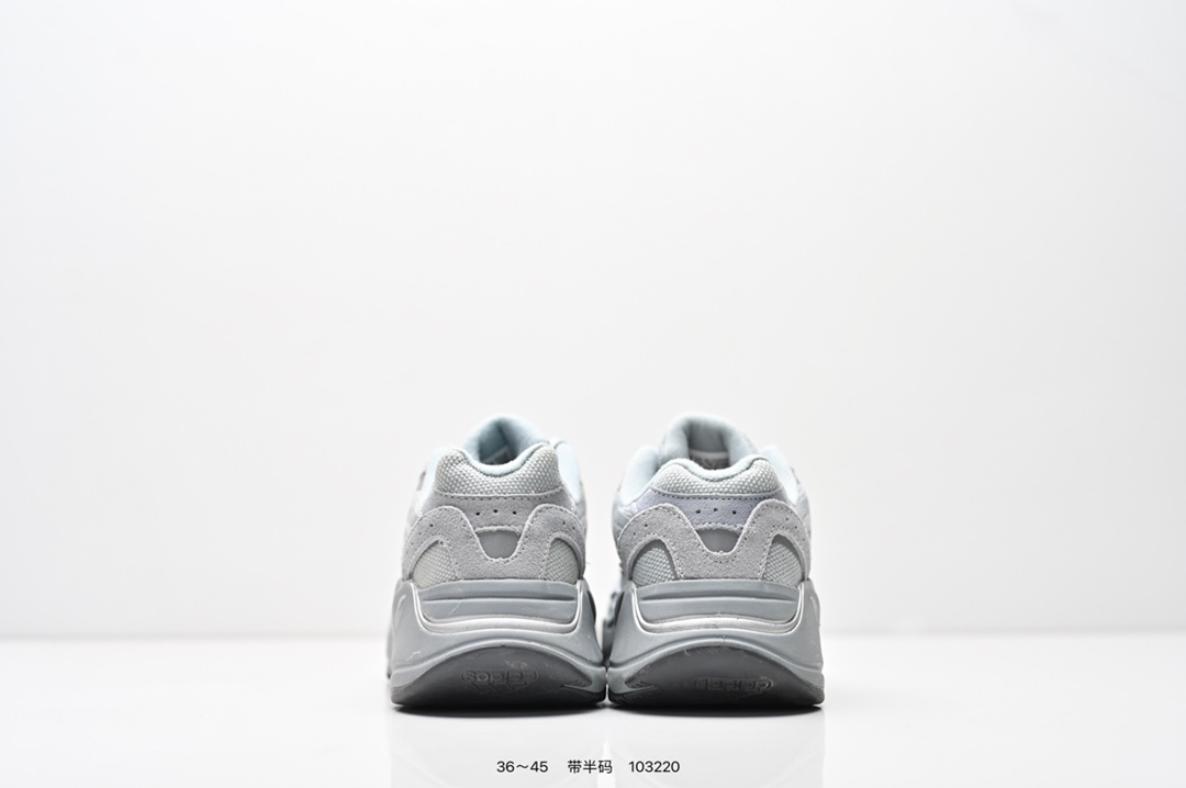 采用麂皮 皮革 网布三种材质组成 鞋面置有反光元素 鞋身非常纯粹 轮廓十分复古优雅 YEEZY BOOST 700的鞋底厚度提升了不少 因为中底藏有全掌Boost科技加持 提供了舒适的脚感