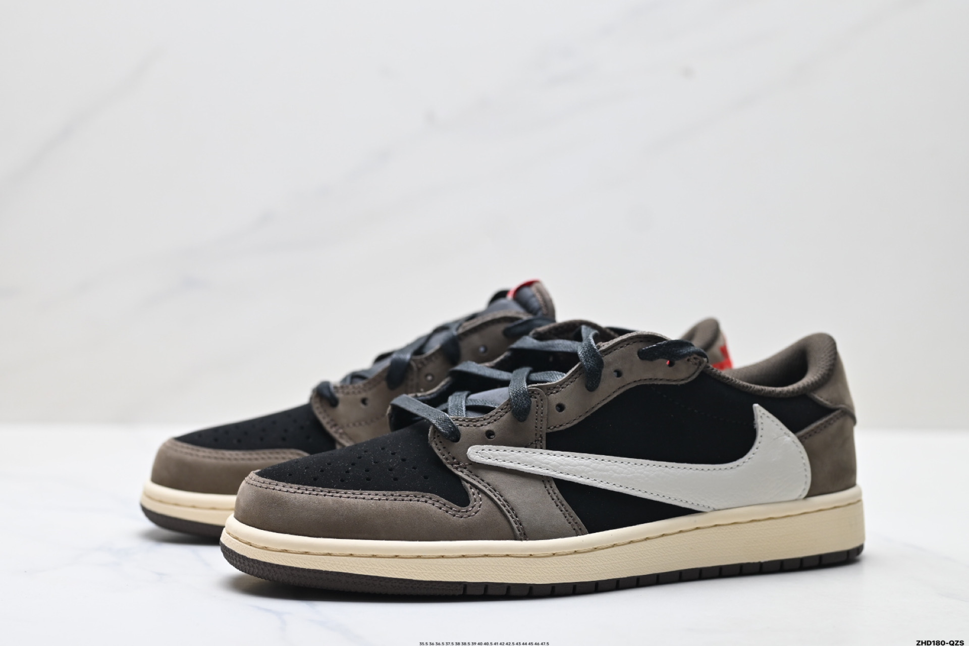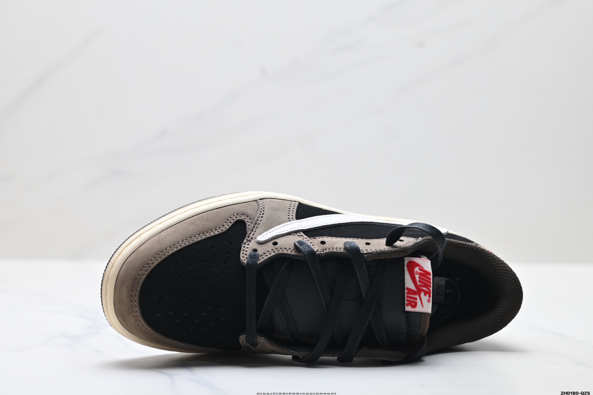 公司级AJ1倒勾Travis Scott x Air Jordan 1 Reverse Mocha AJ1乔1 TS 闪电 联名倒钩 低帮文化篮球鞋 完美品质出货 细节如图所示 鞋面切割工整 冲孔整齐干净 中底拉帮线 整体清洁度非常好