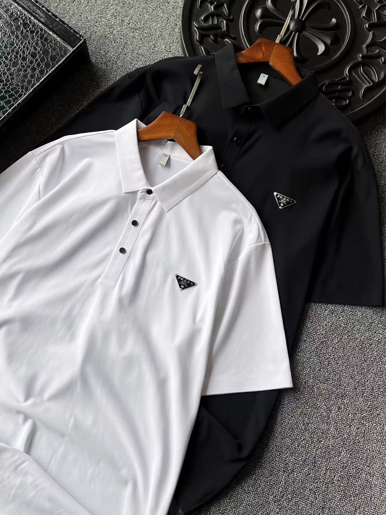 人气爆款 Prada 普拉达小仆人公文包蚕丝锦氨无痕短袖Polo衫 恒隆在售万元级 款号 9112