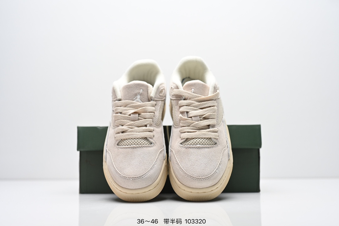 Quai54 x Air Jordan 4 Retro Flight Court 低帮 米黄色 AJ4 乔丹4代 aj4 乔4 低邦 米黄色 乔丹篮球鞋系列 鞋款整体以米白色皮革打造 搭配侧身白色皮革打造 鞋舌JJumpman Logo及后跟Quai54经典Logo均采用黑色刺绣点缀 后跟侧身Flight字样也辅以黑色刺绣呈现 秉承轻量化的速度型篮球鞋设计思想完成设计 降低重量的同时提升舒适度 中底延续前作使用了分离式后掌可视化Air Soles气垫 鞋带孔和后跟鞋提以籃网为造型灵感 将篮球运动巧妙融入到鞋款的设计之中 使鞋身整体富有流动性 节奏感和优雅气质