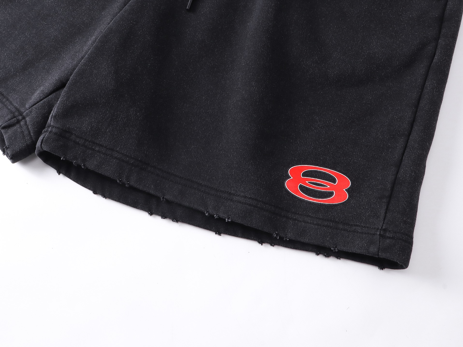 实拍图 顶级版本 官网品质 BALENCI GA 巴黎 2025新款 前面左右双环印花 后面左右字母印花洗水做旧磨烂短裤 砖柜同步 第一时间正品研制 欢印对比 面料采用巴黎ZP定织定染全棉毛圈大卫衣 克重460克 布面干净 布纹清晰 手感柔软舒适 印花釆用进口环保胶桨字母清晰 效果立体 版型釆用宽松版型 男女同款