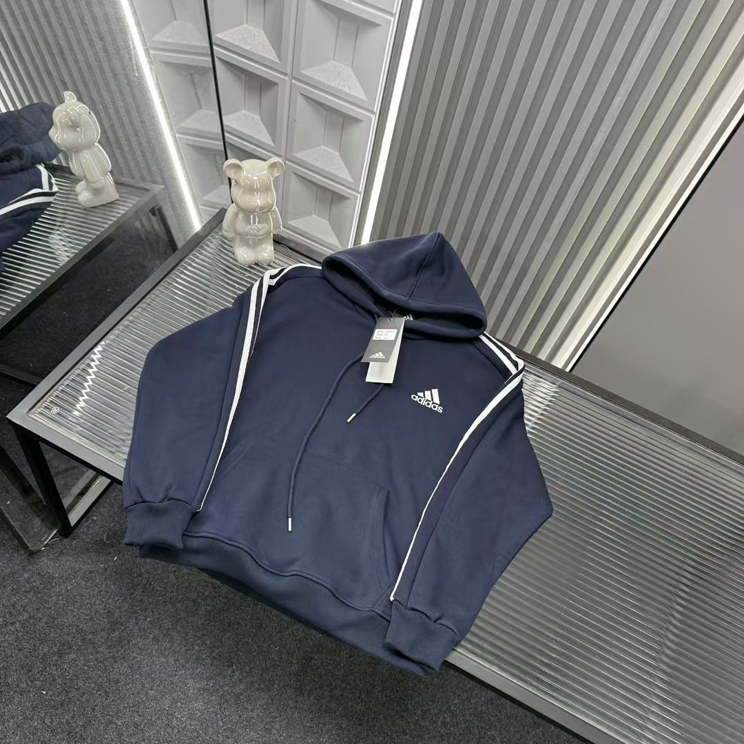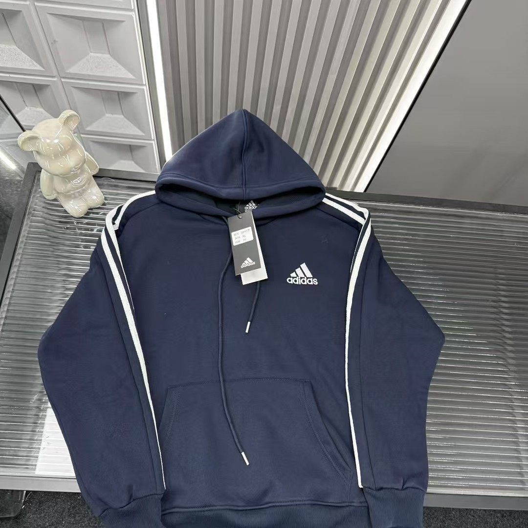 秋冬爆款热销款推荐AD阿迪达斯加绒连帽卫衣 经典三道杠 胸前刺绣Logo 三标齐全官网一致 放大看细节原相机实物拍摄 颜色 藏青色 尺码 L 4xl L 80 105斤 XL 105 120斤 2XL 120 140斤 3XL 140 160斤 4XL 160 180斤