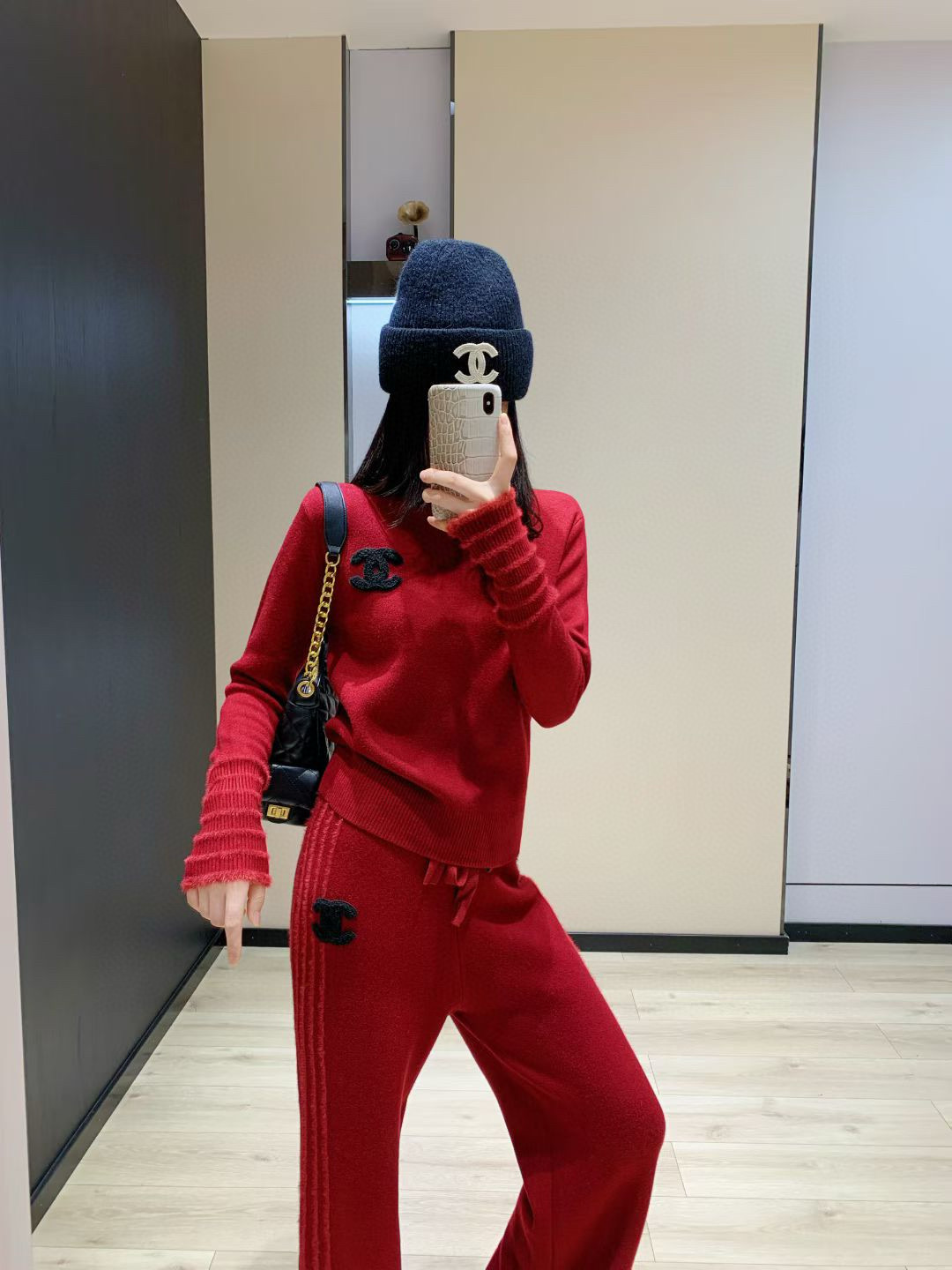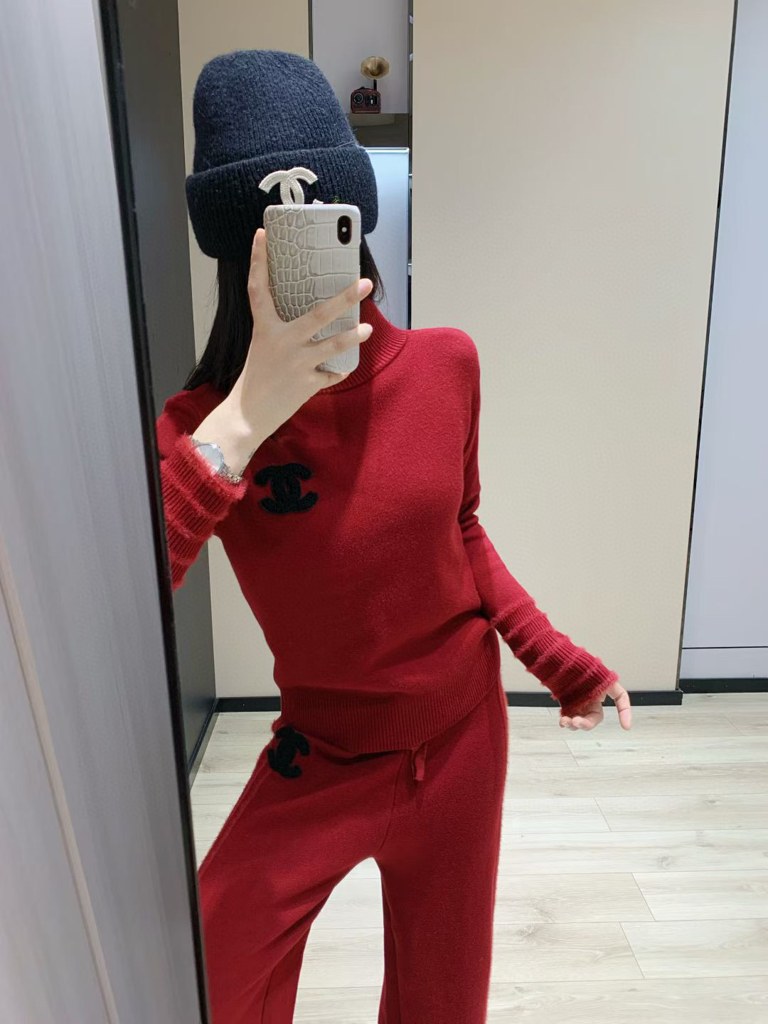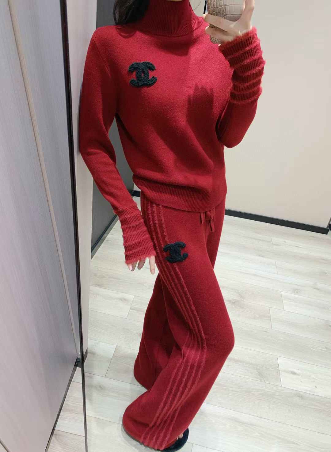 165126474 - Chanel香奈儿小香双C毛巾绣花加绒高领毛衣抽绳长裤针织套 355132