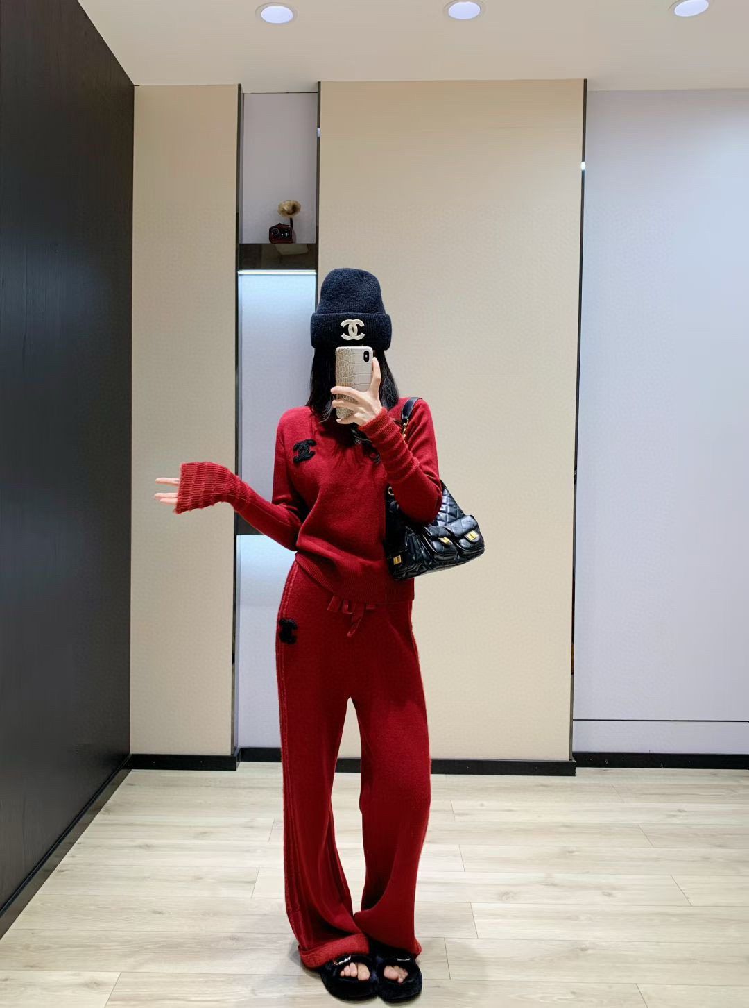Chanel香奈儿小香双C毛巾绣花加绒高领毛衣抽绳长裤针织套装