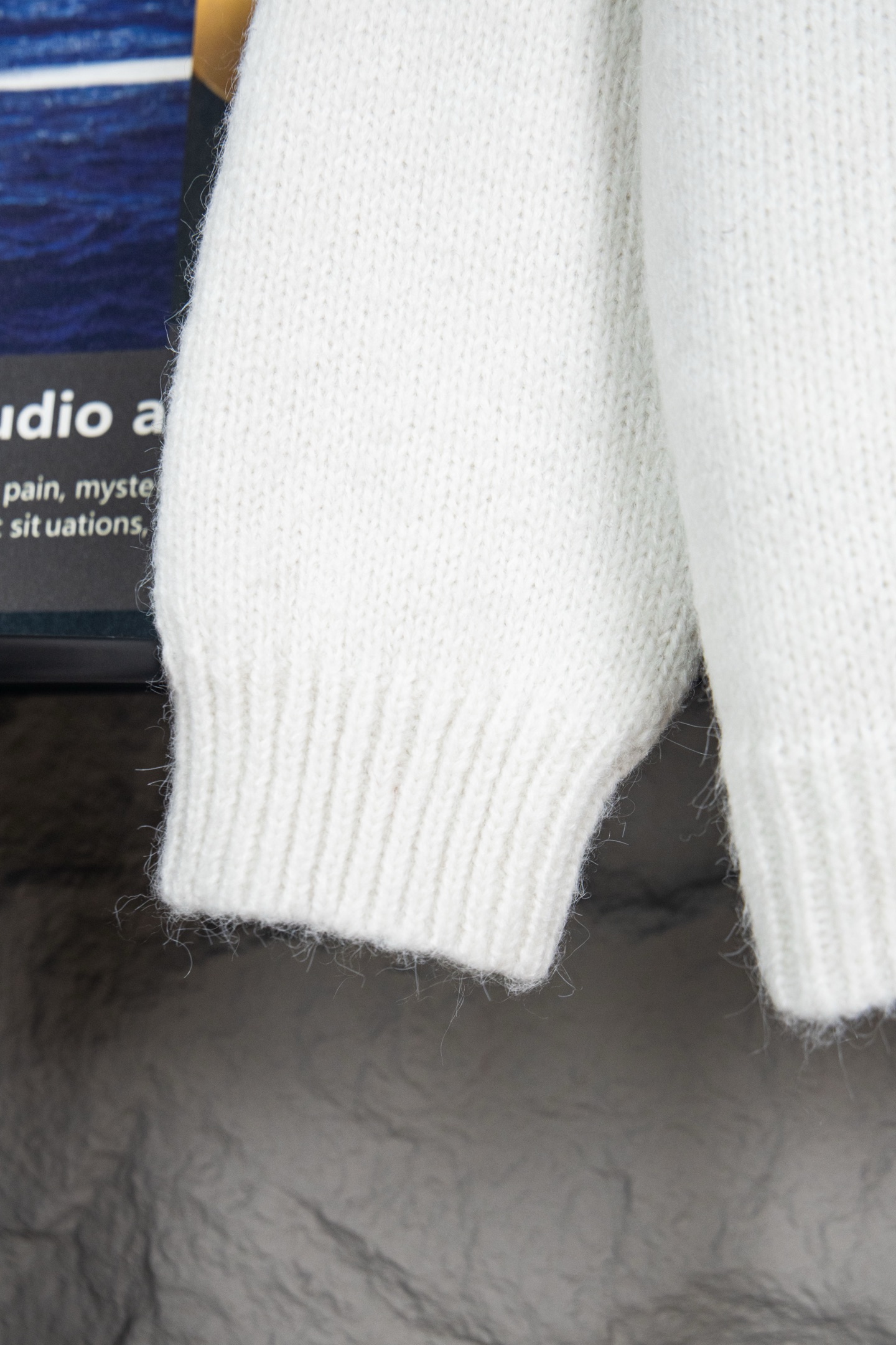 材质观感 看起来是柔软的毛绒针织面料 触感应该比较舒适 适合秋冬季节穿