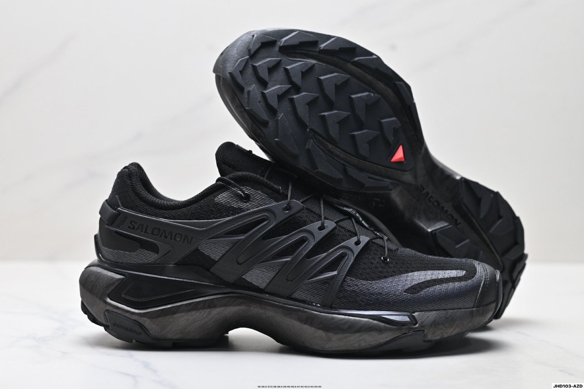 鞋底磨损区运用CONTAGRIP耐磨鞋材 后跟自然饱满还原包裹性 鞋面用SENSIFT贴合包裹脚型 鞋跟鞋底牵引设计抓地性 3D ADVANCED CHASSIS底盘轻量化 五层组合大底 钉齿设计稳定防护 Ortholite轻量化鞋垫