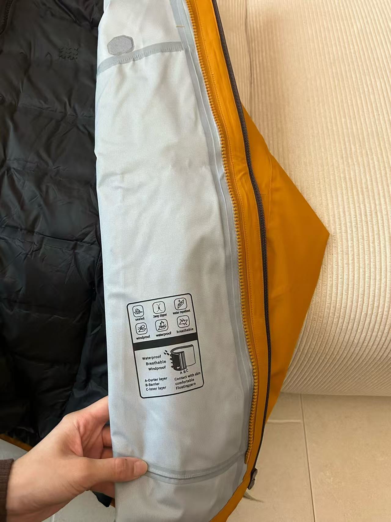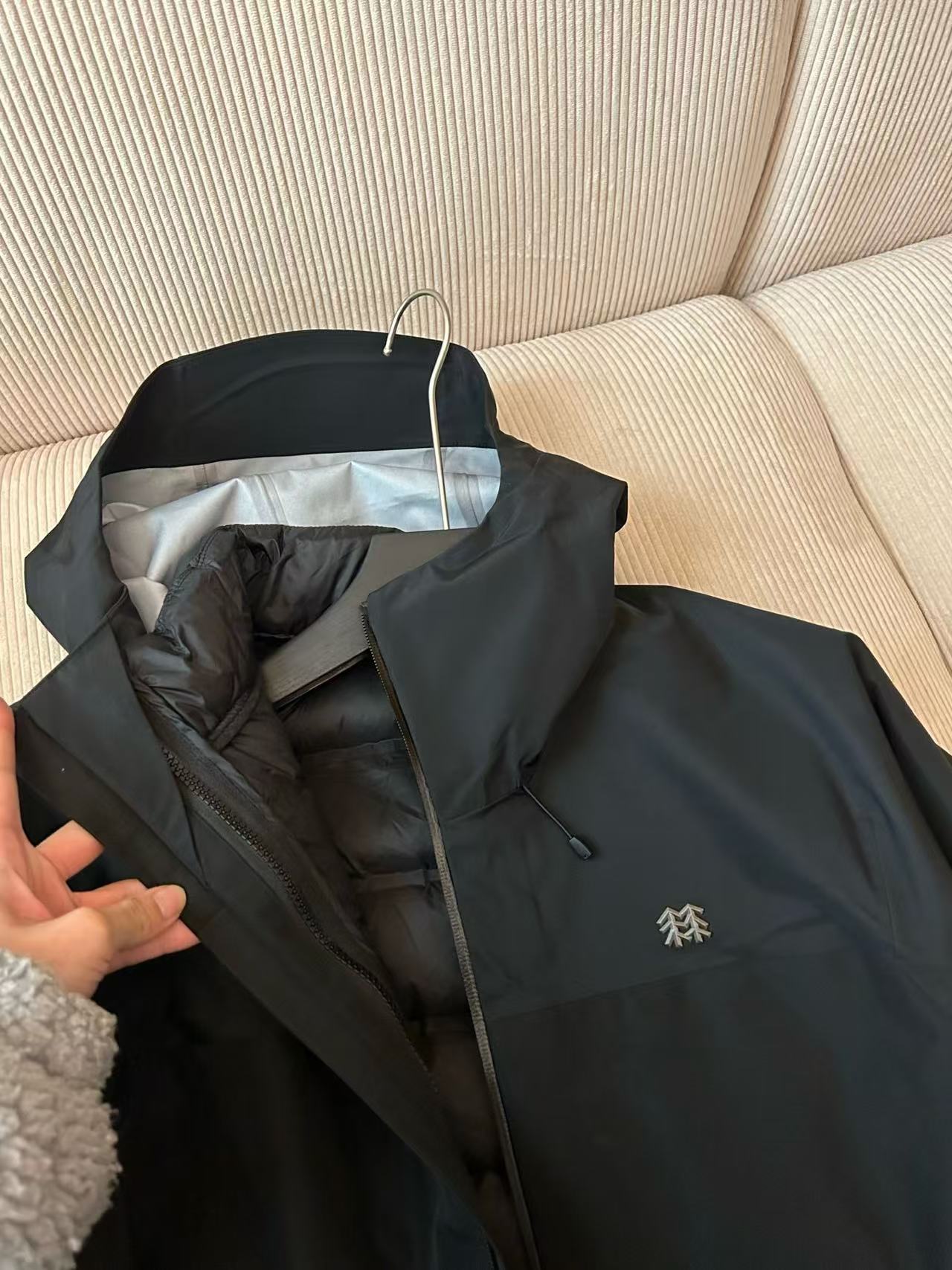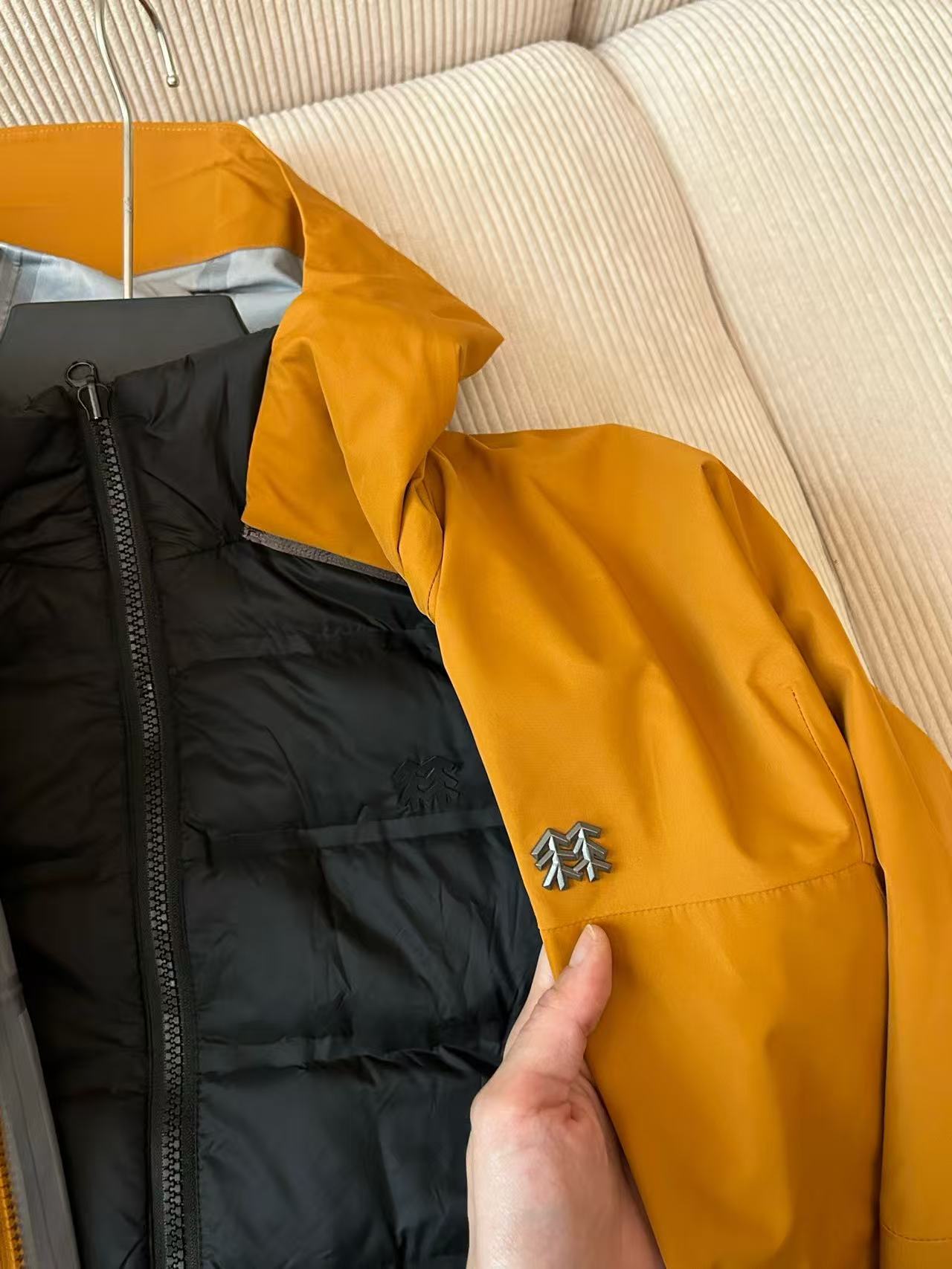 面料 采用原版B1297一比一定织定染GORE TEX硬壳三合一面料 防雨 防风 防撕裂 保暖透气 内丹为尼丝纺羽绒面料 双层内丹不跑绒