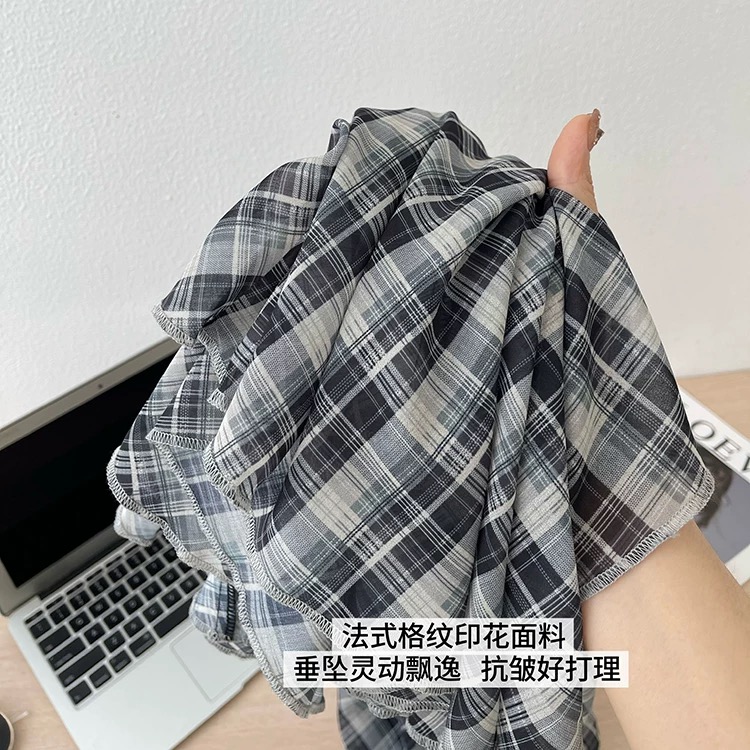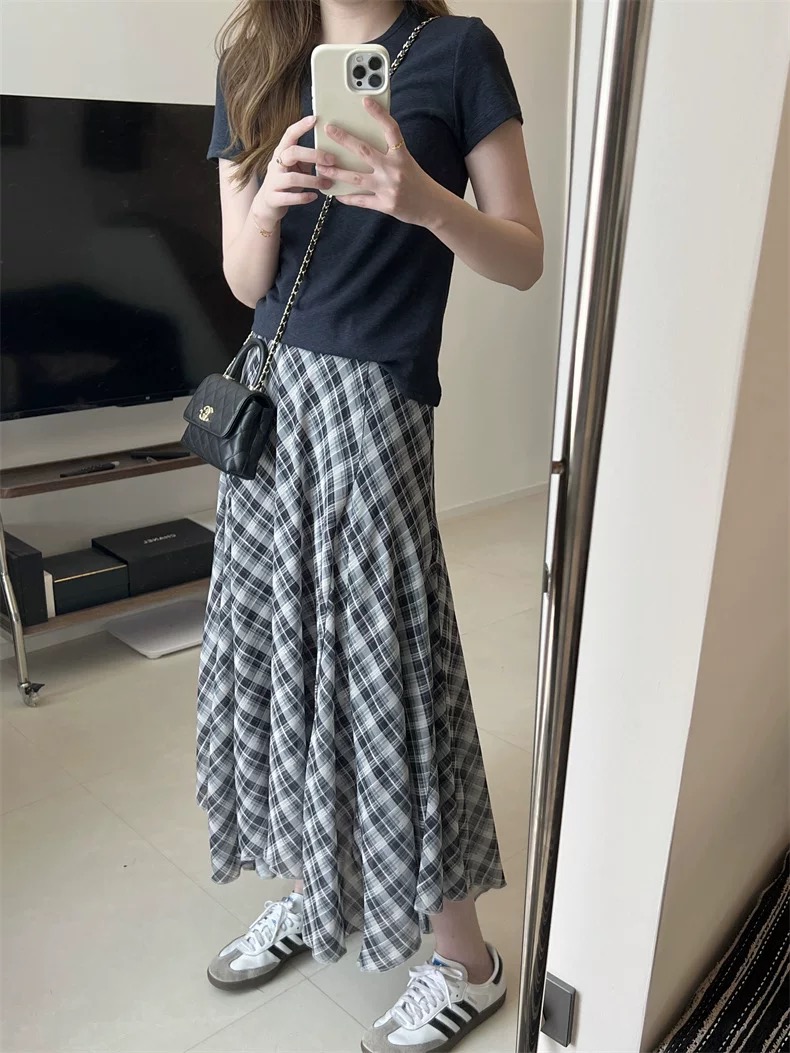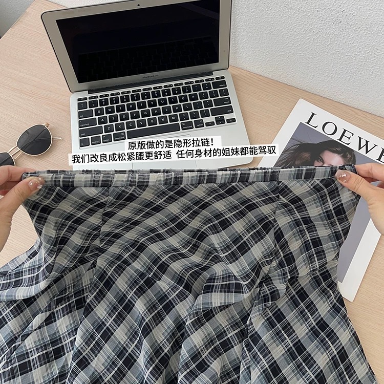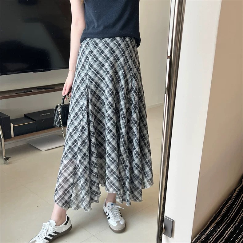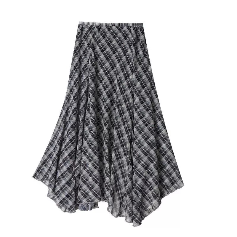 半裙遮胯显瘦不规则复古格子雪纺半身裙女夏薄款2026新款夏天轻薄裙子 邂逅法式慵懒 解锁格纹风尚 飘逸半身裙 凉感雪花麻 自带降温buff 清凉透气 夏天穿不闷汗 手感柔顺细腻穿着仿若无物chao轻盈 垂顺shi足 走路带风格纹印花插片裙 是法式慵懒风情与现代时尚的wan美邂逅Jing典黑白格纹设计简约中透着gao级 永不过时的元素适配各种场合 A字廓形设计巧妙修饰身形 包容不同身材曲线 自然垂坠间勾勒出曼妙身姿 插片大裙摆A型长款以不对称的插片拼接方式 增加裙摆量又显得腰部纤细为裙摆增添灵动层次 兼具复古优雅与动态飘逸感搭白T轻松打造法式慵懒感 搭衬衫则是通勤优雅典范