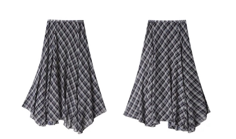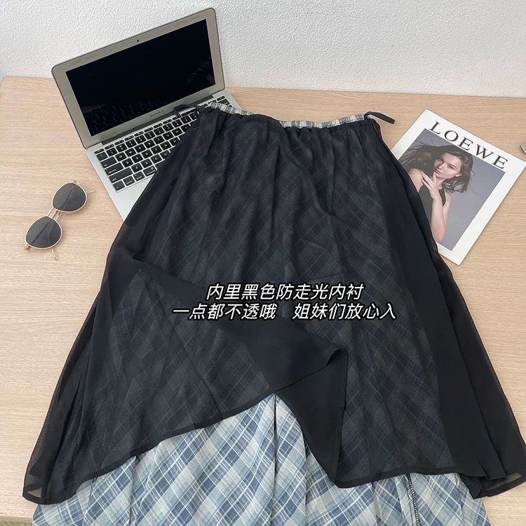 120379171 - 半裙遮胯显瘦不规则复古格子雪纺半身裙女夏薄款2026新款夏天 576356