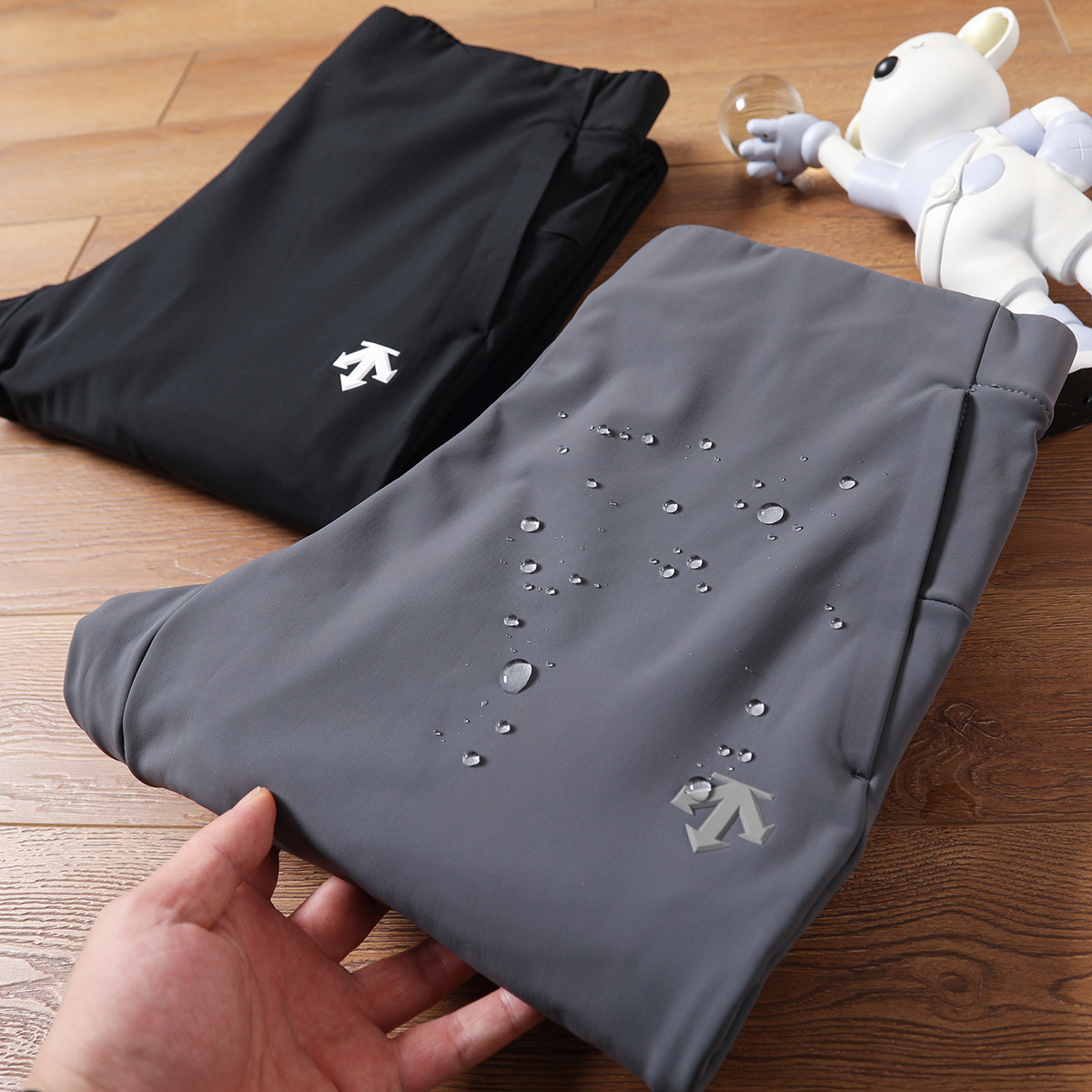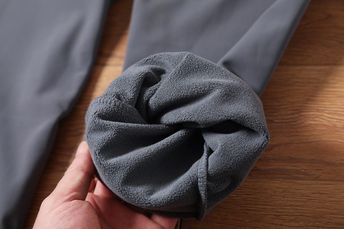 超密超细尼龙加摇粒绒复合 布面做了纳米防水 科技面料超级结合 更亲肤保暖 不油腻不闷热 运动裤子软壳加绒速干裤