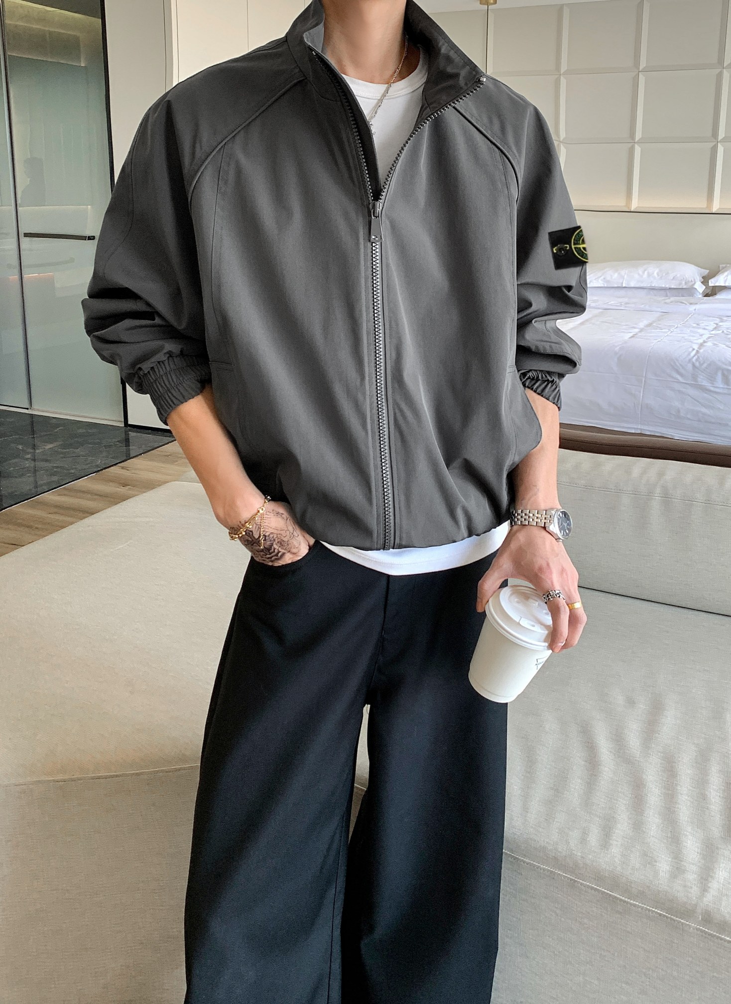 低调配色 不挑肤色不挑穿搭 无论是搭配简约白T 休闲牛仔裤 还是叠穿针织衫 西裤 都能轻松适配 打造出cleanfit cityboy 轻商务等多种风格