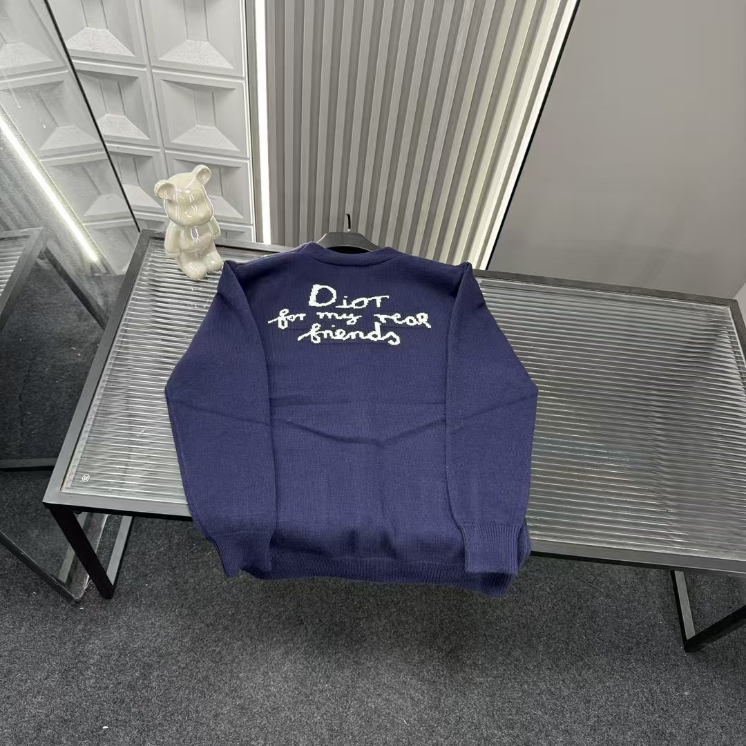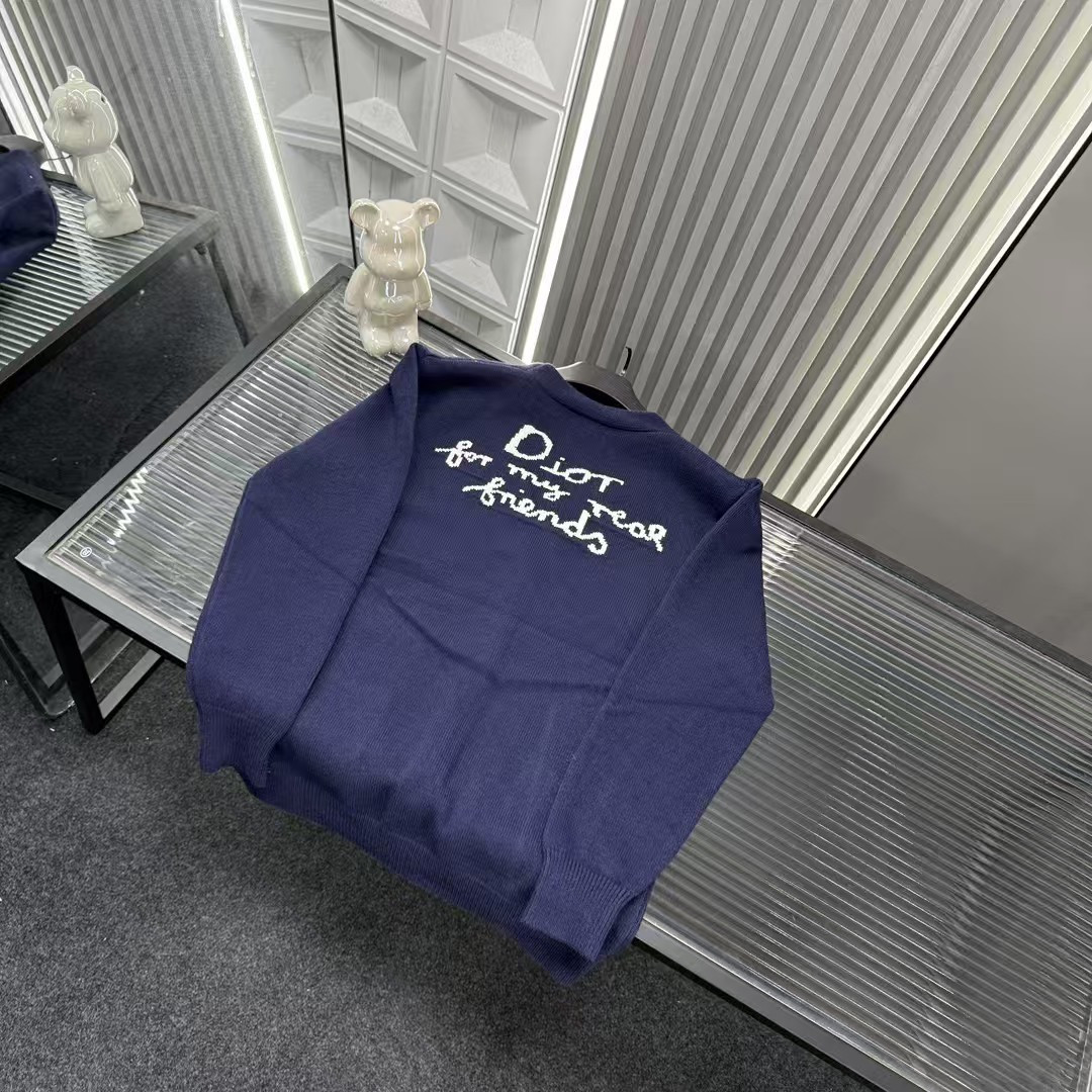 秋冬爆款热销款推荐Dior迪奥针织毛衣 后背字母溶解式图案V领开衫 三标齐全官网一致 放大看细节原相机实物拍摄 颜色 藏青色 尺码 L 4xl L 80 105斤 XL 105 120斤 2XL 120 140斤 3XL 140 160斤 4XL 160 180斤