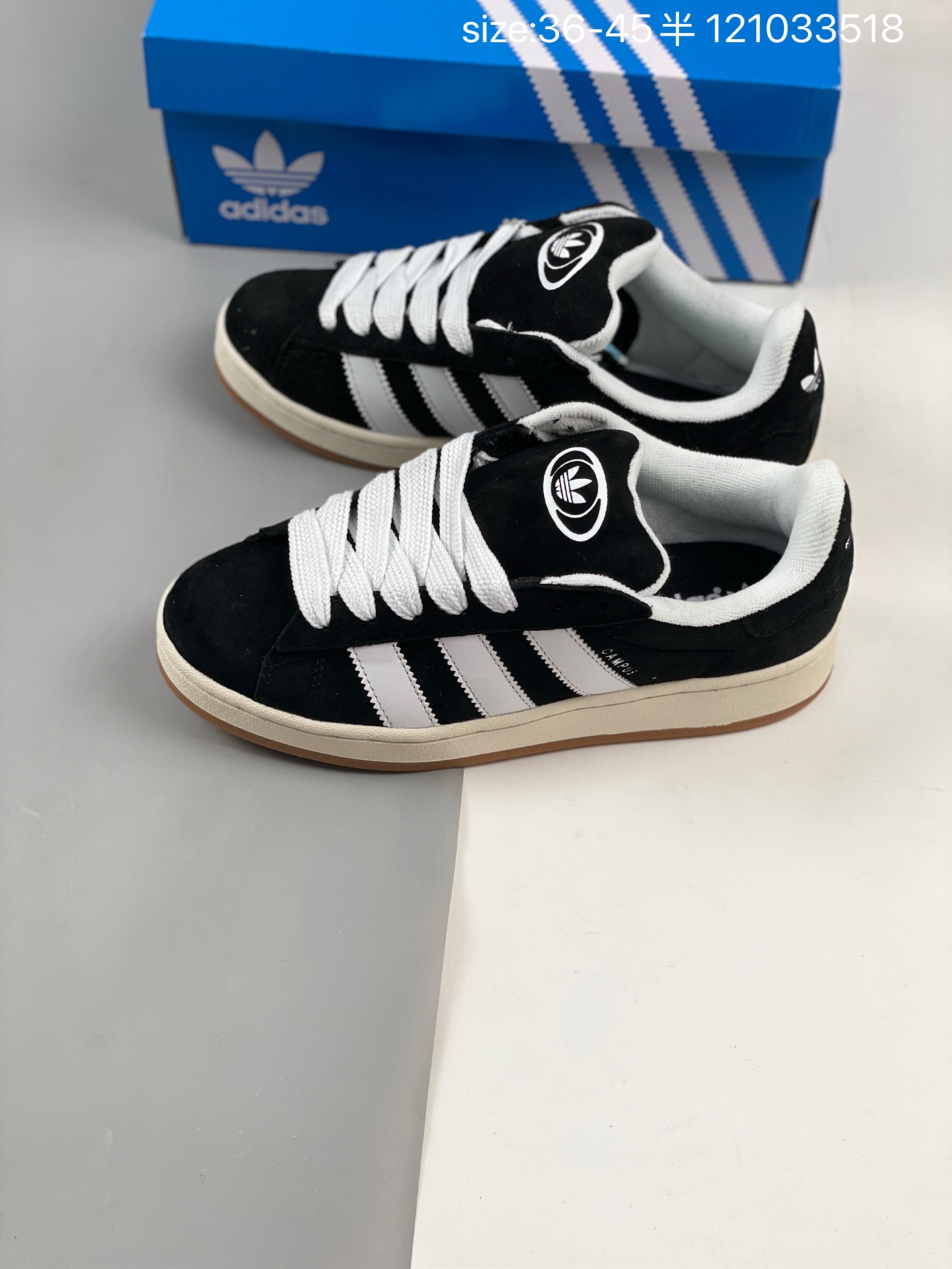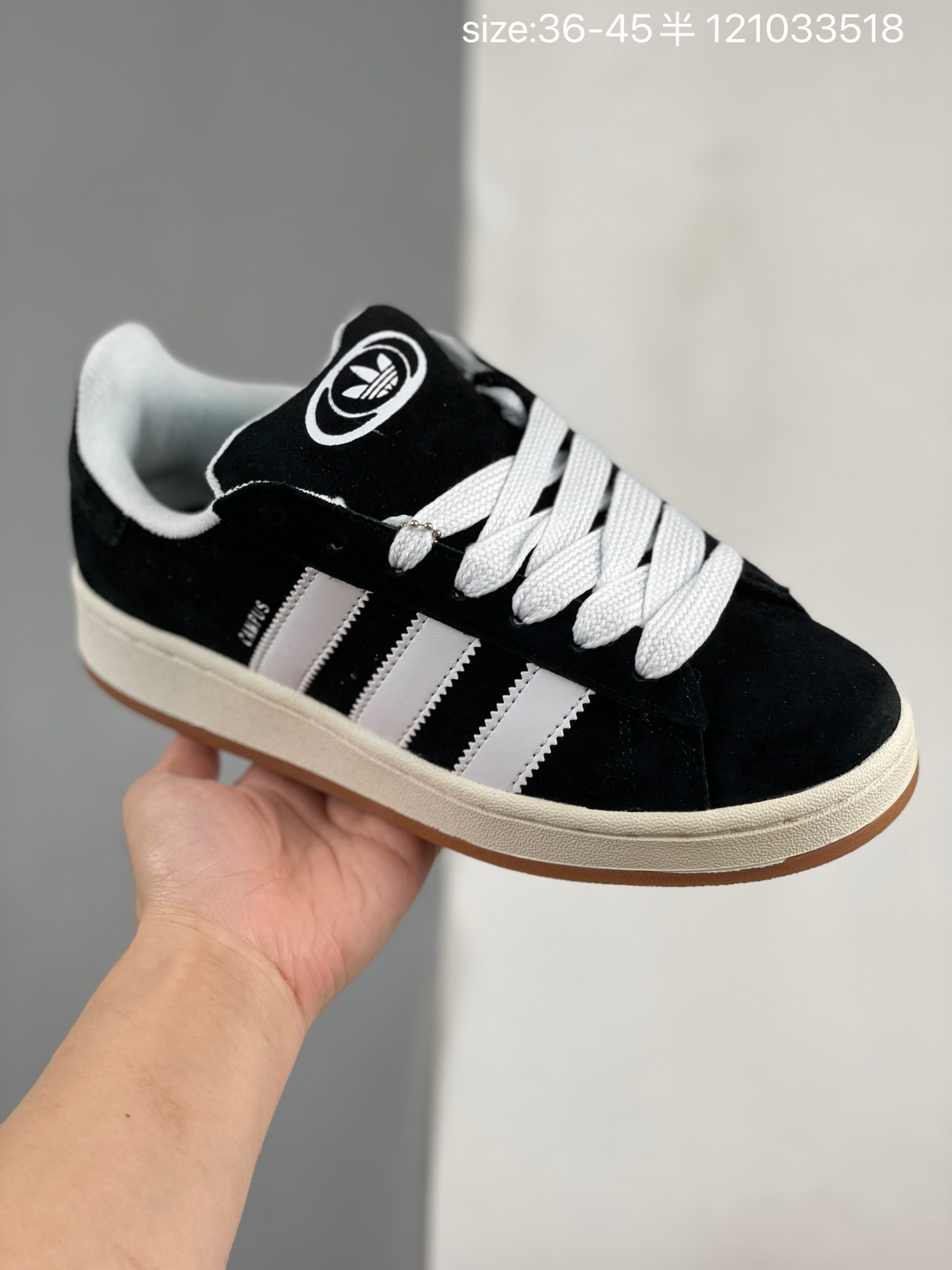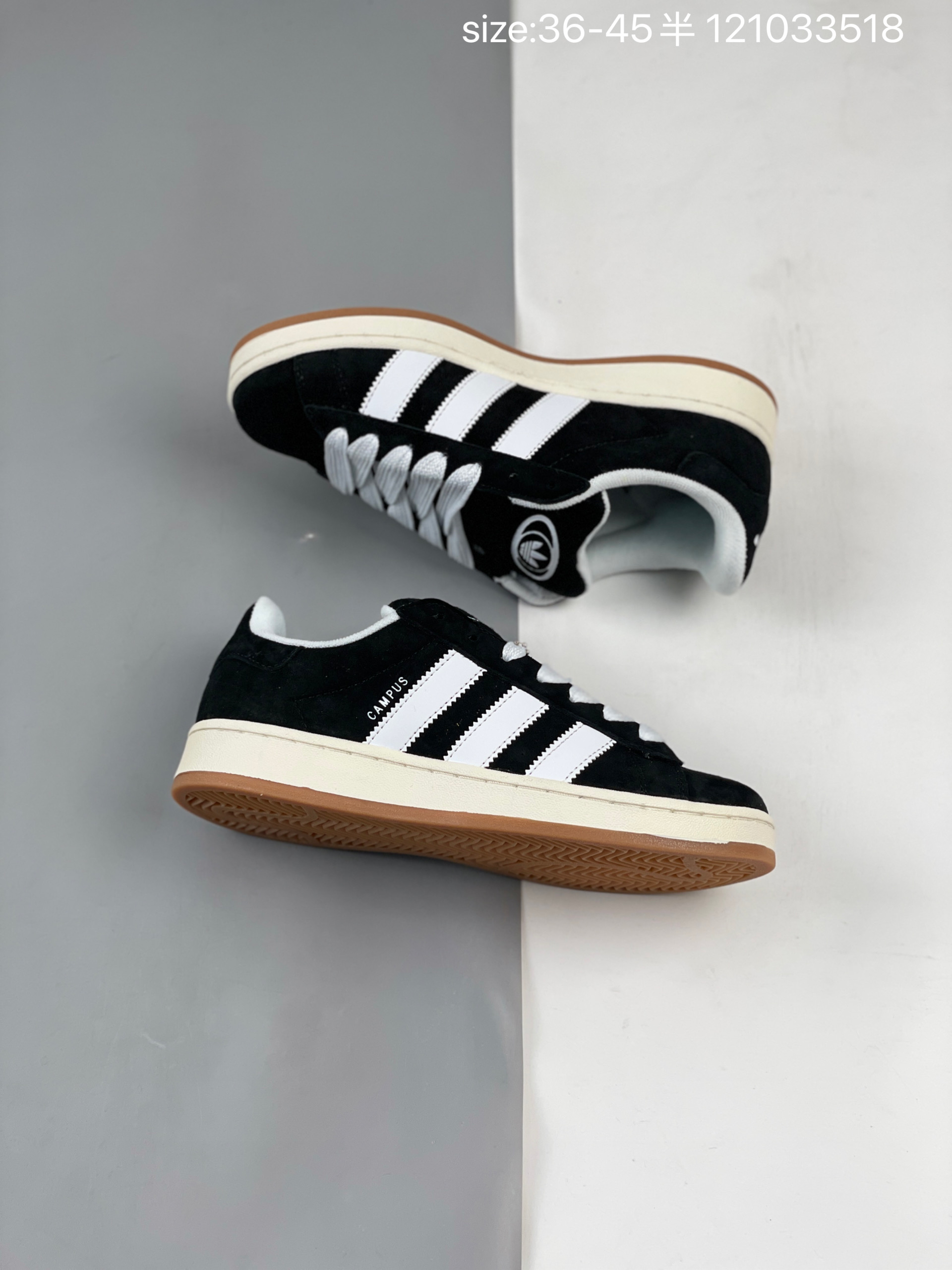 Adidas 阿迪达斯 男女鞋真标半码制 升级原楦原纸版数据开发版型 采用翻毛皮组合牛剖革饰片鞋面材质 内嵌欧索莱Ortholite 混合 再生 鞋垫 外置RB防滑耐磨橡胶大底潮流我熟 面包鞋就选这款 阿迪达斯Adidas Originals Campus 00s 学院系列面包风经典复古低帮百搭休闲运动板鞋 翻毛黑白生胶底 HQ8708