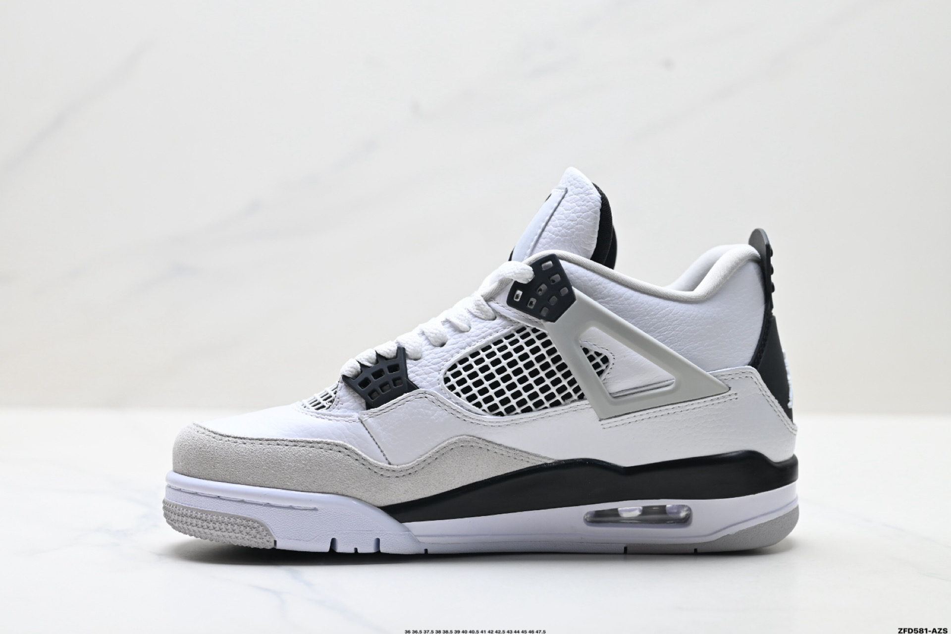 原厂材料TPU超Q弹网格材质 缜密拉帮及中底钢印细节 组合开窗式气垫大底 升级原楦原档案数据开发纸版楦型 采用同源纳帕头层皮革鞋面材质 全新底模完美品相清洁度及喷漆效果