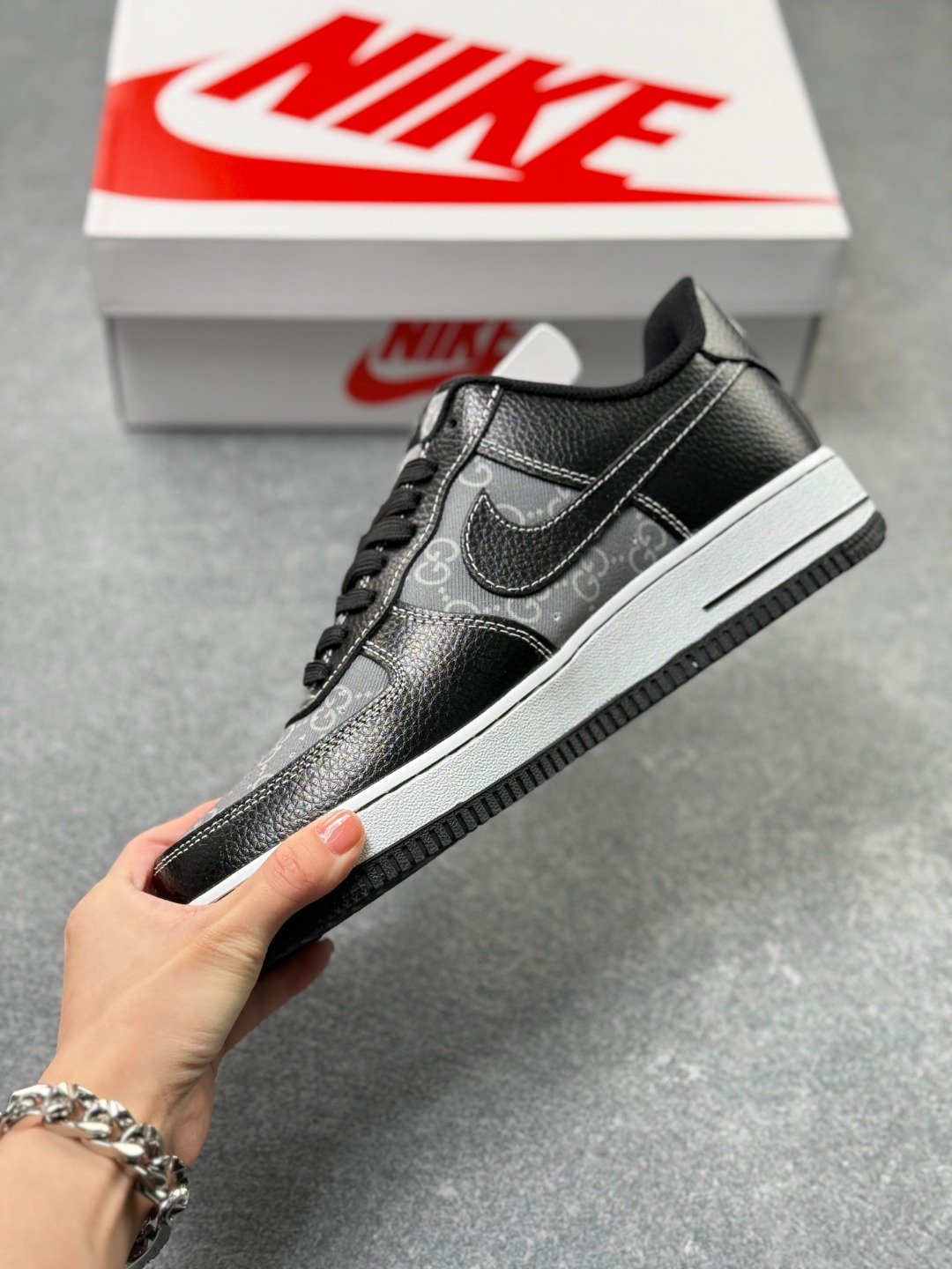 海外限量发售 公司级NIke Air Force 1 07 Low 古驰联名 白黑压花 空军一号 低帮 运动鞋 休闲鞋 折边针车 工艺难度大 原楦头原纸板 原装鞋盒 定制五金配件 内置全掌气垫 原厂鞋底
