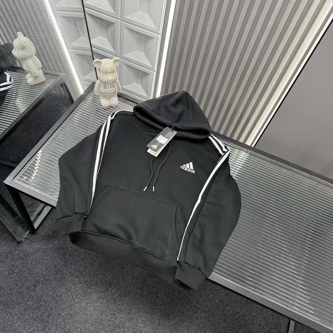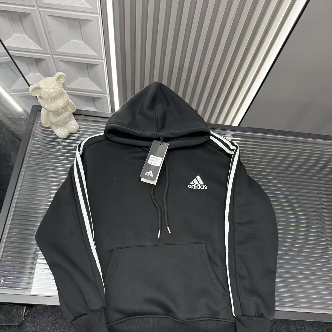 秋冬爆款热销款推荐AD阿迪达斯加绒连帽卫衣 经典三道杠 胸前刺绣Logo 三标齐全官网一致 放大看细节原相机实物拍摄 颜色 黑色 尺码 L 4xl L 80 105斤 XL 105 120斤 2XL 120 140斤 3XL 140 160斤 4XL 160 180斤