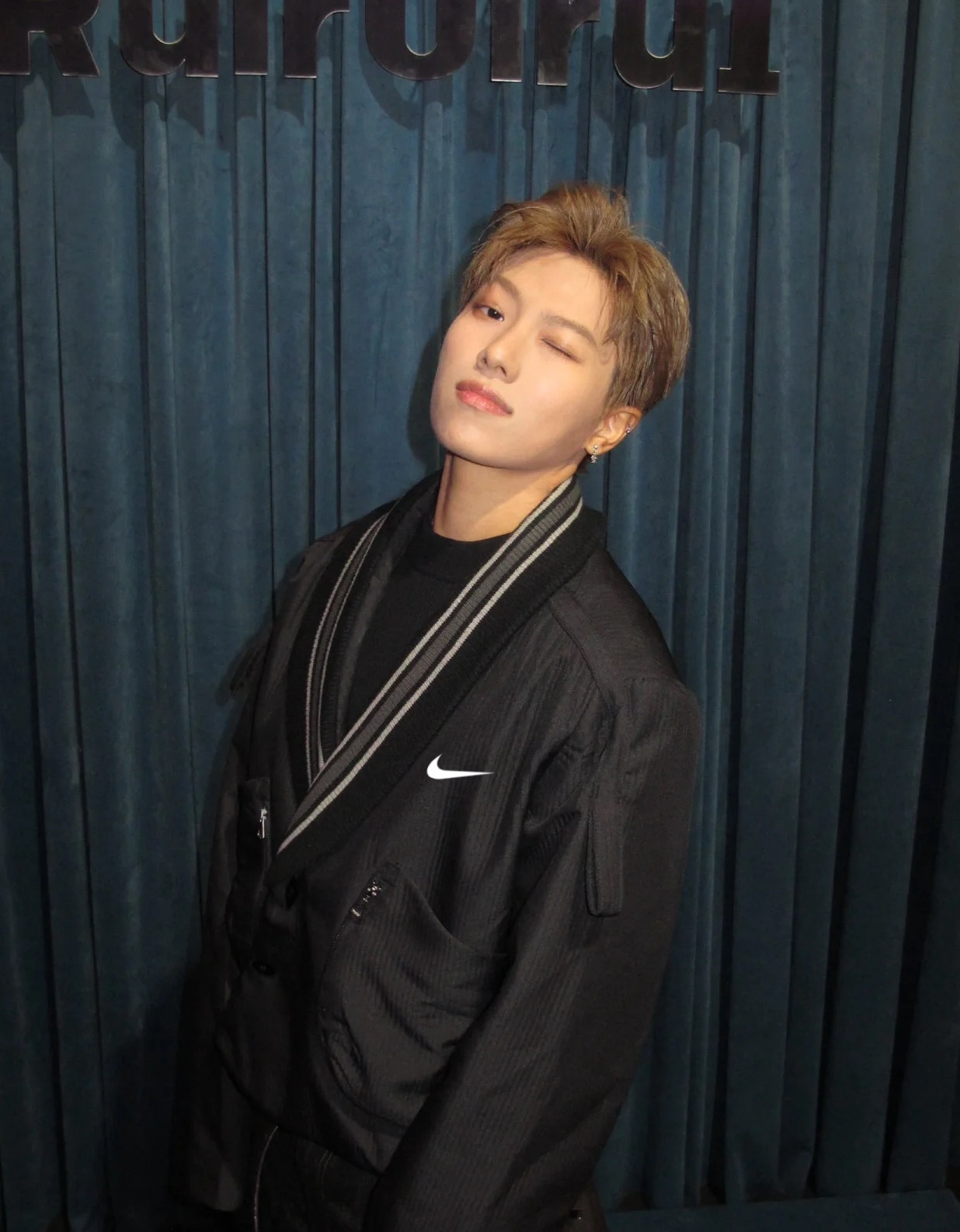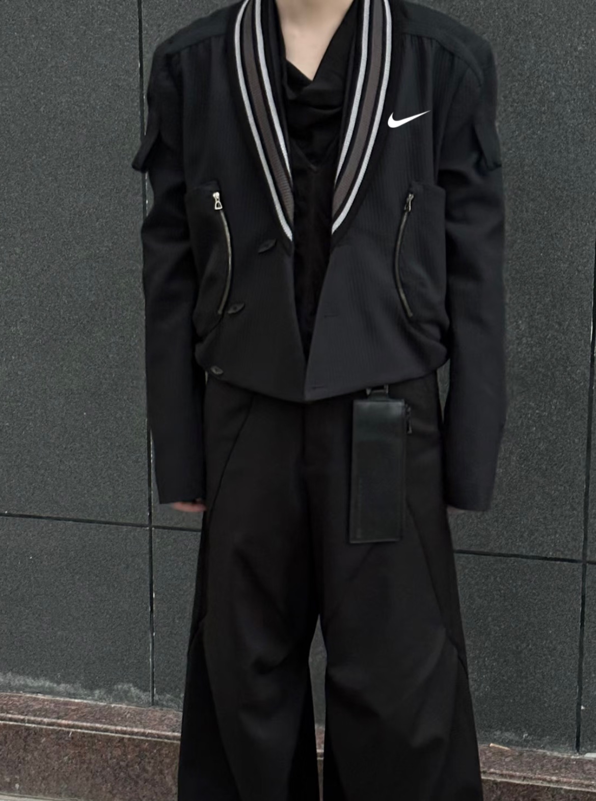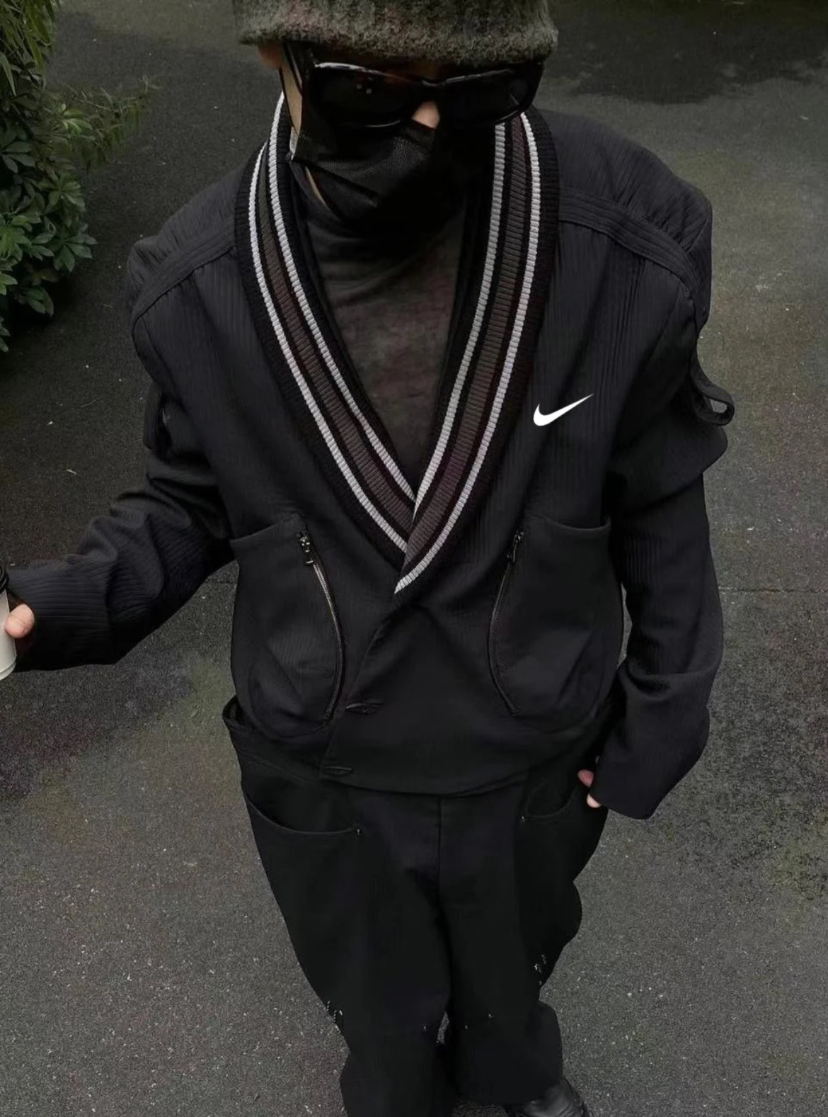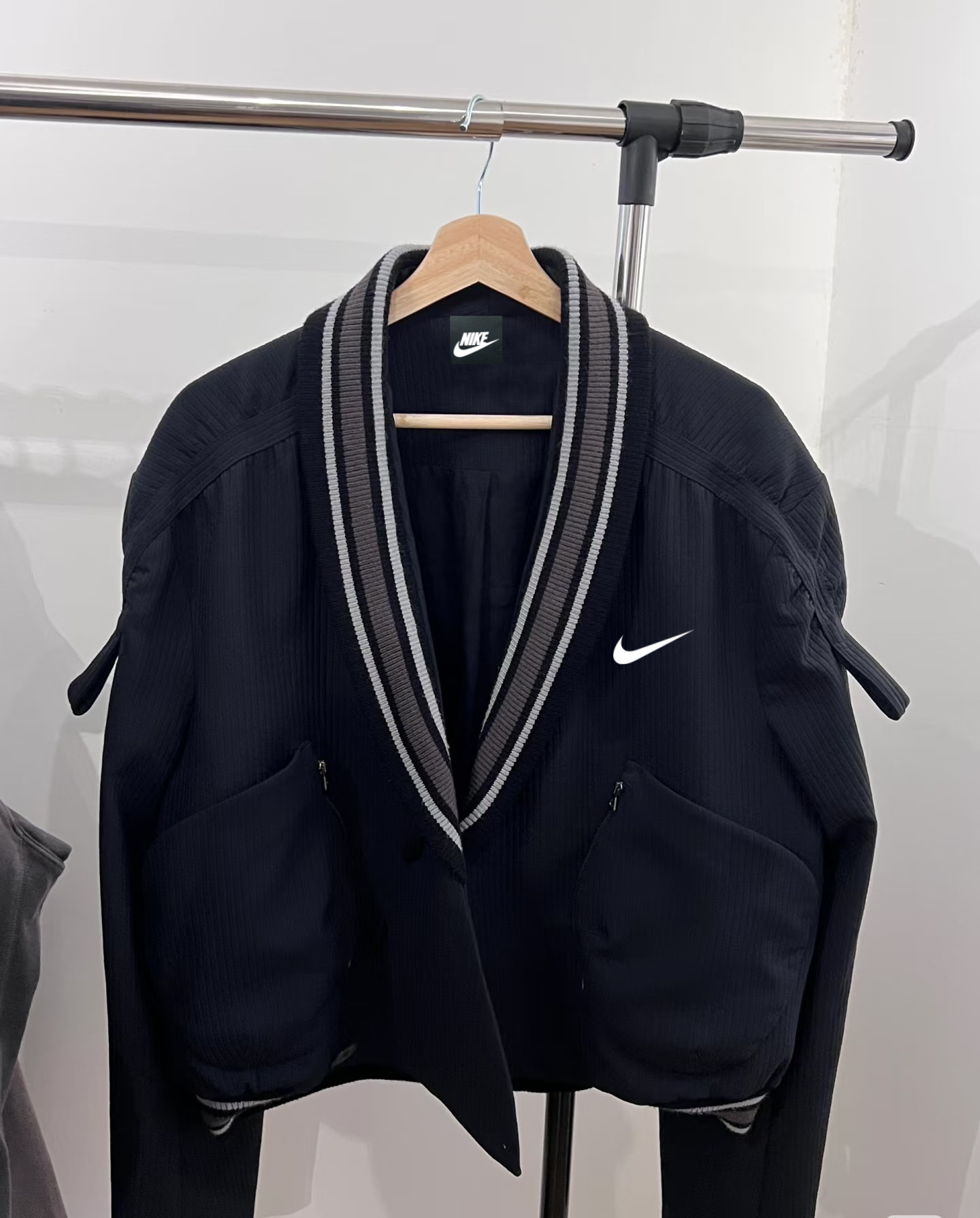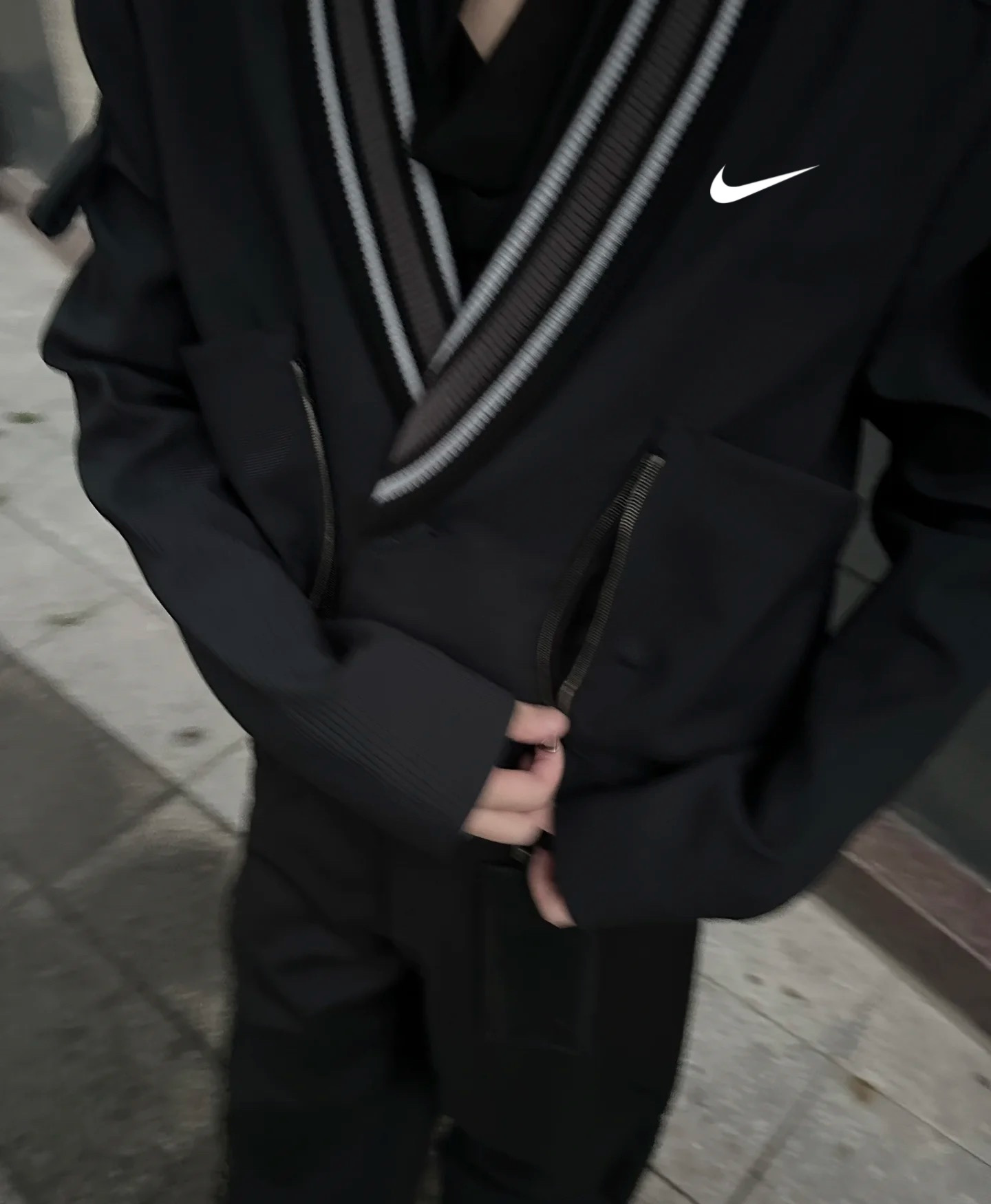 耐克Nike黑色V领夹克纽扣拉链休闲外套衬衫长袖高品质 小众西装外套