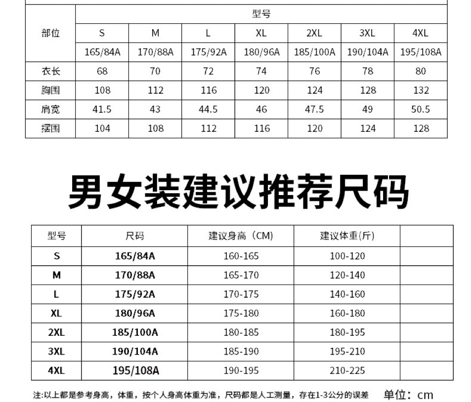 尺码 S 4XL