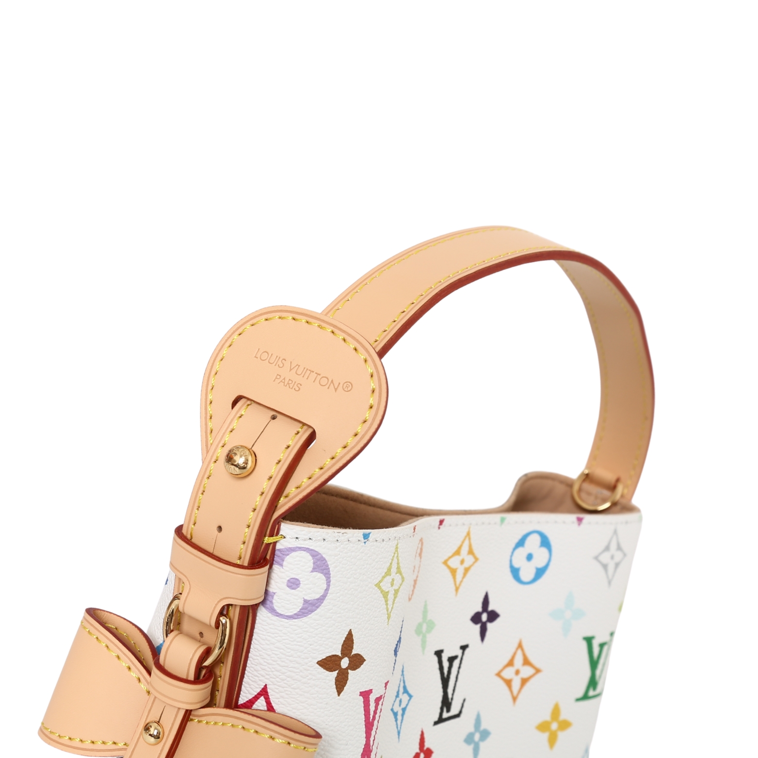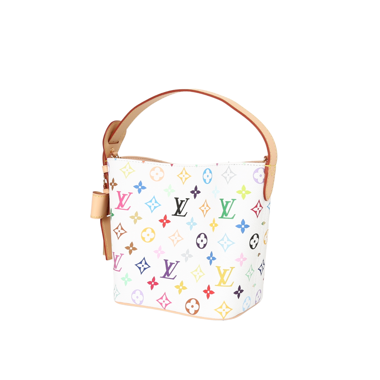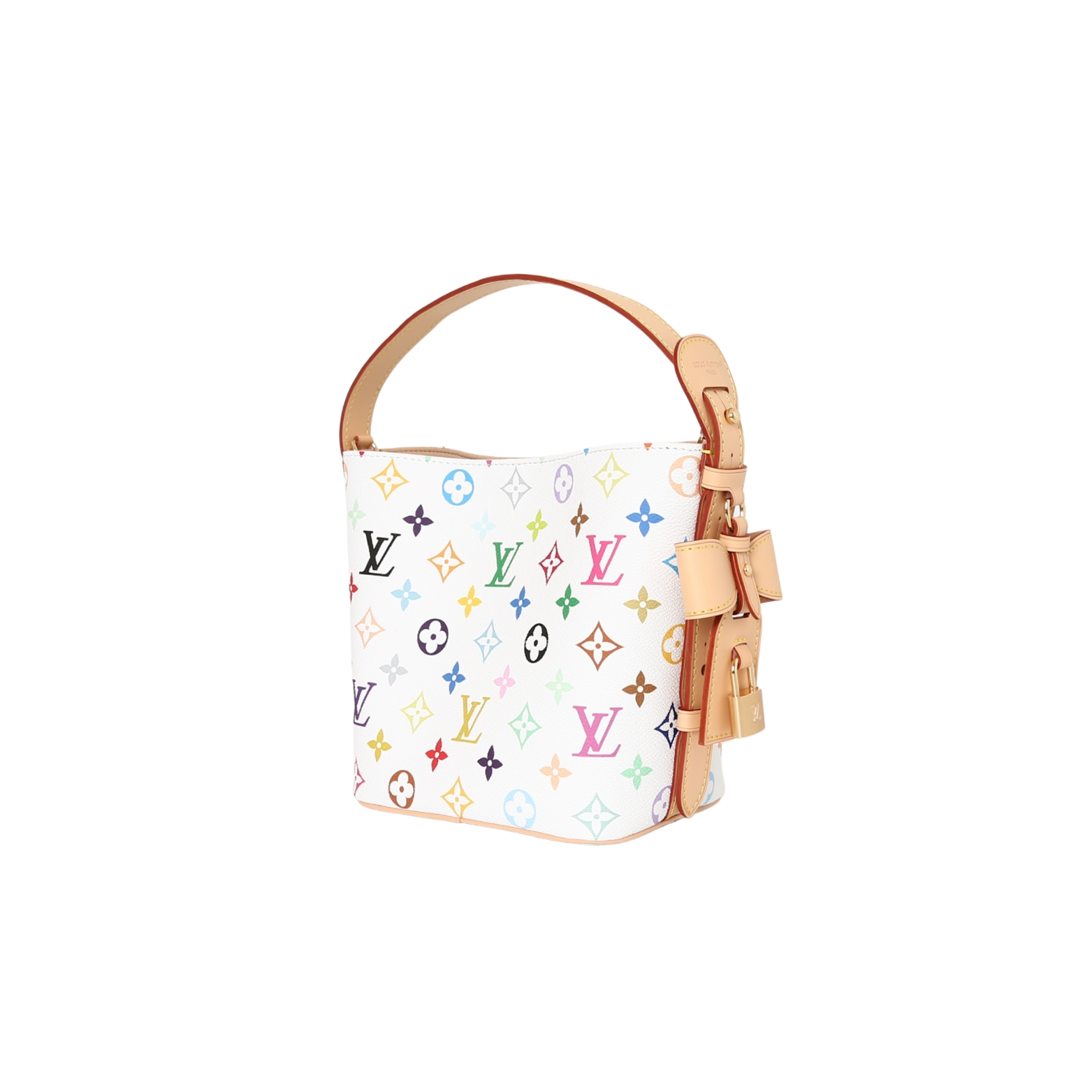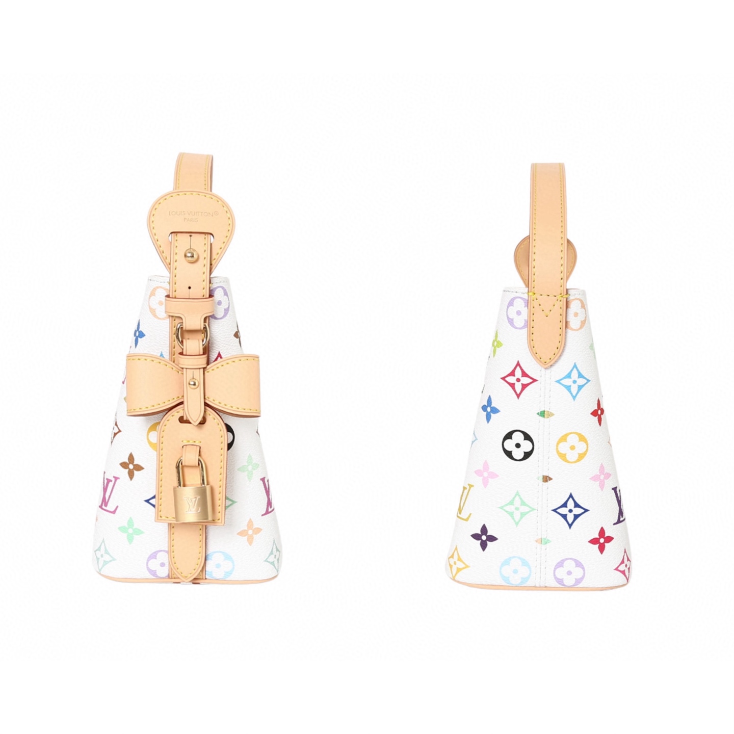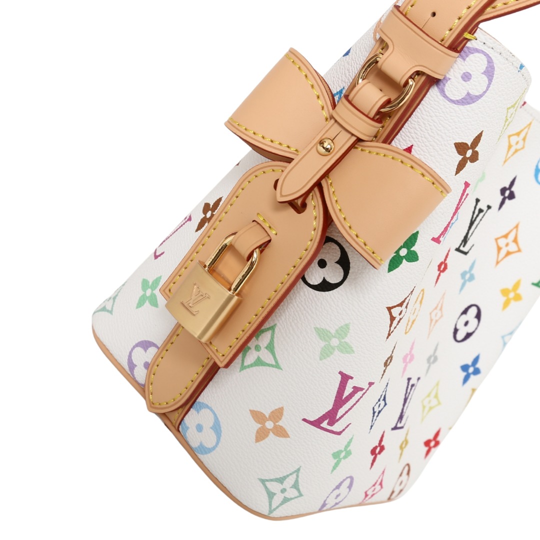 LOUIS VUITTON x Takashi Murakami村上隆 联名款 ALL IN BB 字母徽标 白三彩 涂层帆布 皮革饰边 手提单肩包 女款 白色 货号 M13089 本款 All In BB 手袋以灵动细节传递路易威登 x 村上隆再版系列的玩趣格调 Monogram 涂层帆布呈现艺术家笔下斑斓的彩虹色调 名牌融入蝴蝶结和挂锁装饰 巧用可调节牛皮革手柄和皮革肩带 手提 肩背和斜挎随心而换 18 x 12 x 16 厘米 高 x 宽 x 长度 这款包包真的是复古与艺术的完美结合 白三彩的设计清新又高级 绝对是日常穿搭的点睛之笔 这款包包不仅颜值在线 实用性也超强 小巧的BB尺寸 容量却一点都不小 手机 钥匙 耳机都能轻松装下 而且它有三种背法 手提 肩背 斜挎 怎么搭都好看 村上隆的联名款本身就自带收藏价值 尤其是白三彩系列 简直是时尚圈的 理财产品 如果你也喜欢复古风 这款包包绝对值得入手