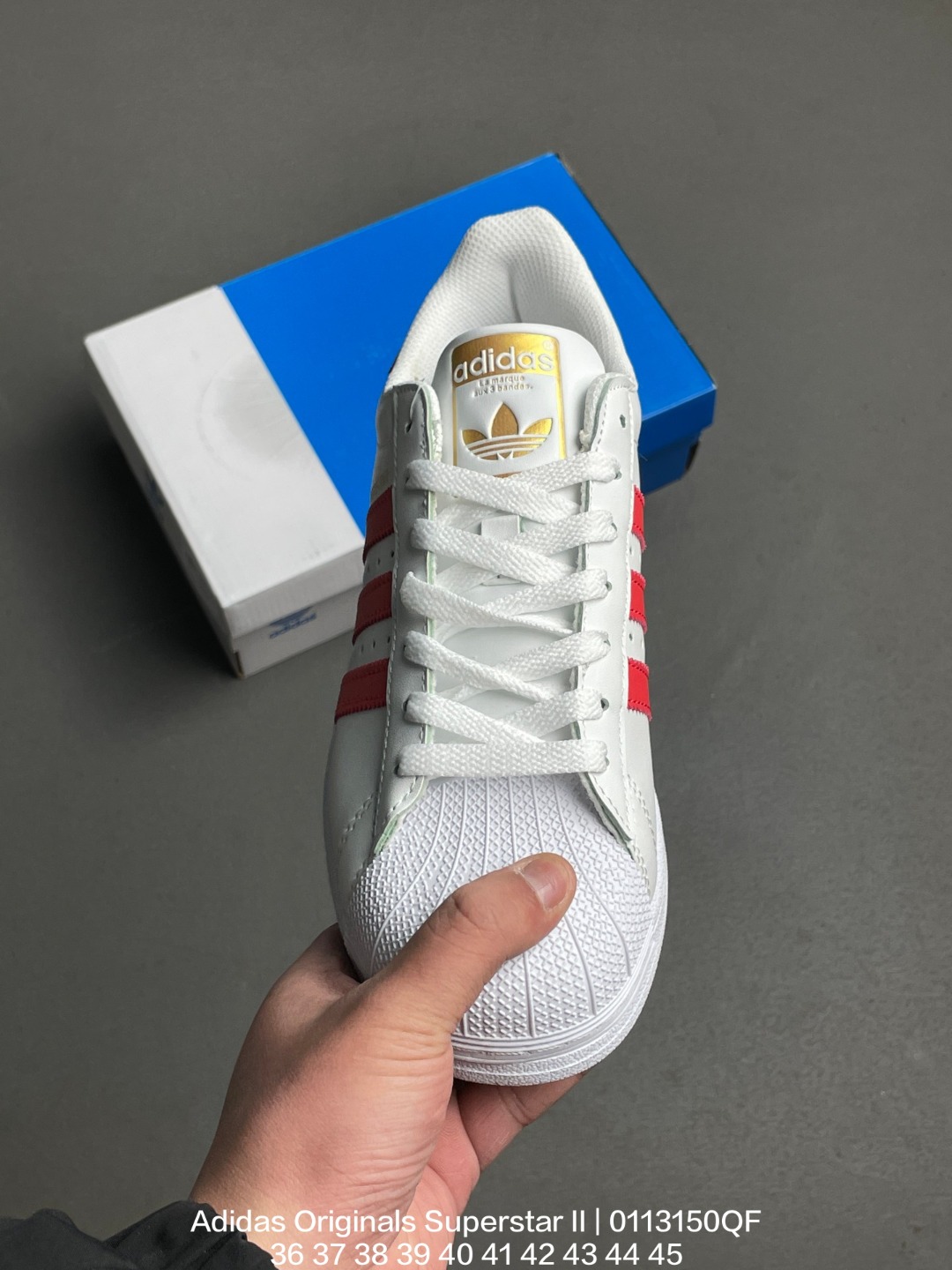 Adidas 阿迪达斯 升级原楦原纸版开发 采用牛剖革鞋面材质 2020改良全包围鞋垫 正确2020版鞋底模具及扇贝头盖片阿迪达斯 三叶草Adidas Originals Superstar II 经典贝壳头系列低帮百搭休闲运动板鞋
