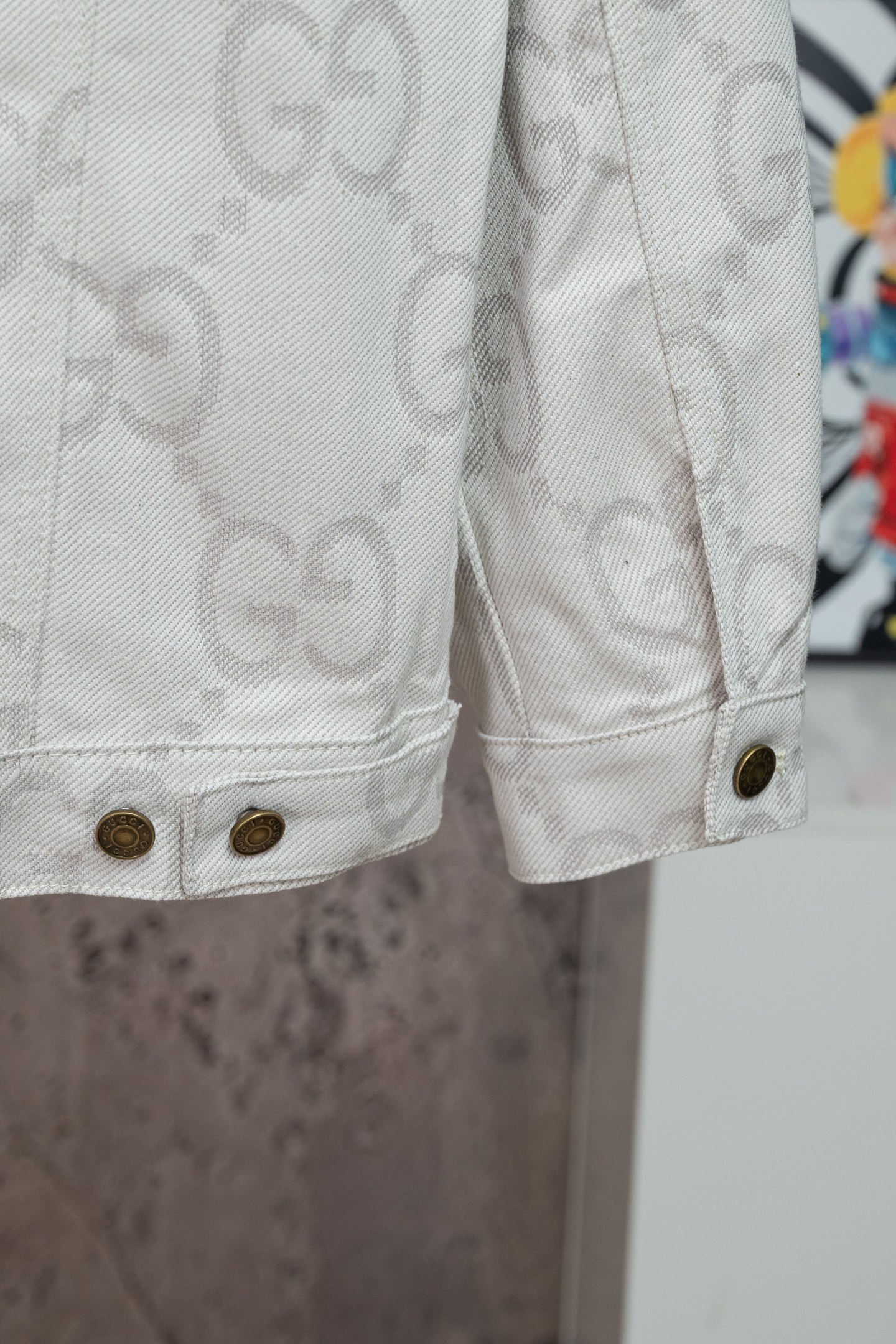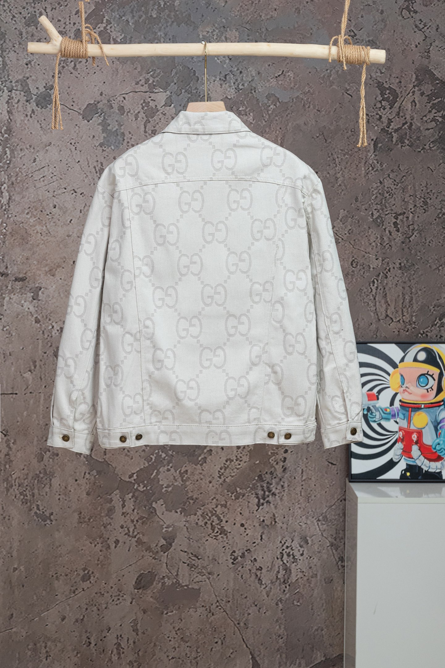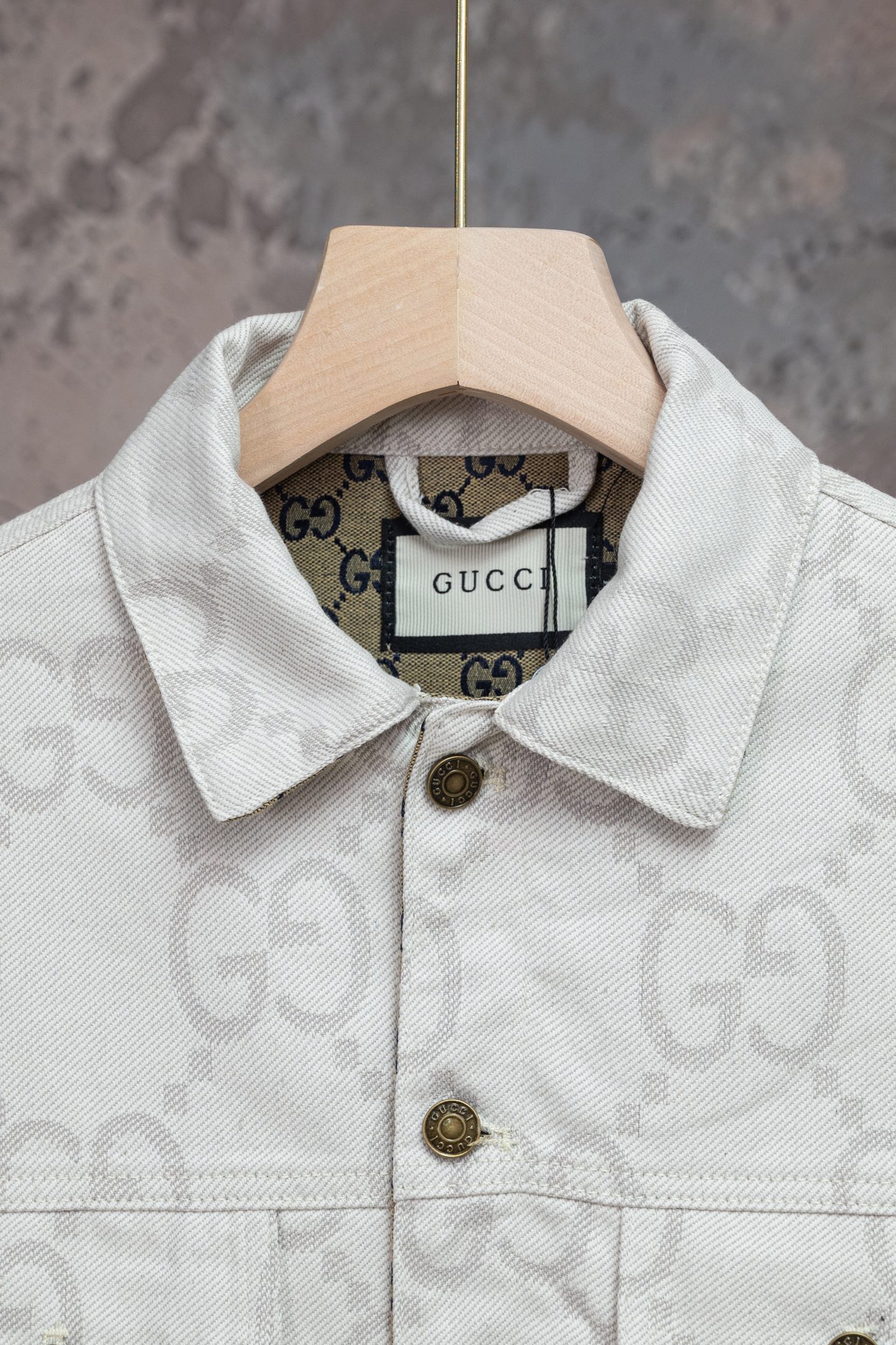GUCCI古驰GG象牙白提花牛仔夹克 主打 满logo提花翻领牛仔外套自留私服高定款 宽松廓形裁剪设计 搭配罗家新款黑粉T恤yyds